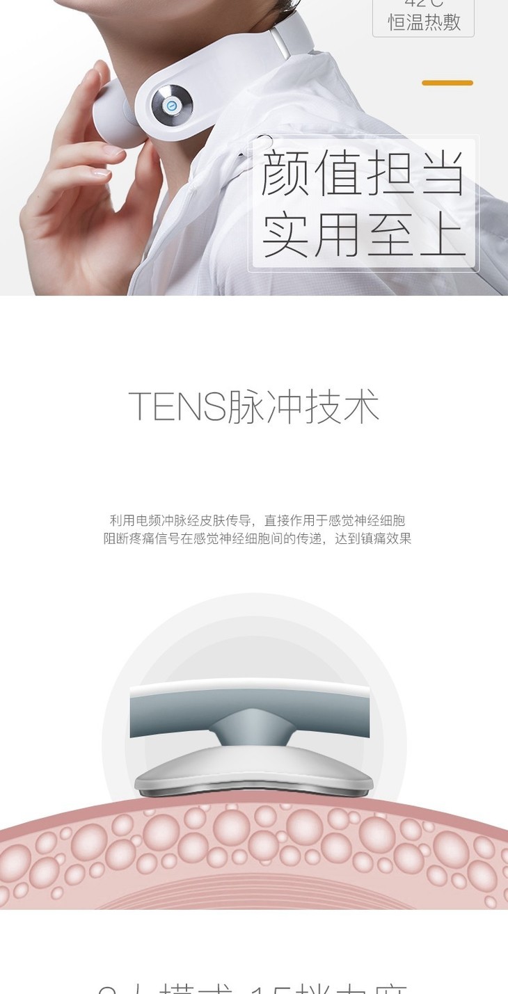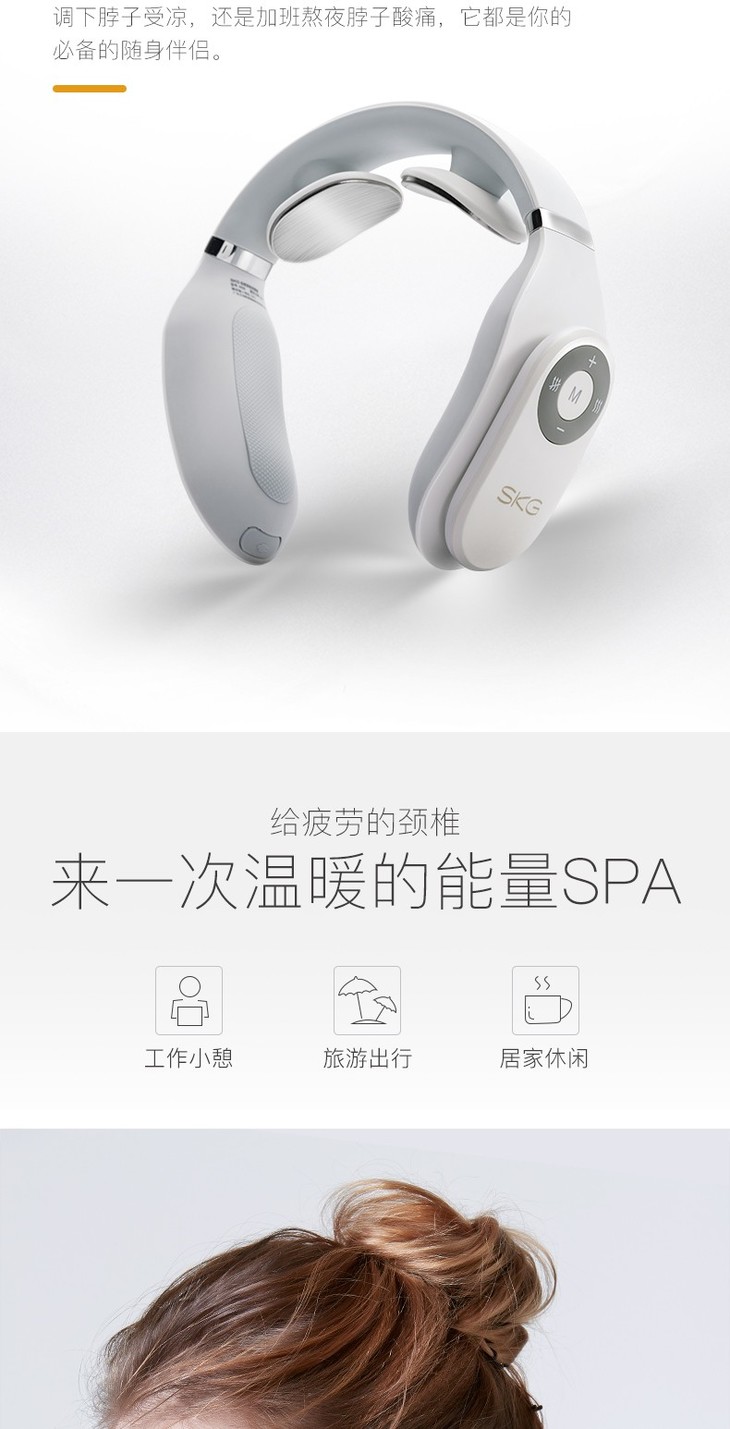 SKG 颈椎按摩器 颈部按摩仪 脖子牵引器 办公室护颈仪 热敷 富贵包 U型枕 电极脉冲 充电便携 4098