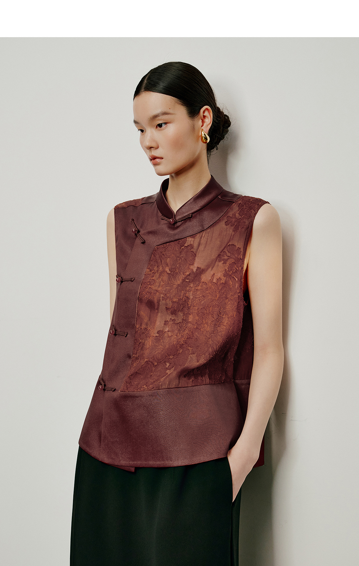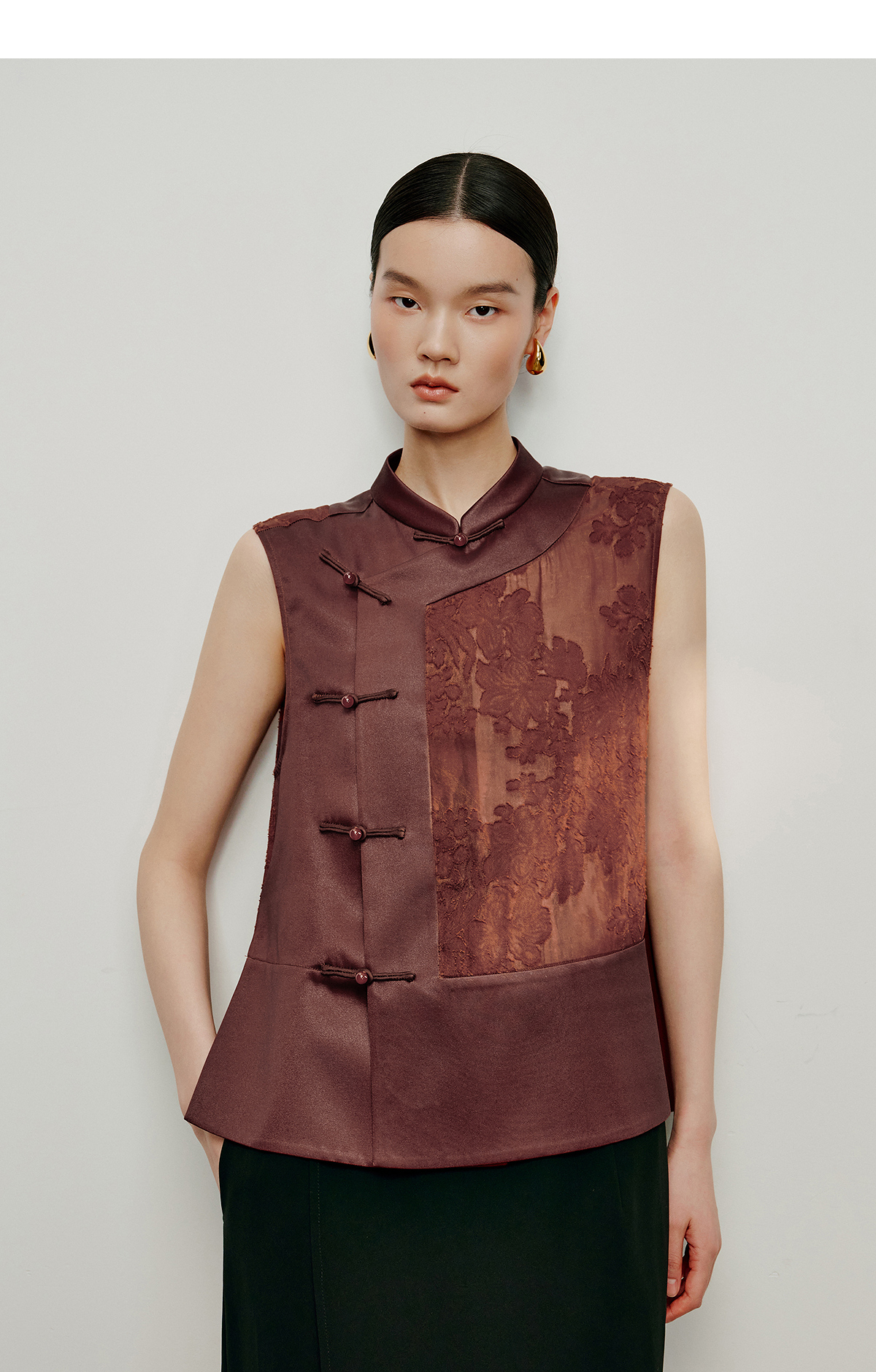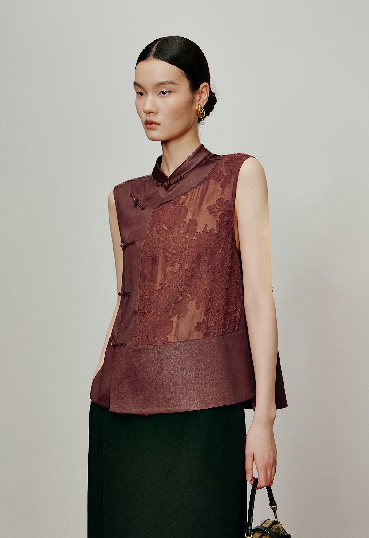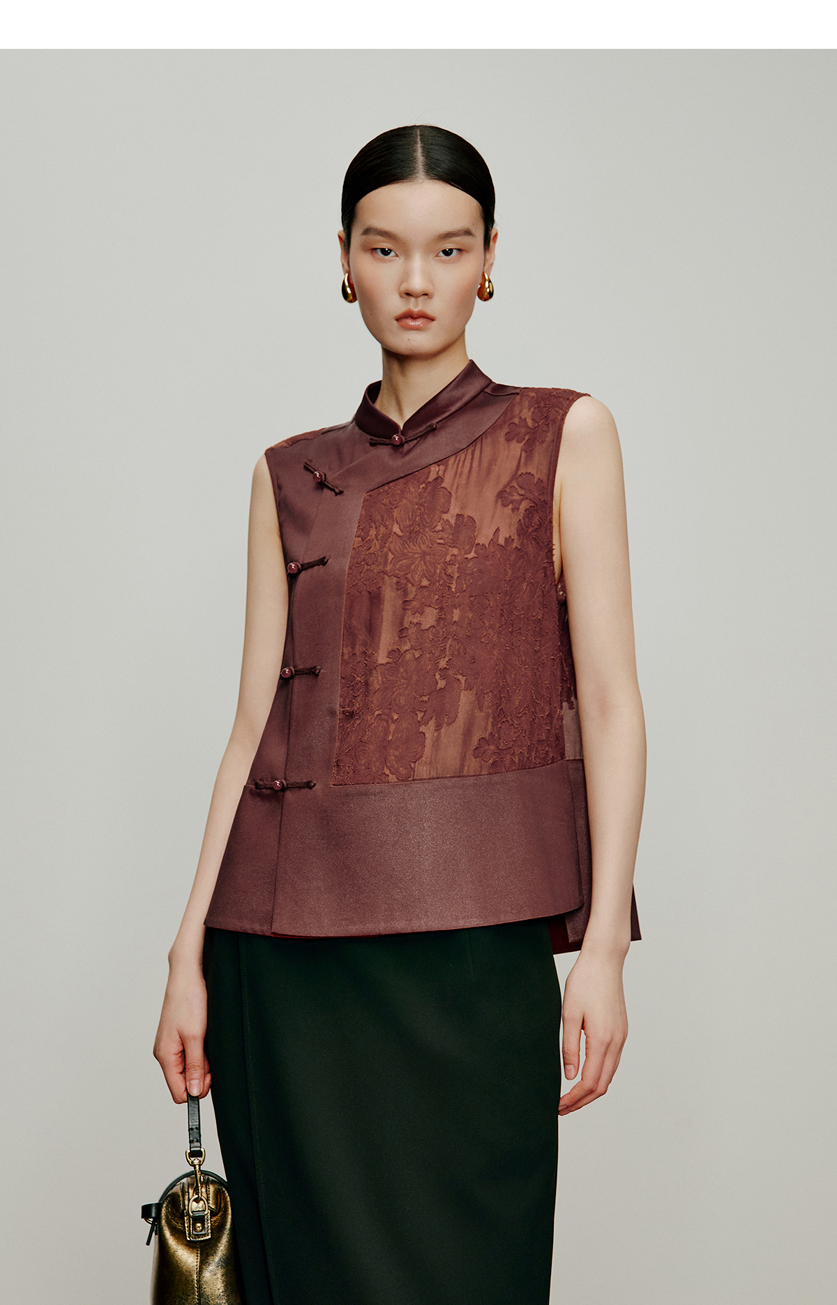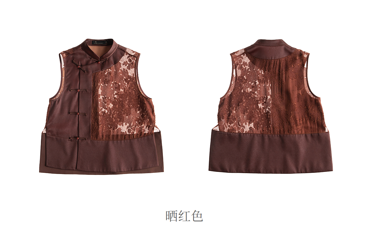 【林栖设计小店】落日霞光|素平缎红云纱2026夏新款提花马面裙马甲1962065