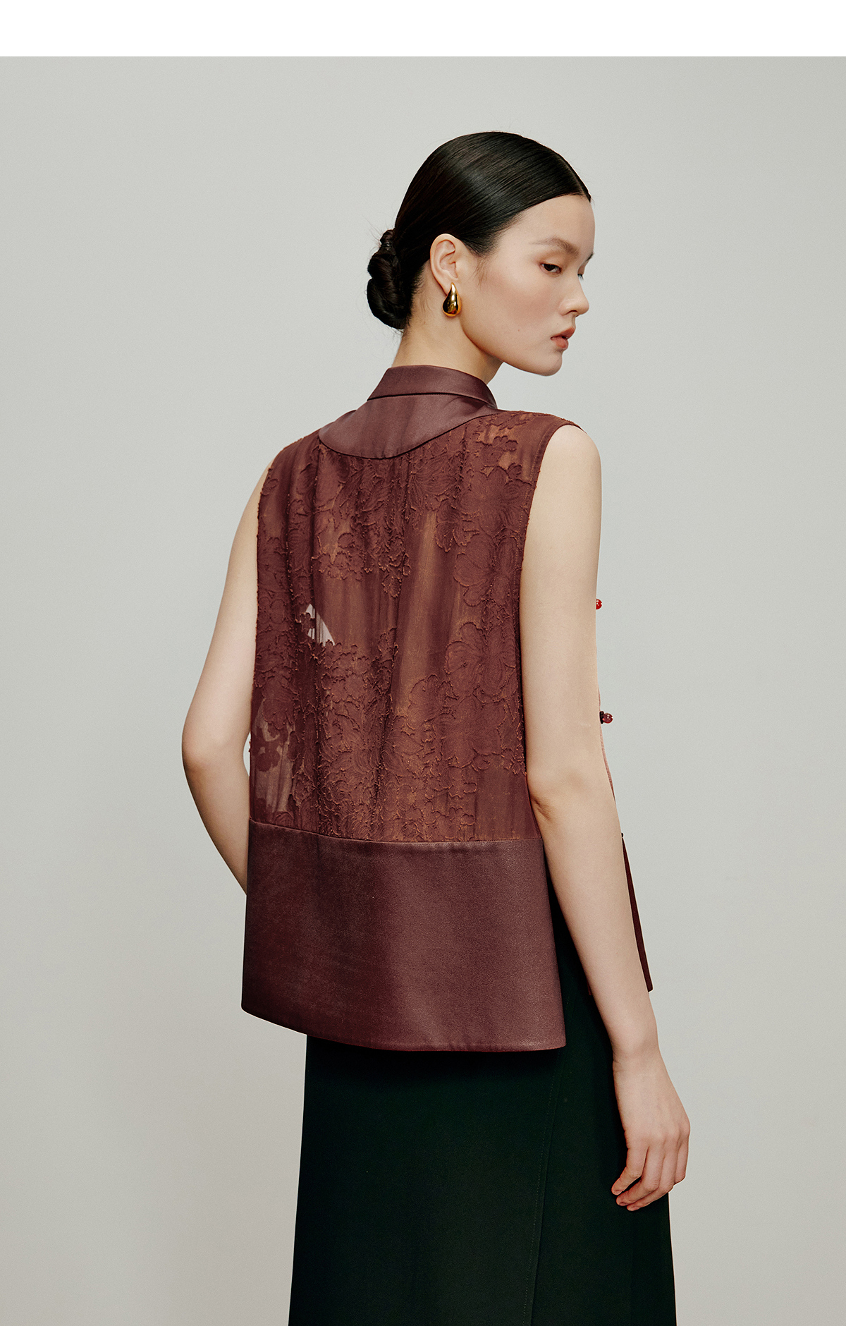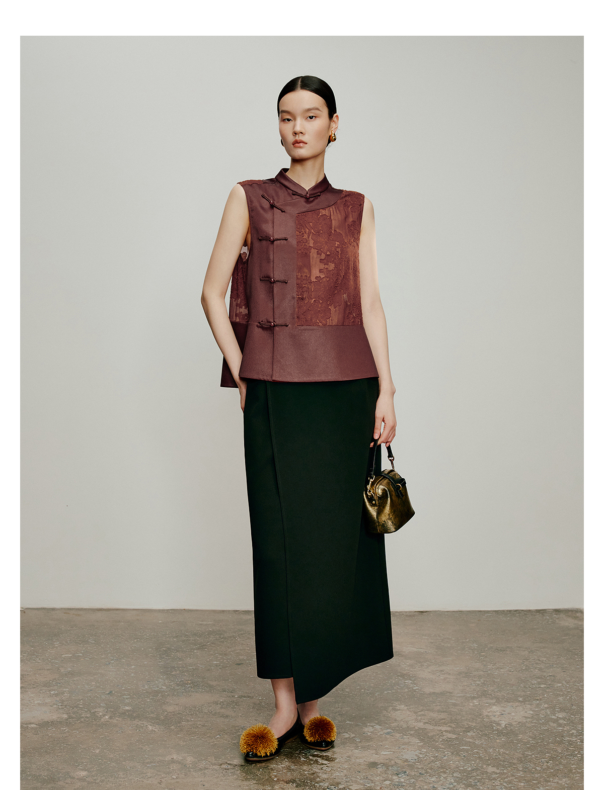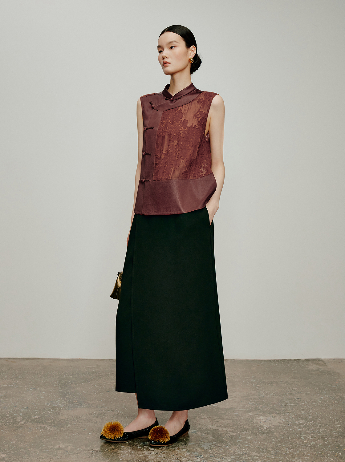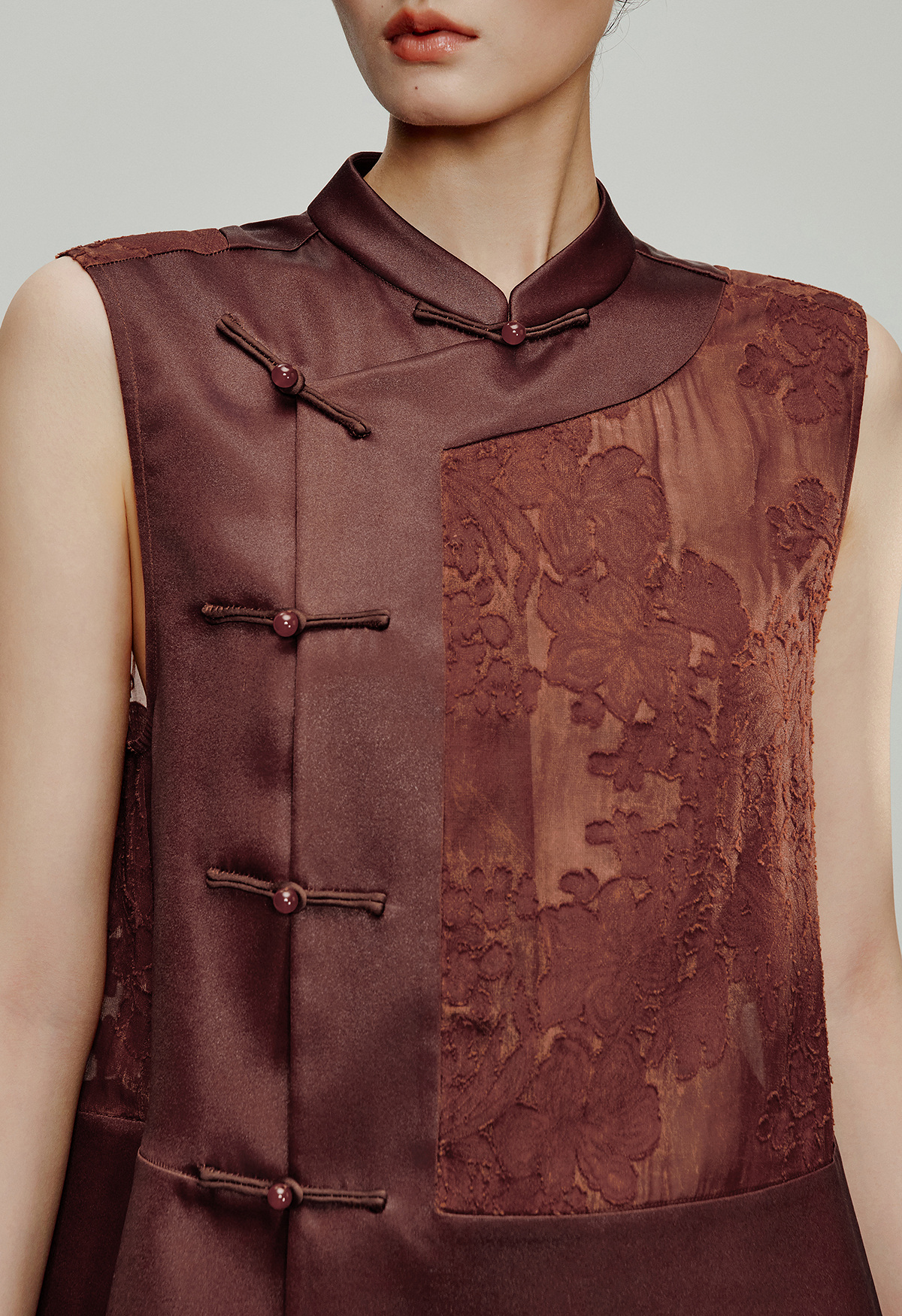 【林栖设计小店】落日霞光|素平缎红云纱2026夏新款提花马面裙马甲1962065