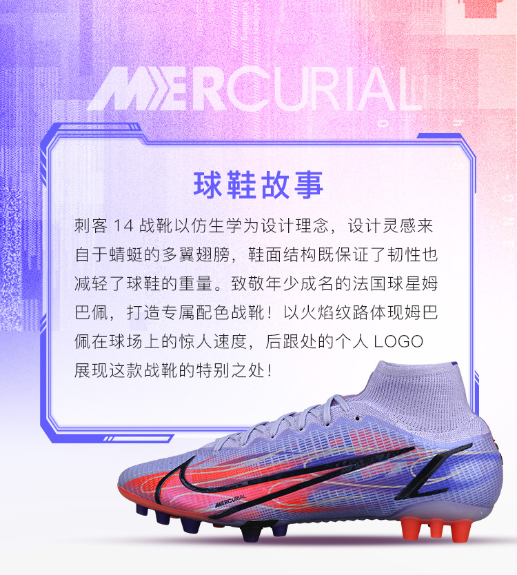 NIKE/耐克 SUPERFLY 8 ELITE KM AG短钉姆巴佩配色运动足球鞋男DJ3973506