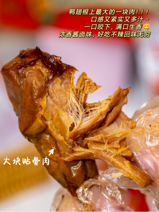 ⭕【手撕鸭翅根】 酱卤味的鸭翅根 大块贴骨肉,整块撕下,大口嚼肉超满足 鲜韧的肌肉纤维吸满卤香酱汁 又紧实、又多汁 肉食爱好者的幸福感在这一刻达到巅峰