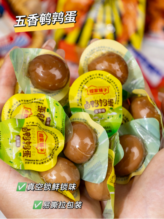 ⭕【卤鹌鹑蛋】 五香卤蛋,小小尺寸一口一个 真空包装易撕拉封口,吃起来方便不脏手 卤汁由外及里深层渗透 外层蛋白QQ弹弹,内馅蛋黄咸香起沙 一口爆香,吃到停不下来