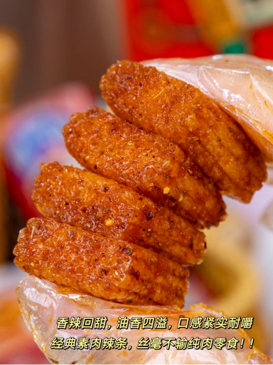 ⭕【大刀肉】 辣条界的伪肉食,比肉还要好吃~ 一口一个小尺寸,口感紧实有嚼劲 嚼一嚼,压榨出大刀肉的每一丝香气 香辣回甜,是童年记忆里的辣条味~