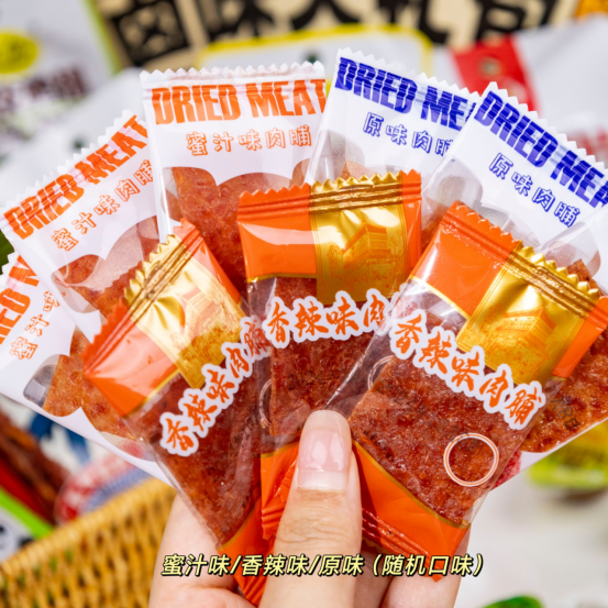 ⭕【猪肉脯】 原味/香辣味/蜜汁味,随机口味 独立小包一口一片 肉香混合烘烤过后的暖香 吃起来微微甜,一点也不腻口 紧实耐嚼,越嚼越香