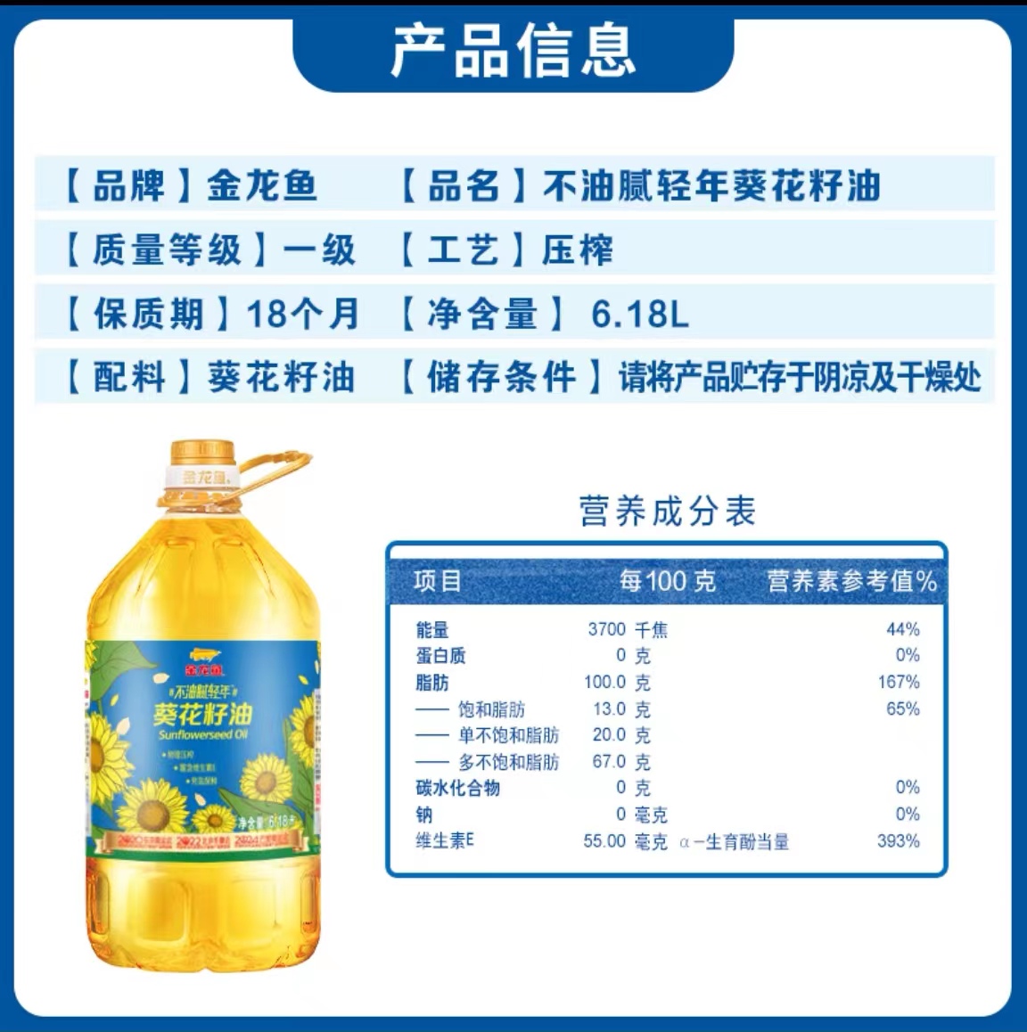 12听赠:油 金龙鱼葵花籽油6.18L