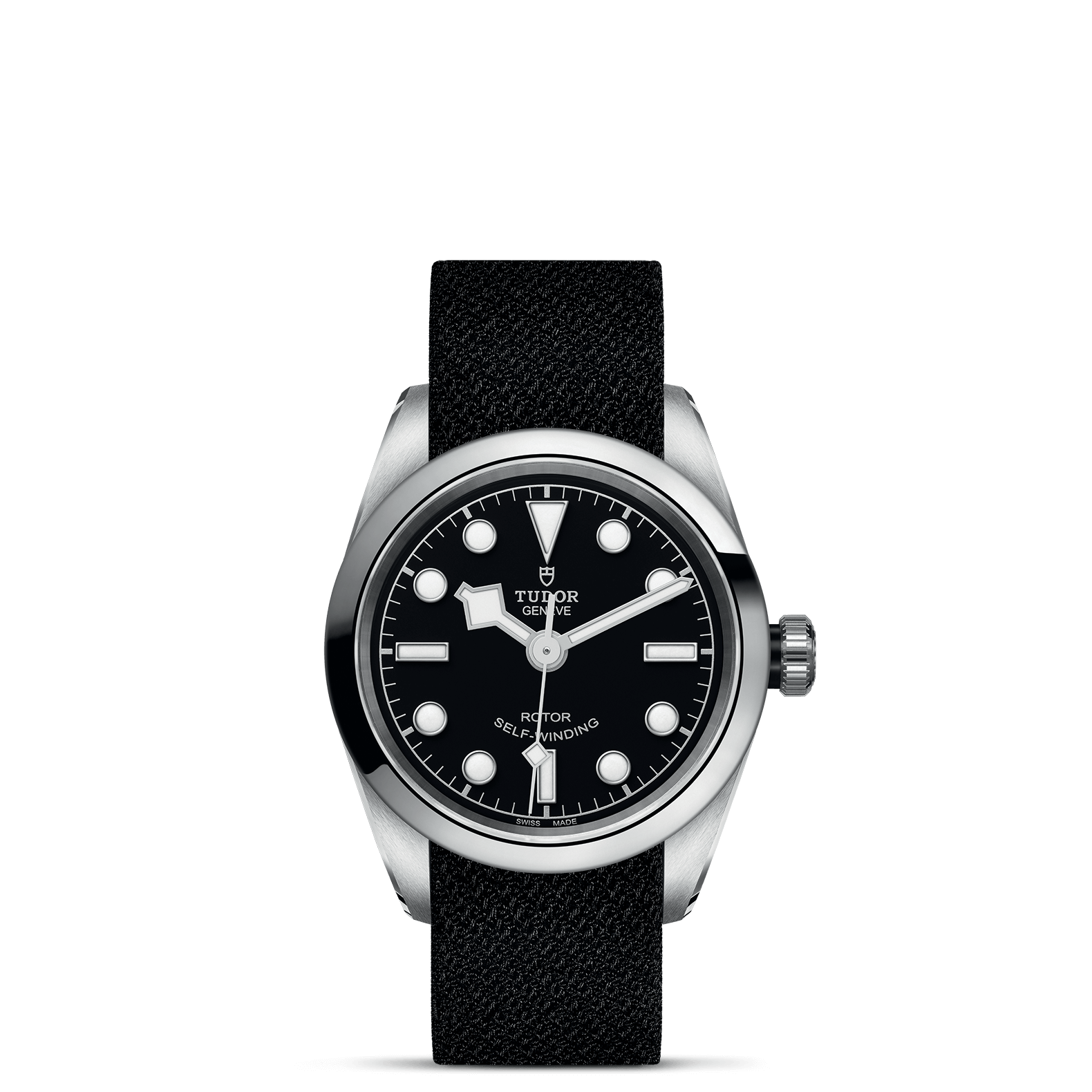 不锈钢旋入式上链表冠,饰以浮雕帝舵表玫瑰标志,配黑色阳极氧化铝上链表冠轴