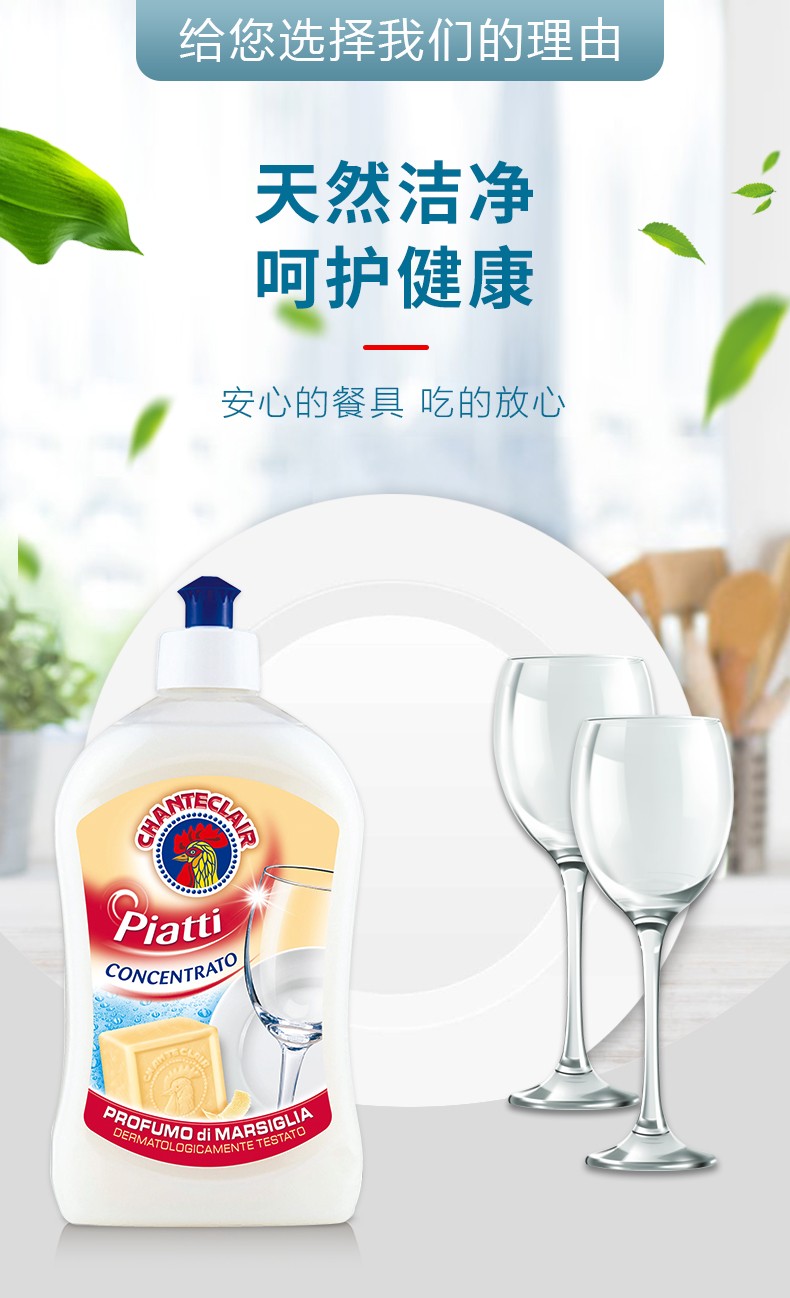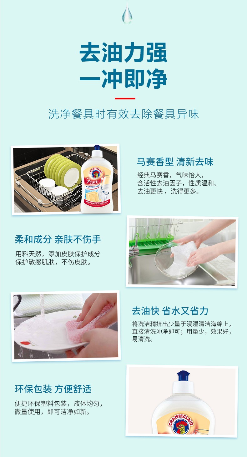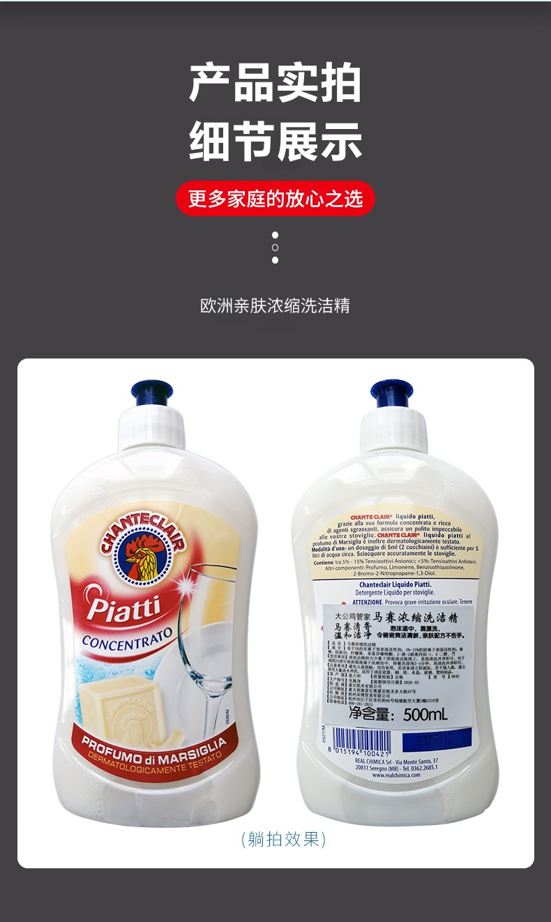 CHANTECLAIR大公鸡管家浓缩洗洁精 意大利原装进口洗涤剂 家用厨房餐具 滋润不伤手去油祛味 马赛香浓缩洗洁精500ml*3瓶