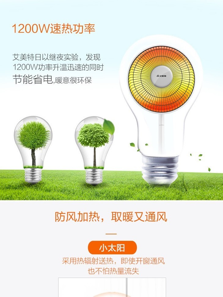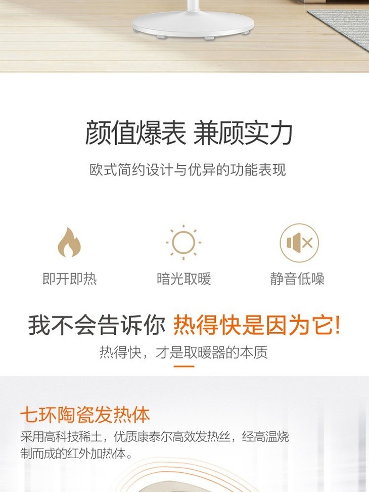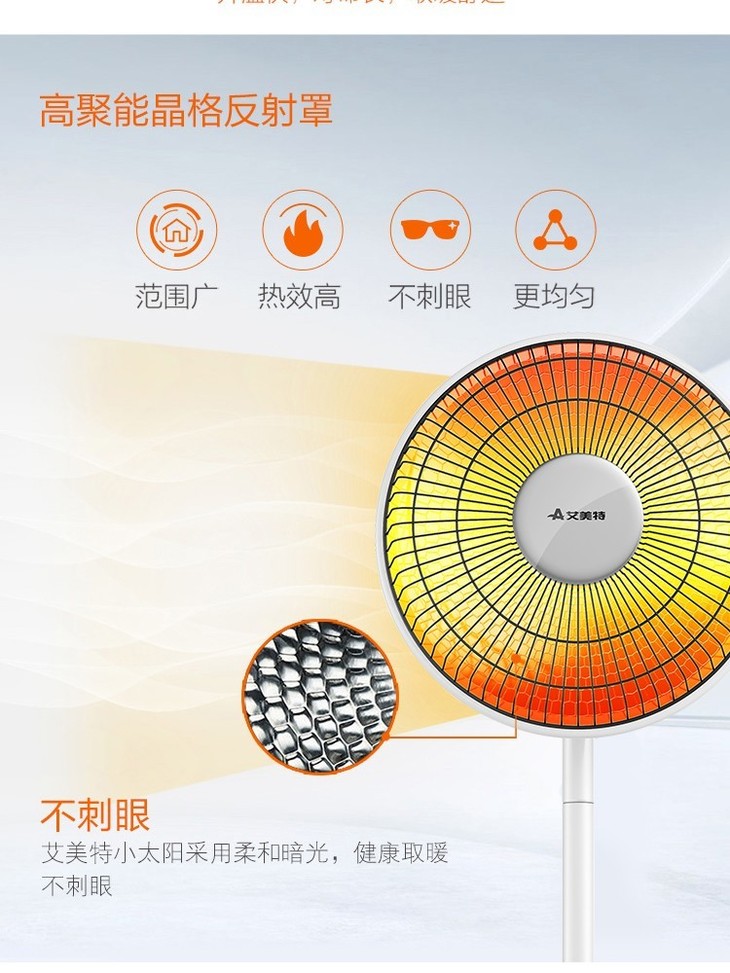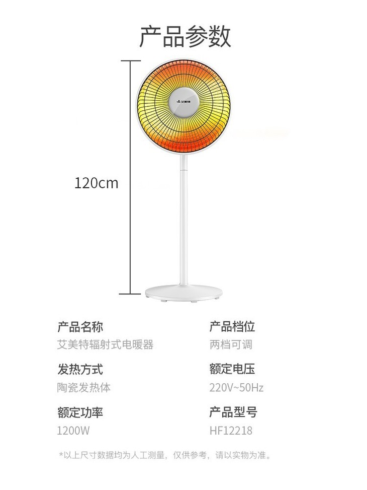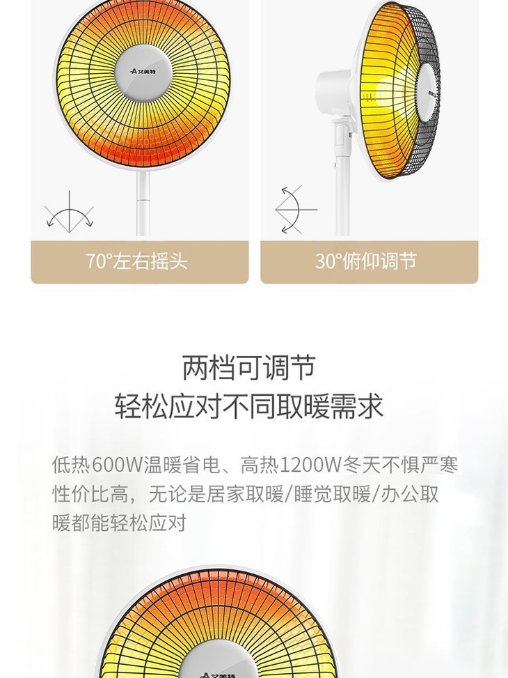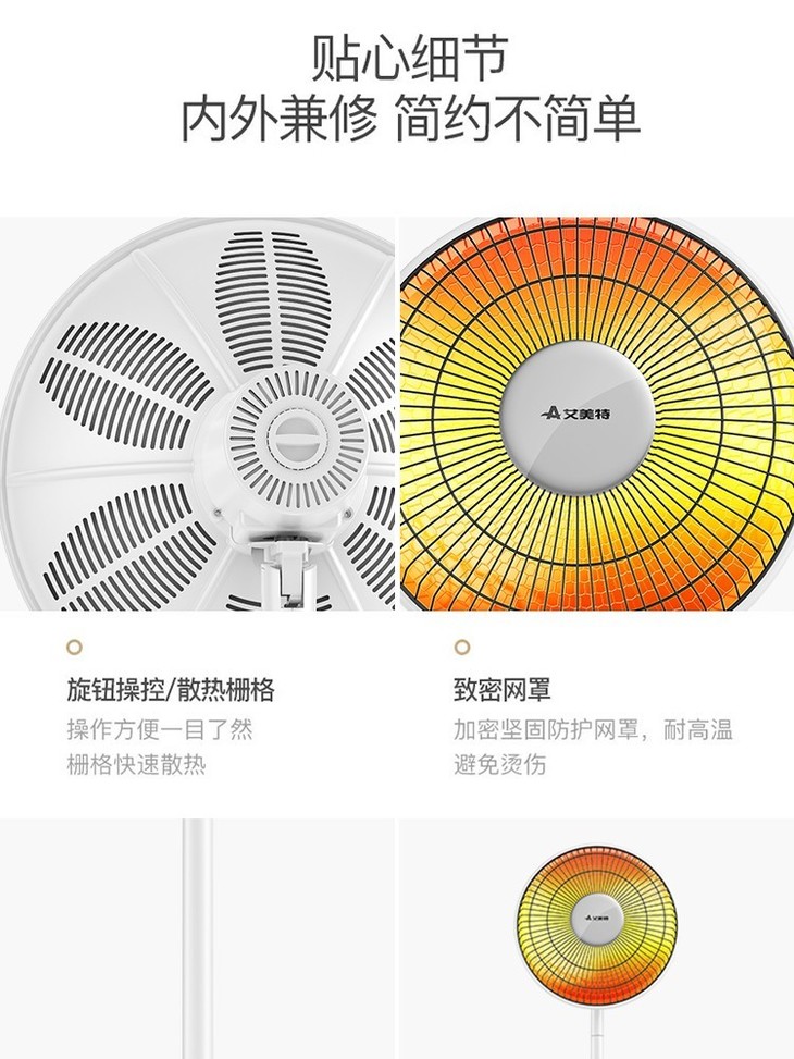 艾美特(508955 )(AIRMATE)取暖器暗光小太阳办公室静音摇头远红外电暖扇静音烤火炉台地两用 HF12218