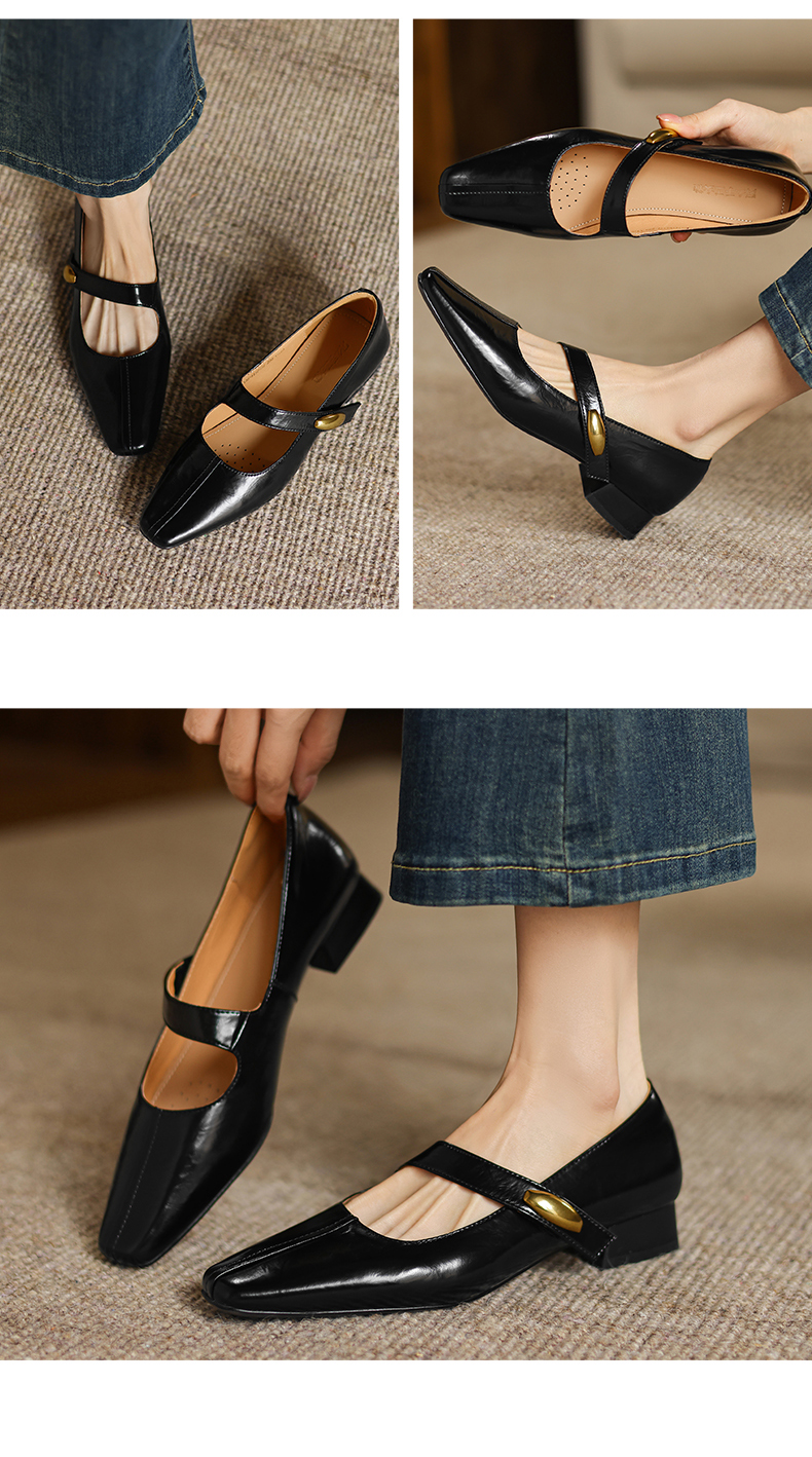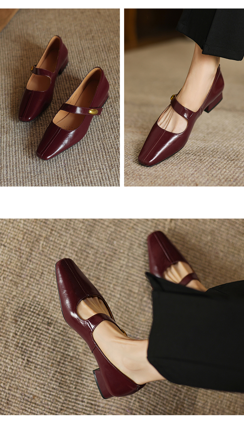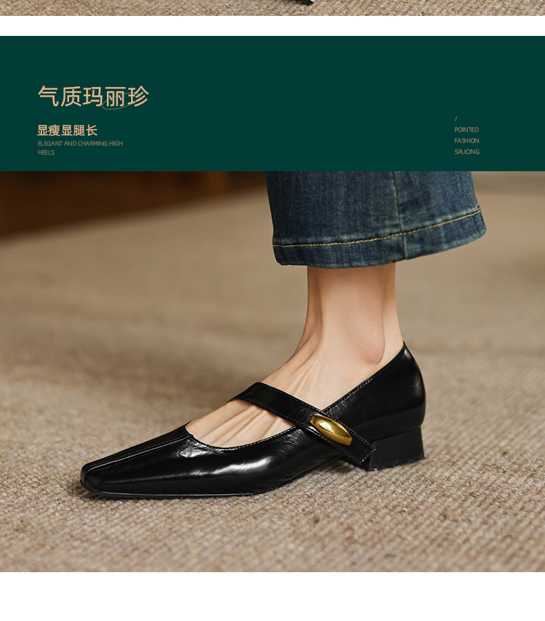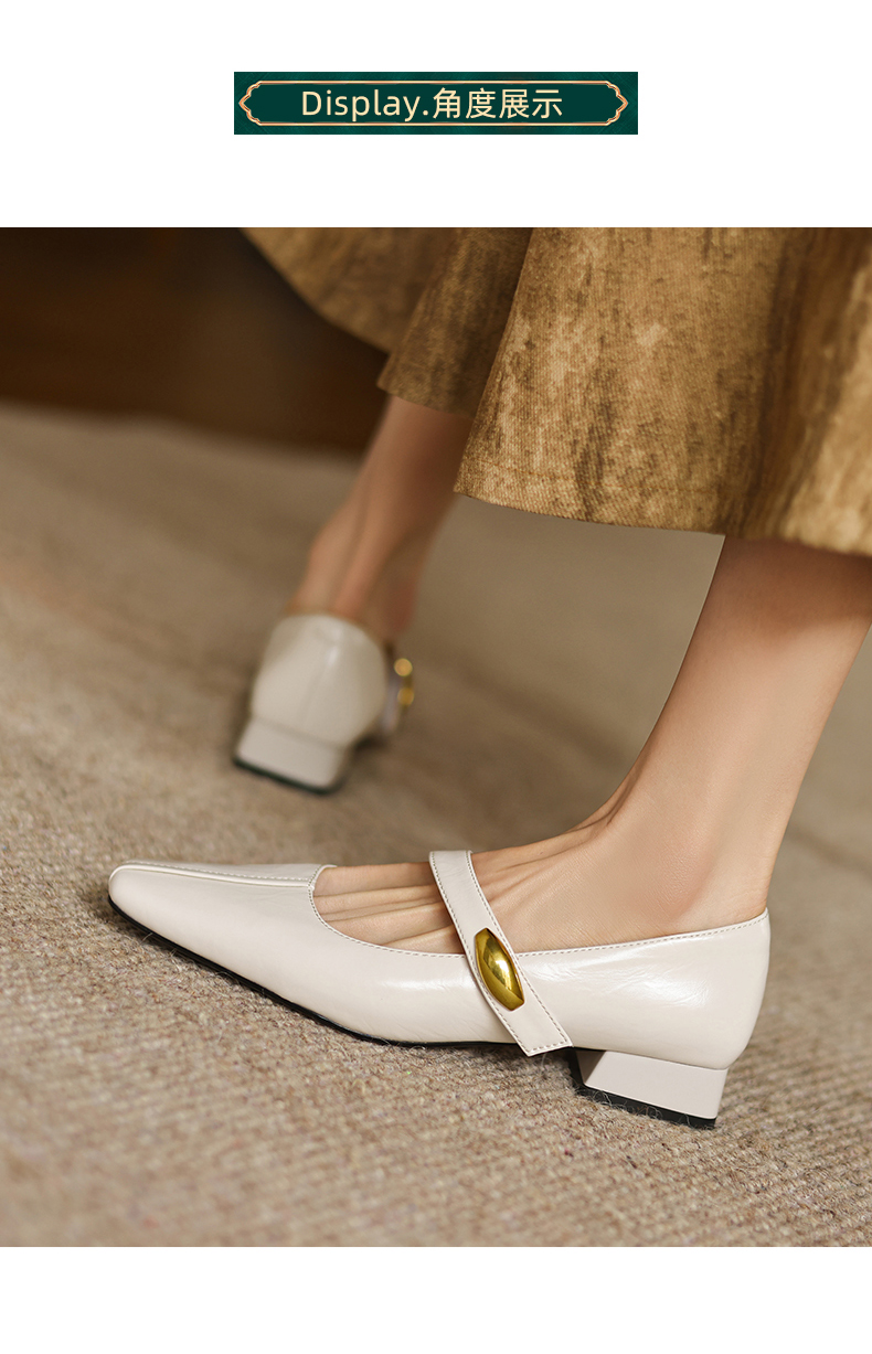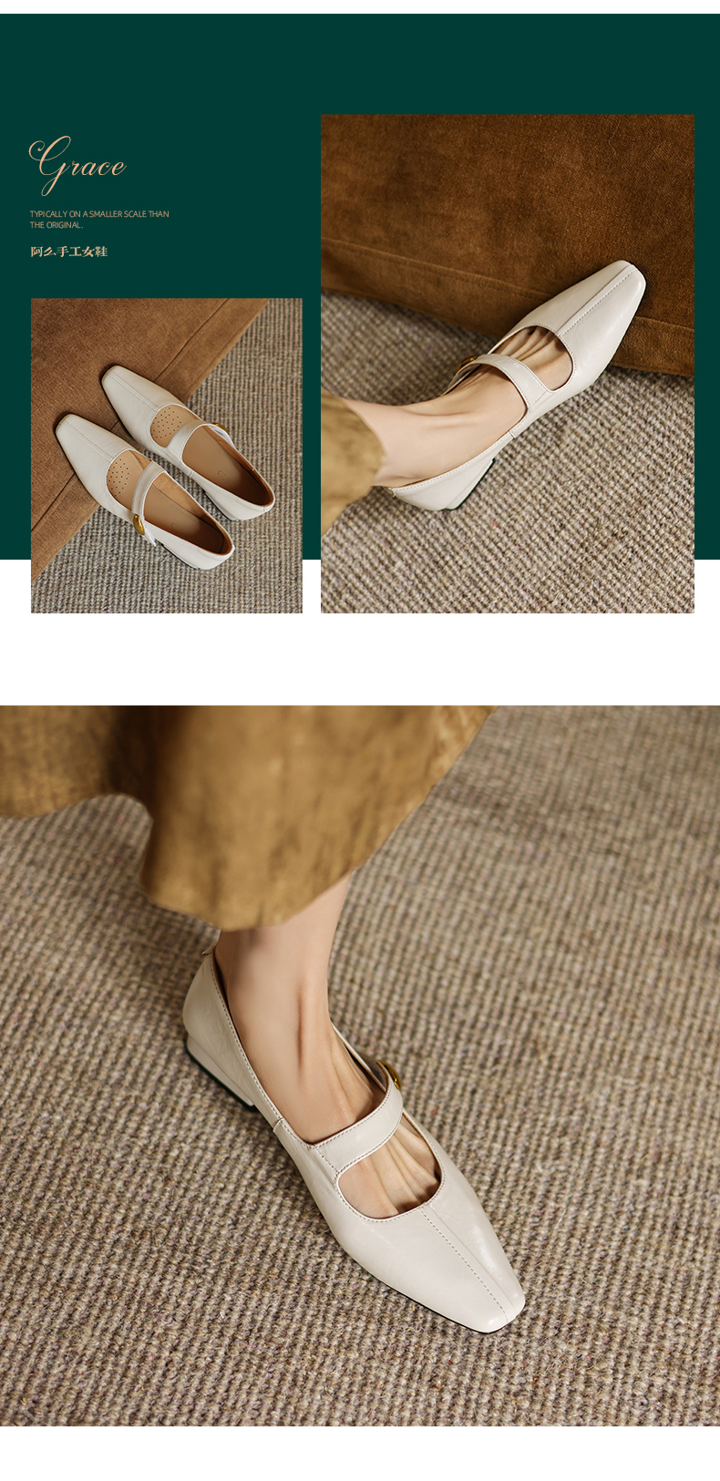 阿么手工女鞋羊皮玛丽珍小皮鞋粗跟2.5CM一字带法式复古浅口单鞋 商品图4