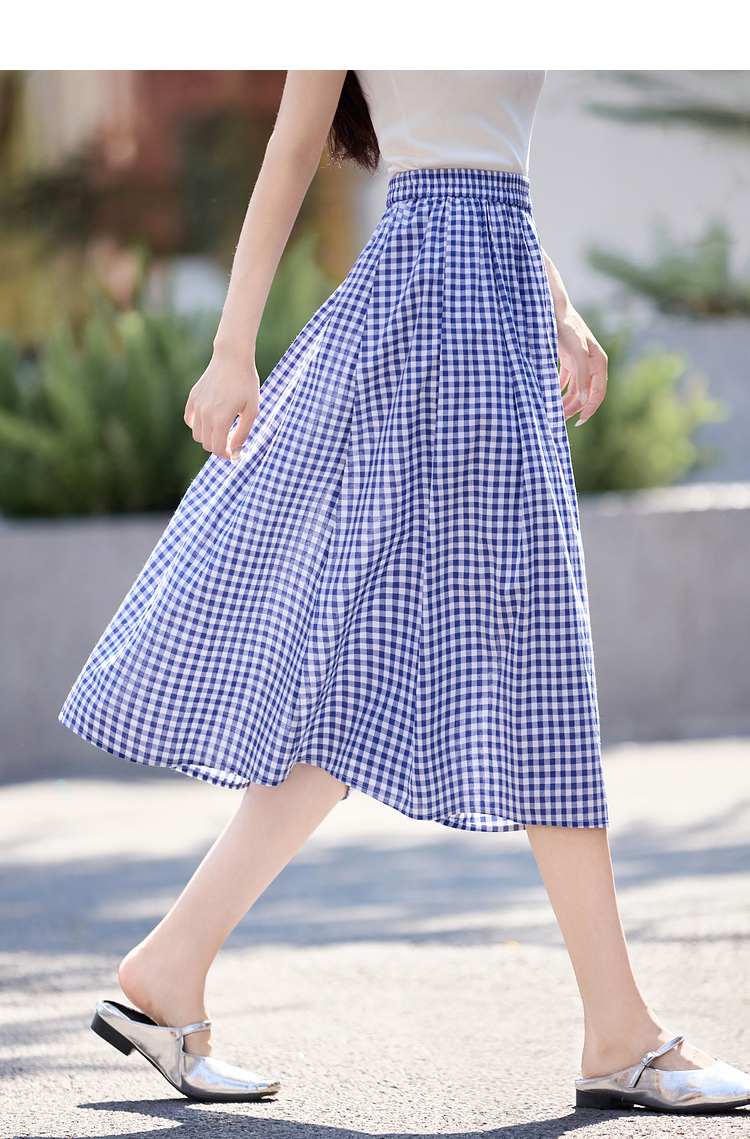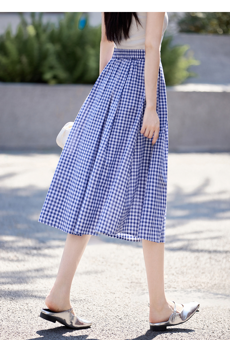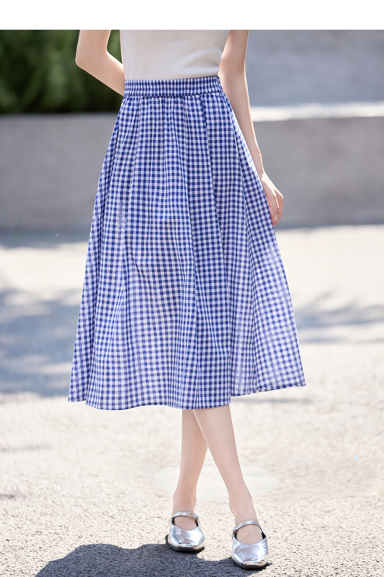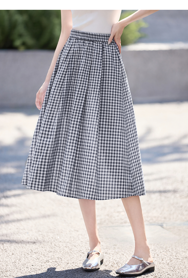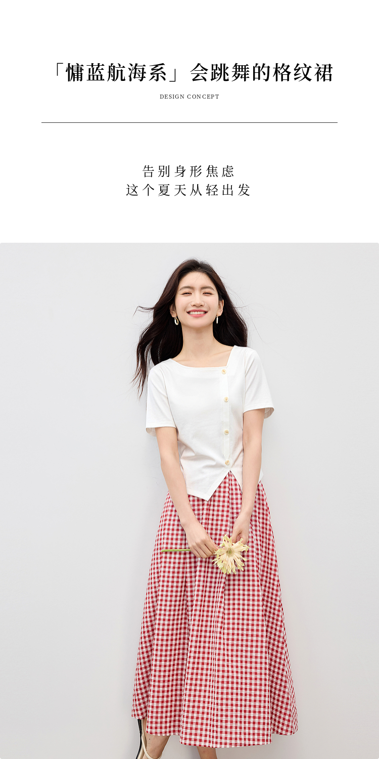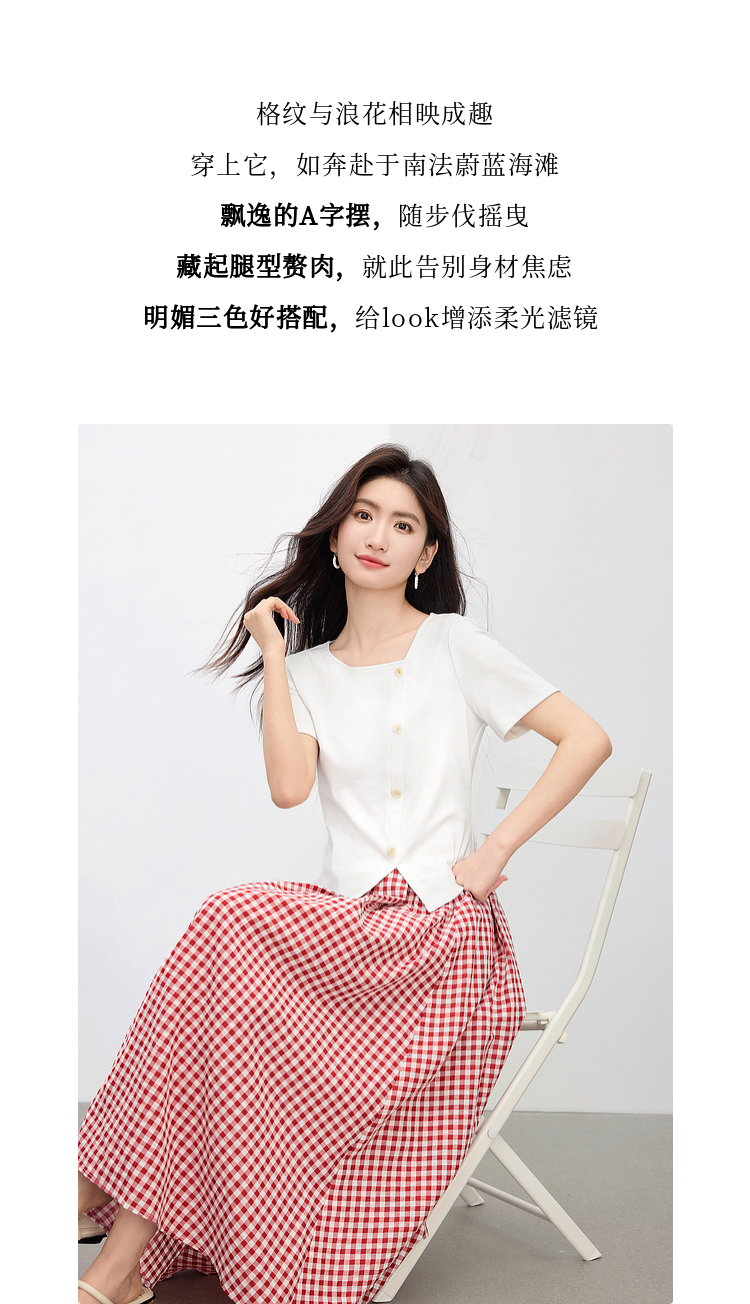 【专属特价】熙世界复古格纹半身裙女2025夏季新款设计感知识分子风中长款伞裙