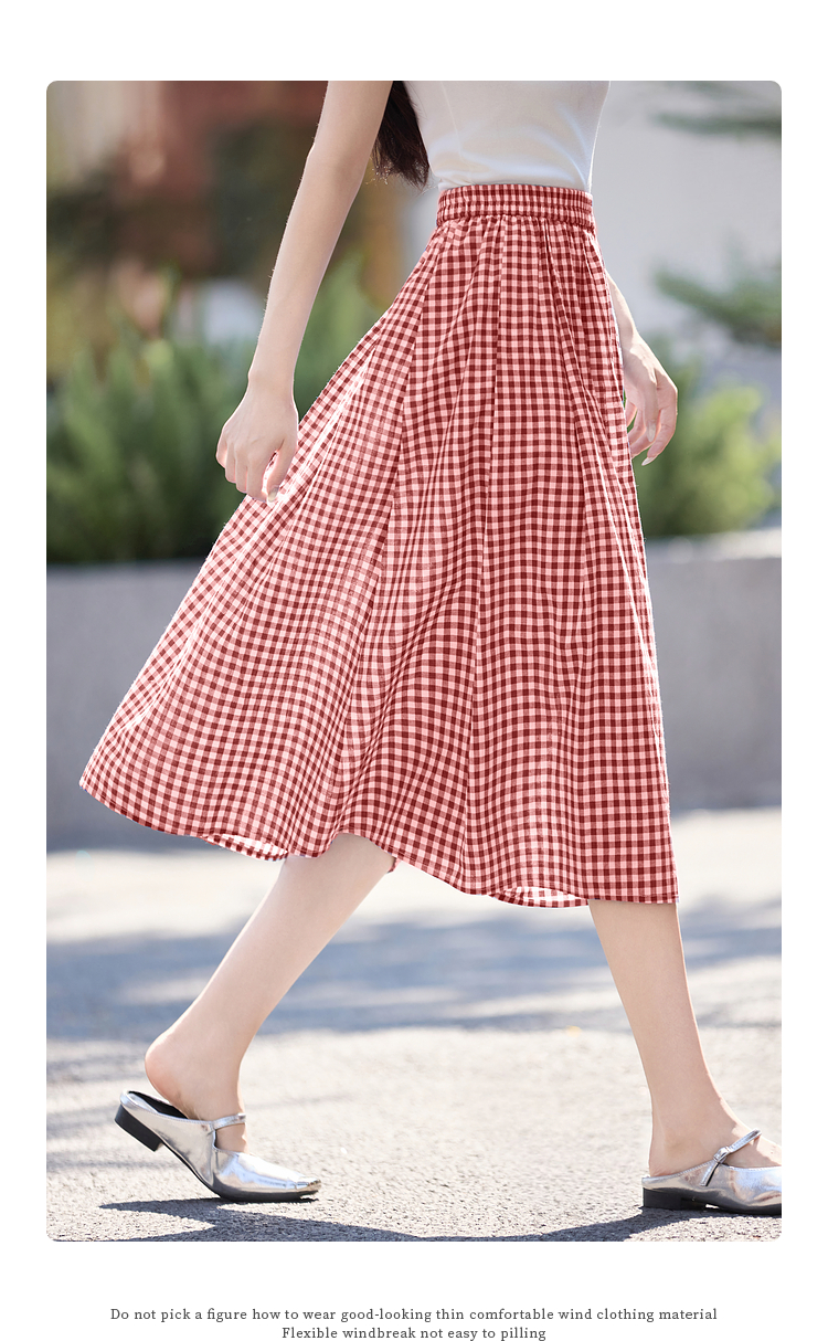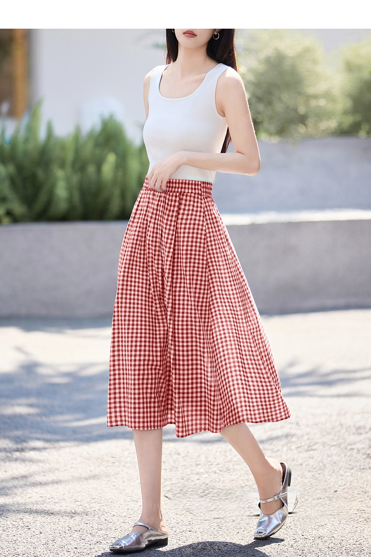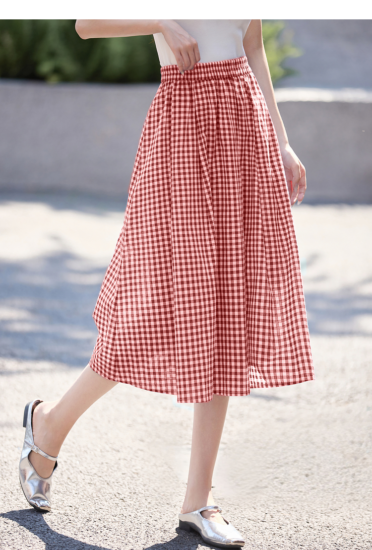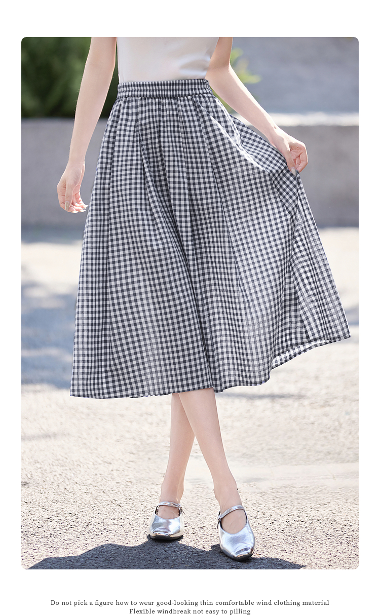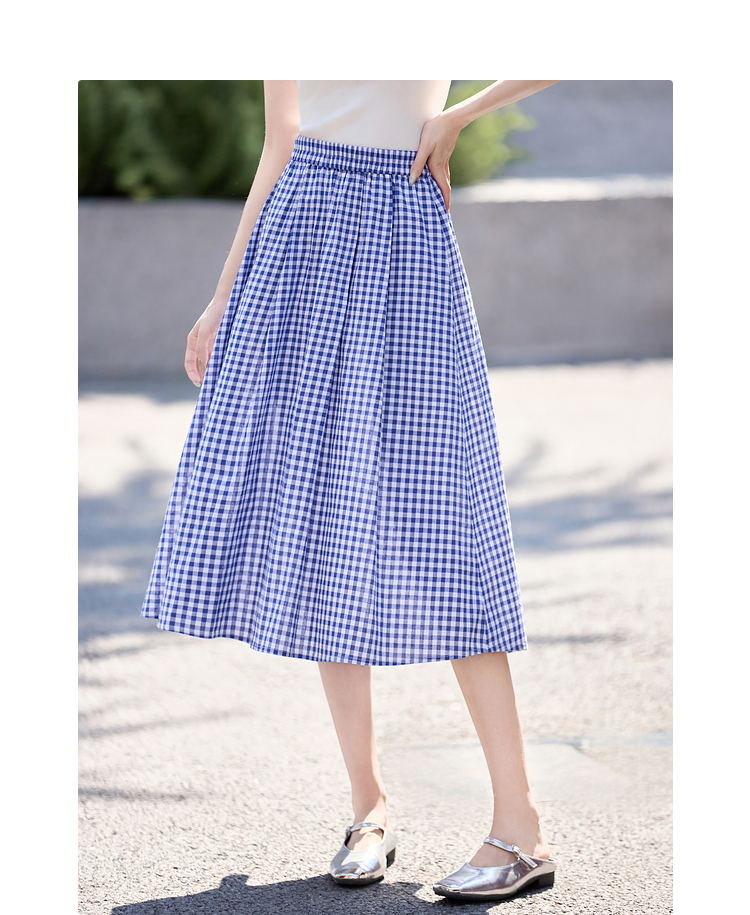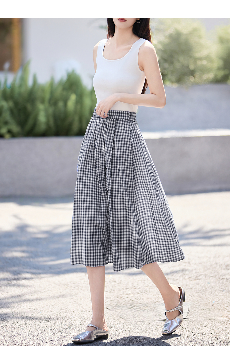 【专属特价】熙世界复古格纹半身裙女2025夏季新款设计感知识分子风中长款伞裙