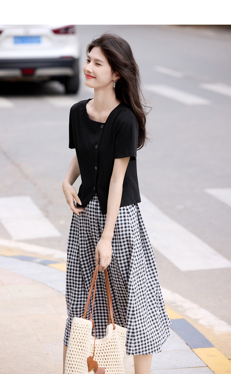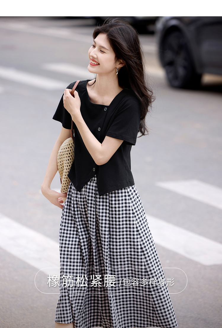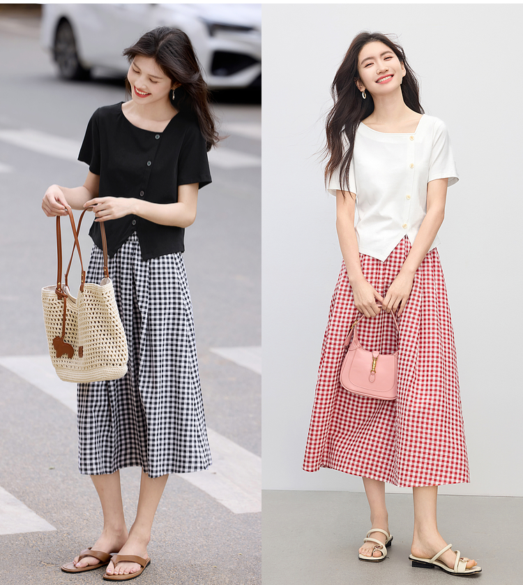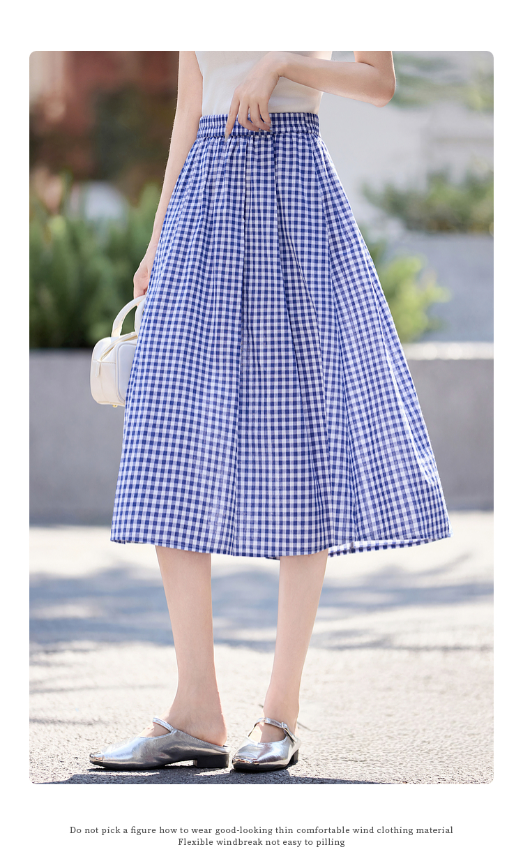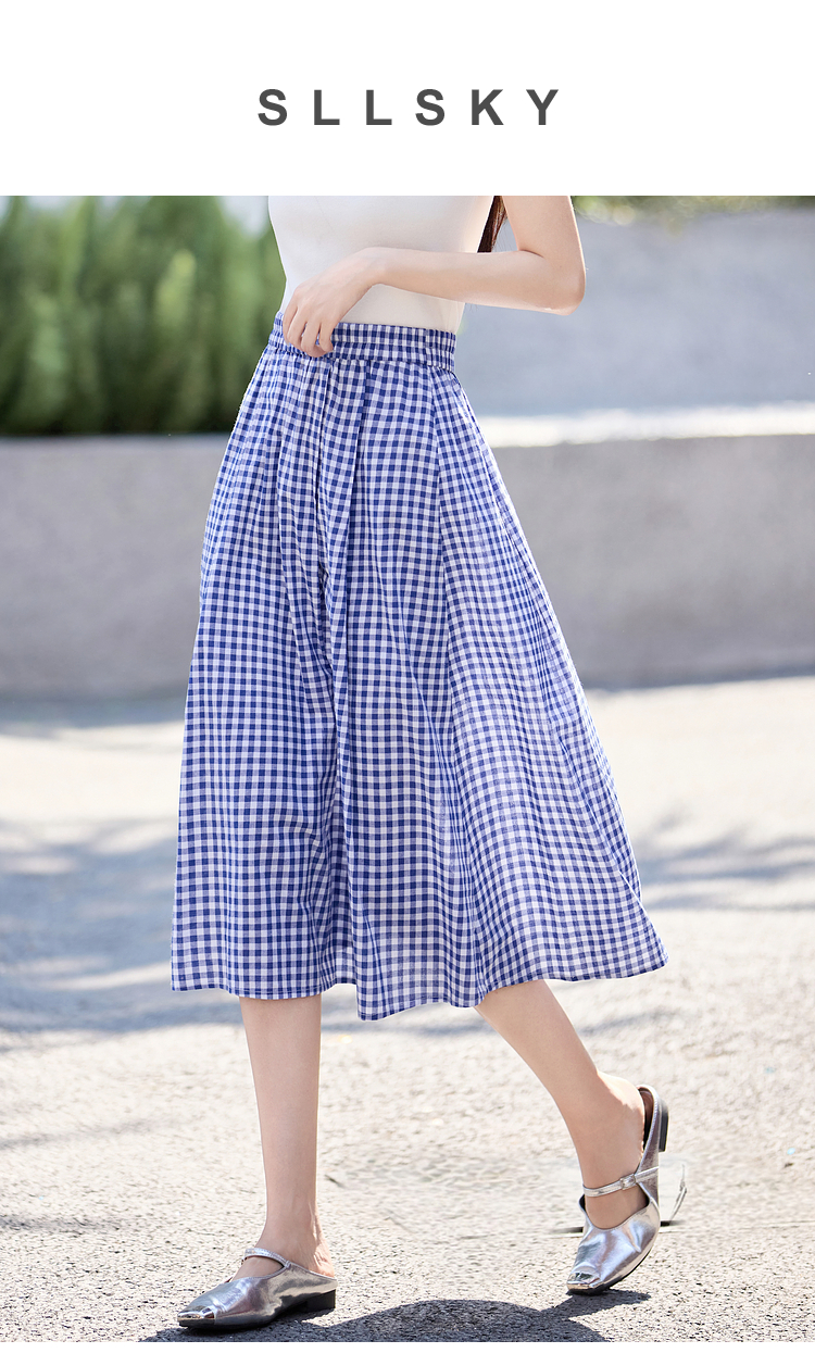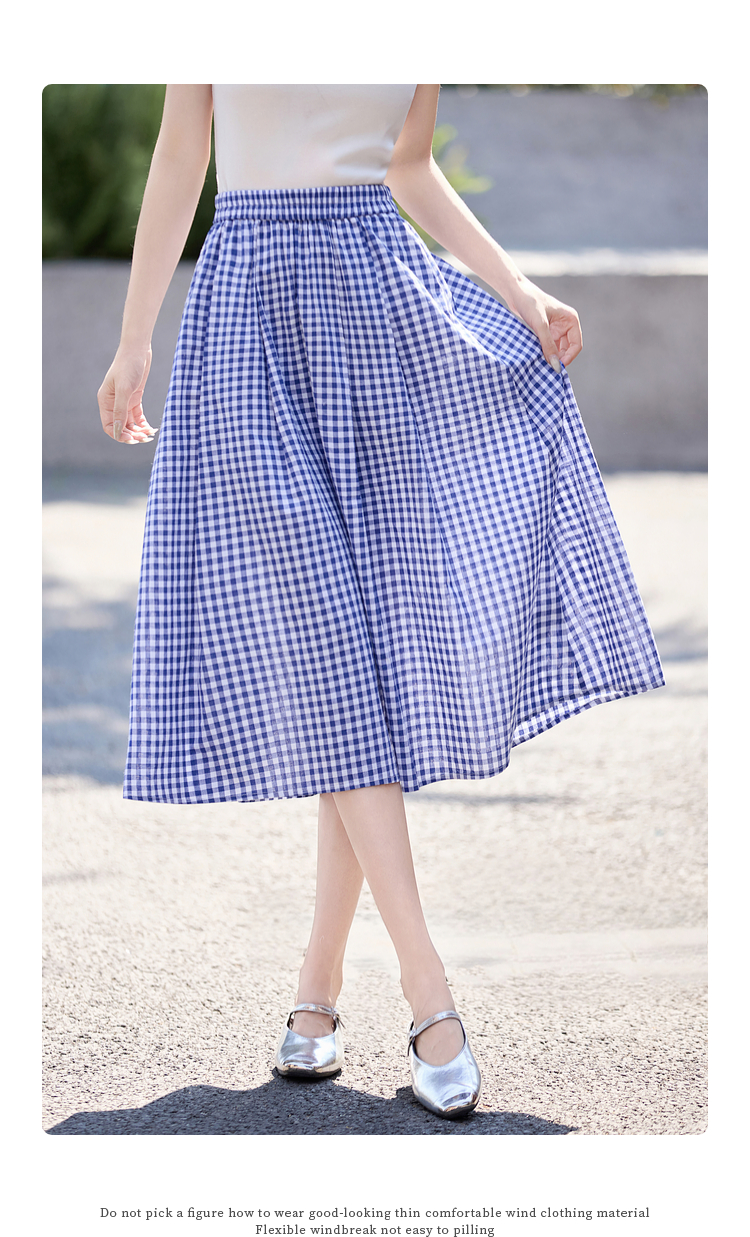 【专属特价】熙世界复古格纹半身裙女2025夏季新款设计感知识分子风中长款伞裙