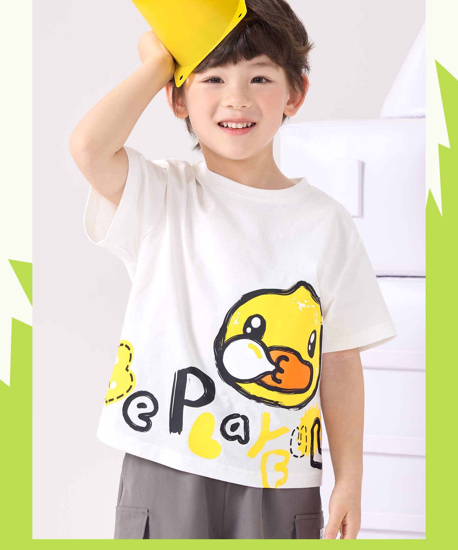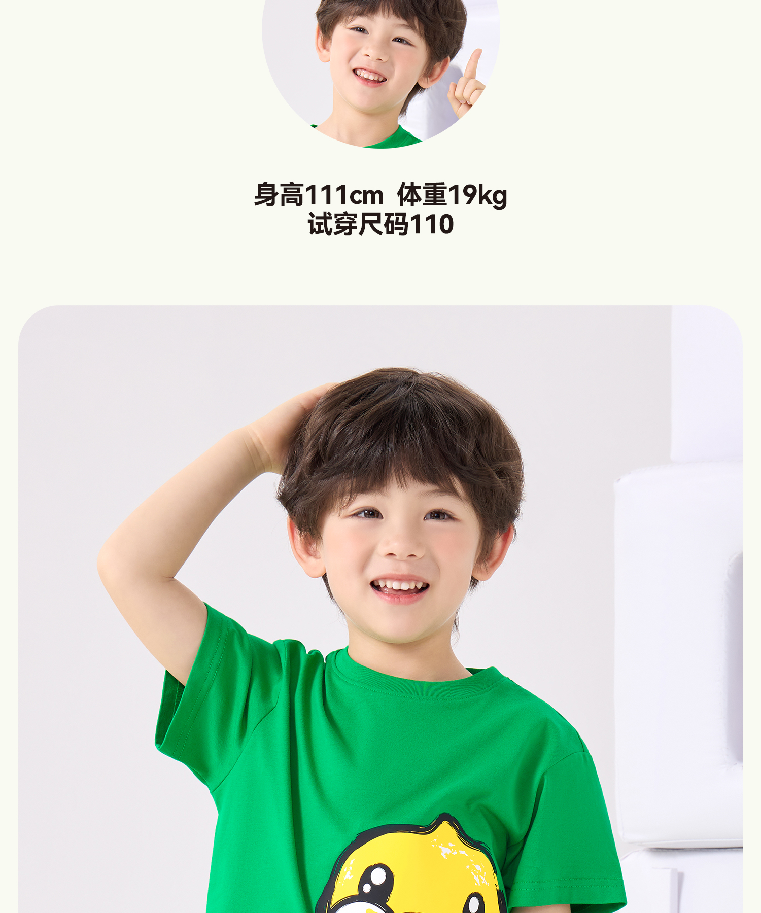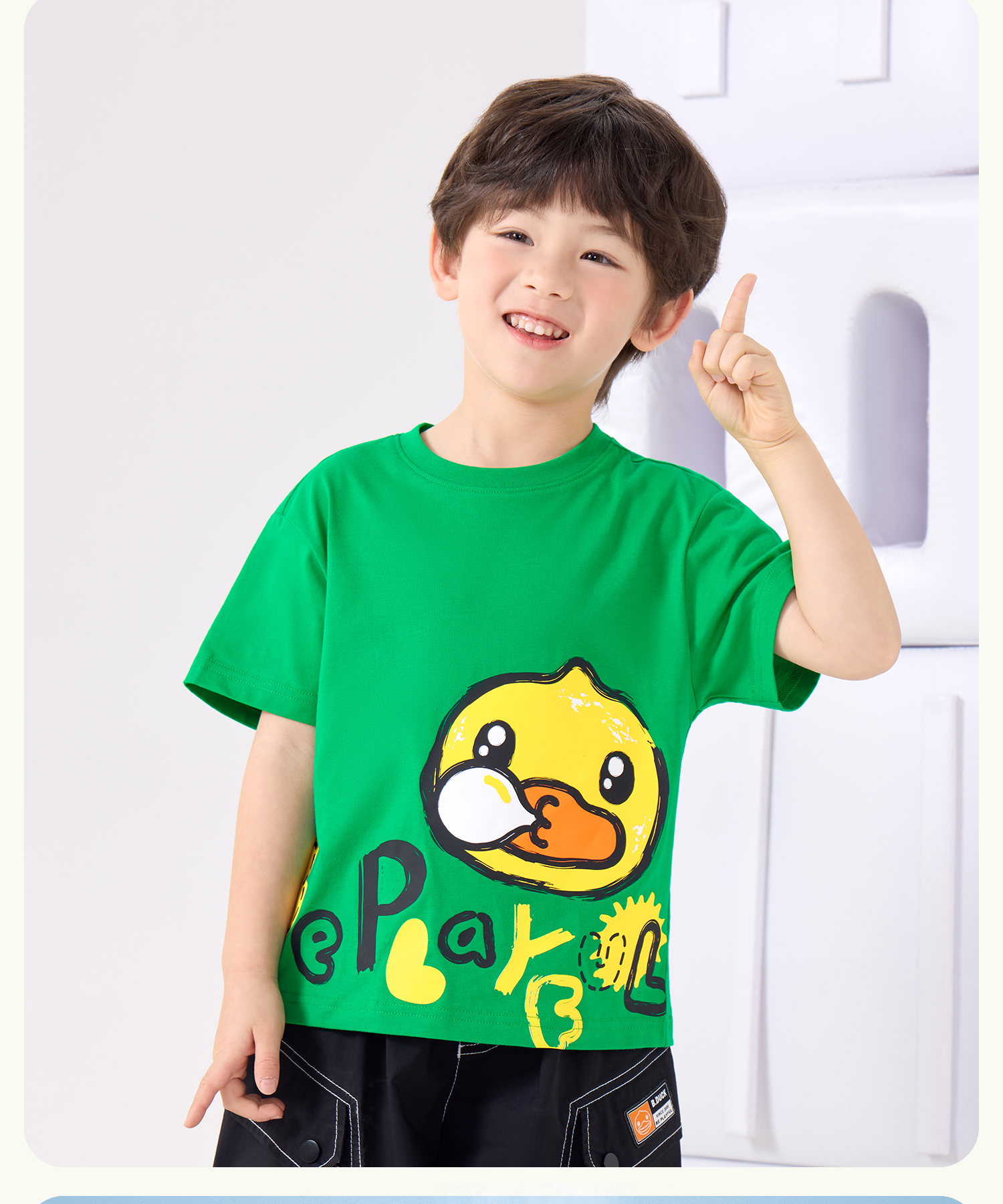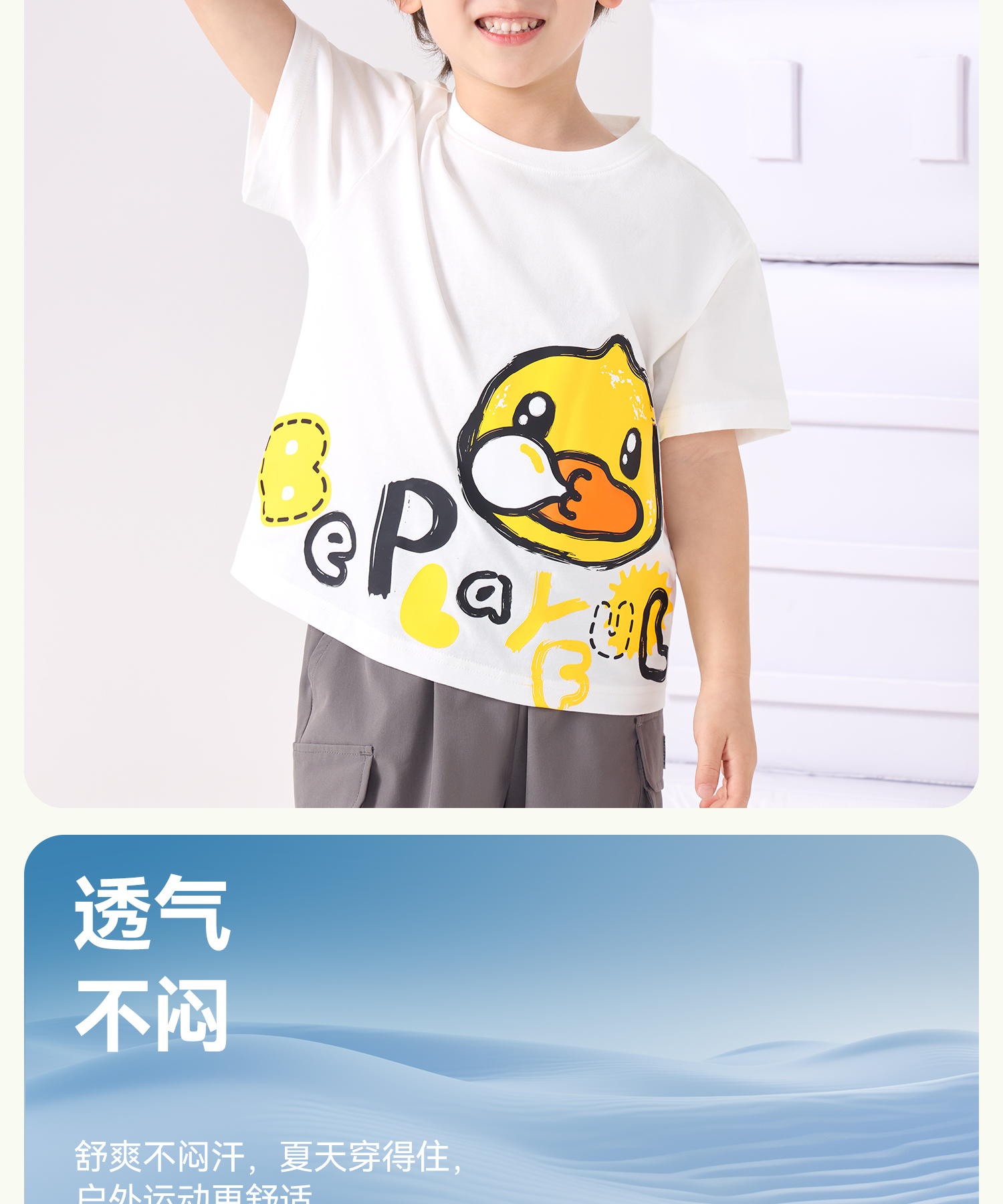 bduck小黄鸭童装夏季男童短袖儿童T恤中小童上衣夏装纯棉休闲打底衫薄105-150 BF2601079