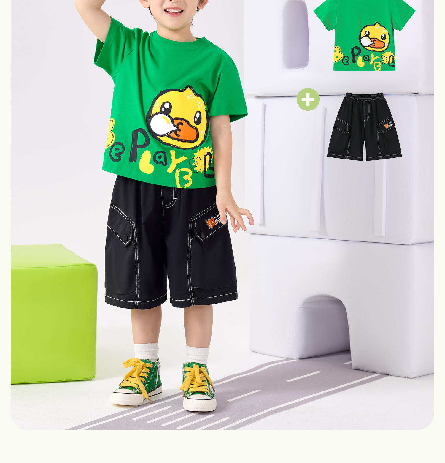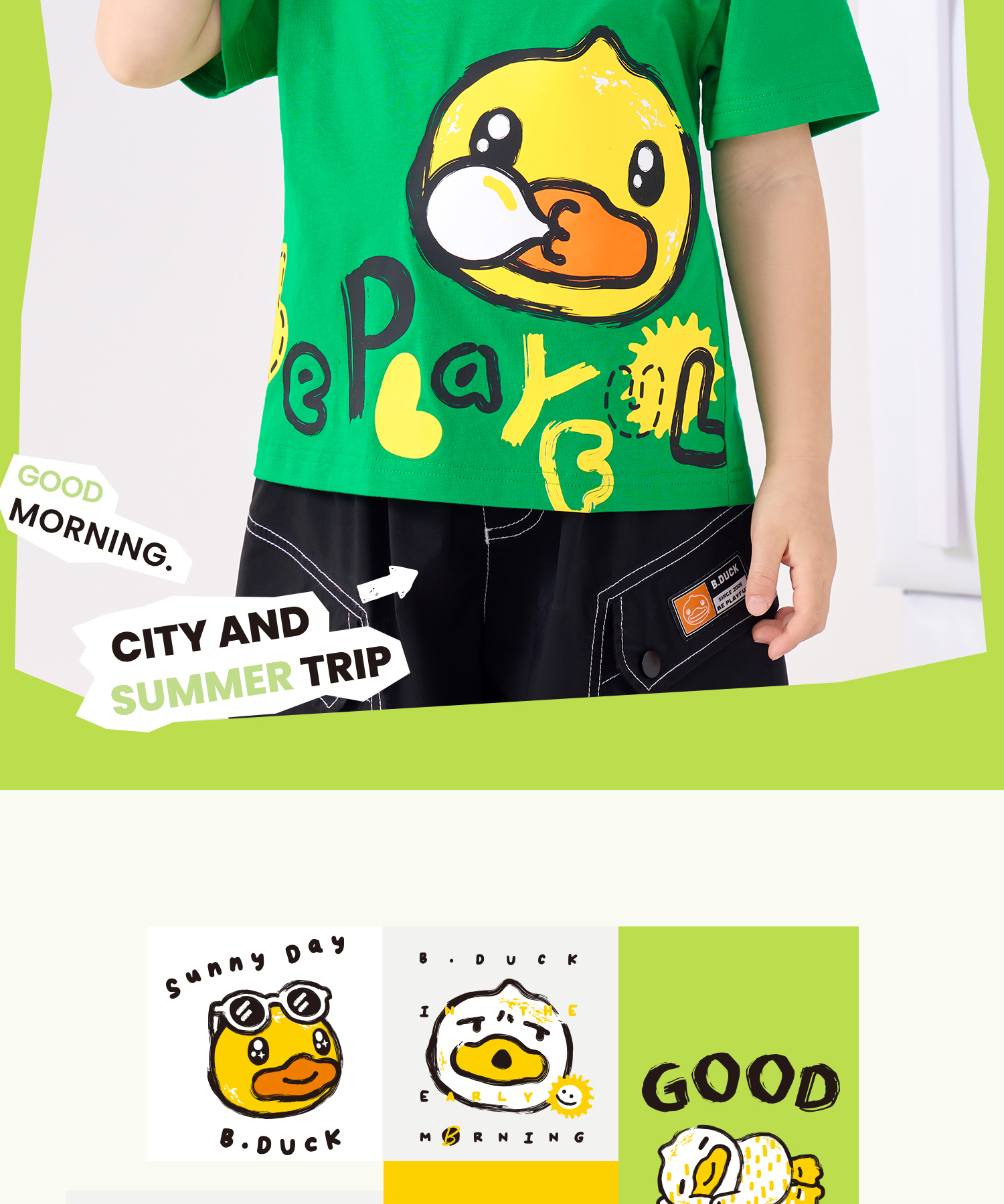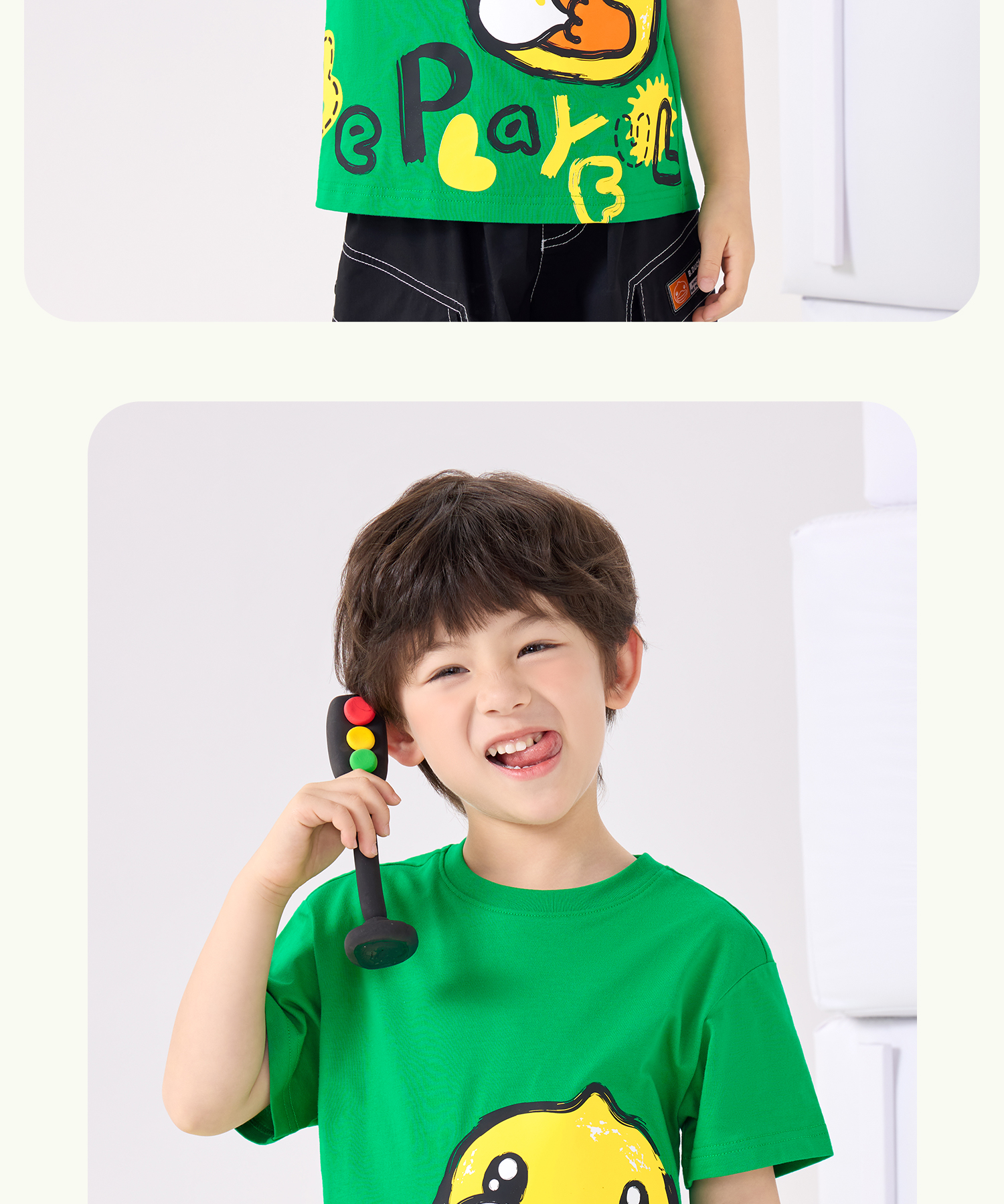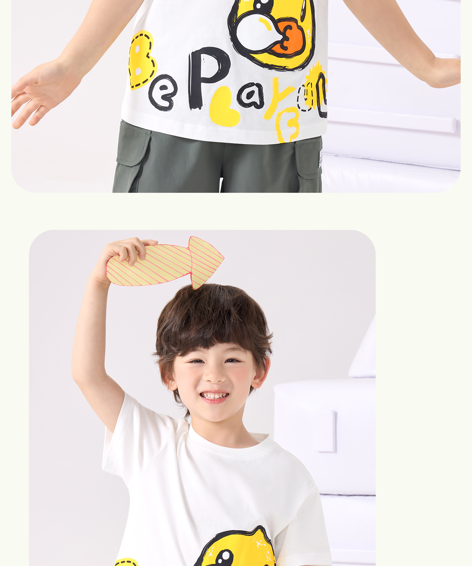 bduck小黄鸭童装夏季男童短袖儿童T恤中小童上衣夏装纯棉休闲打底衫薄105-150 BF2601079