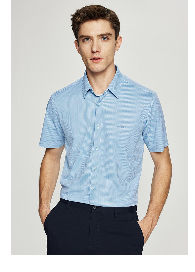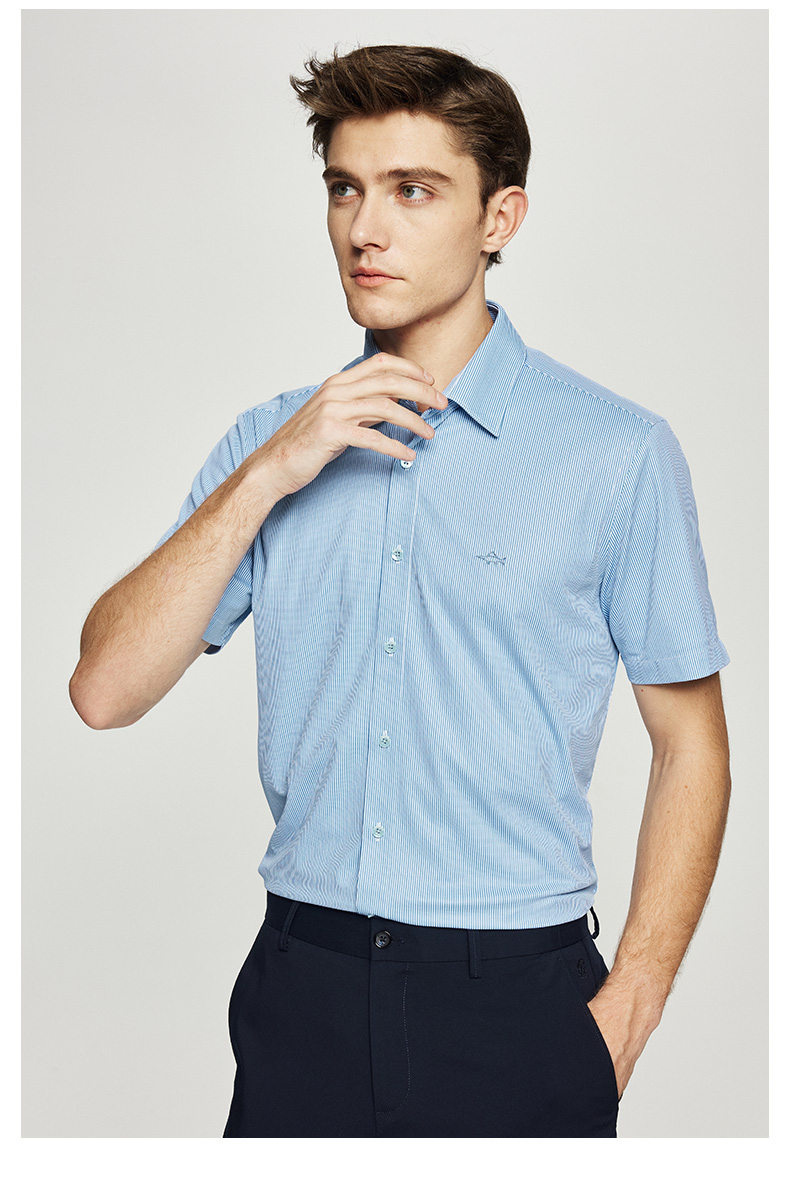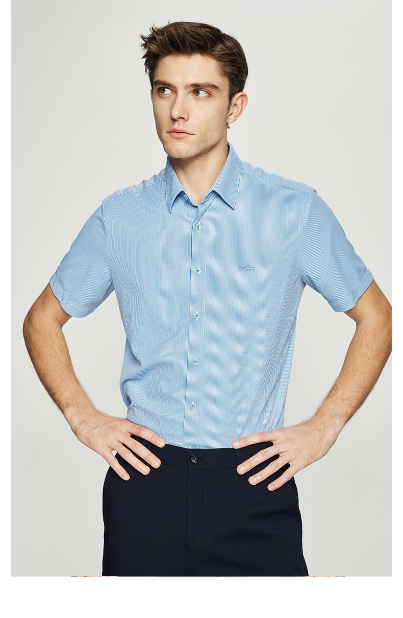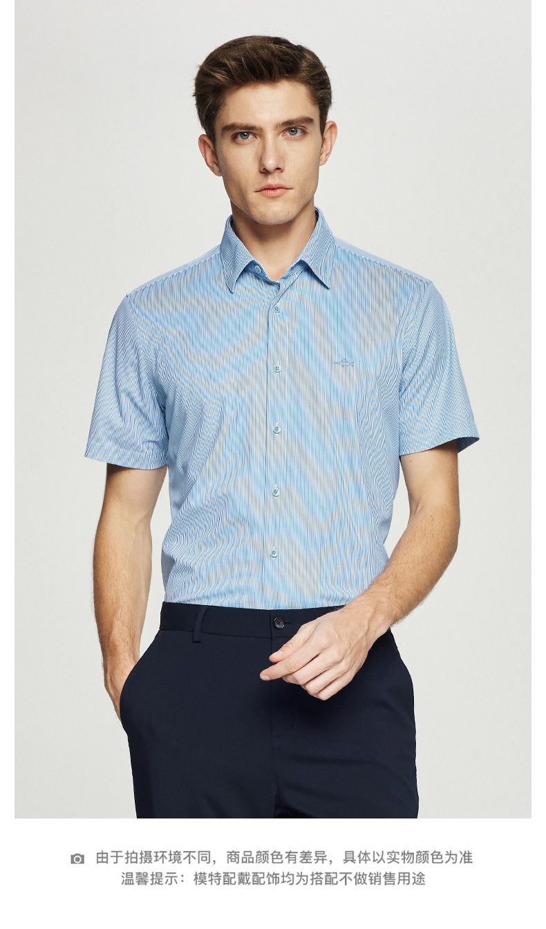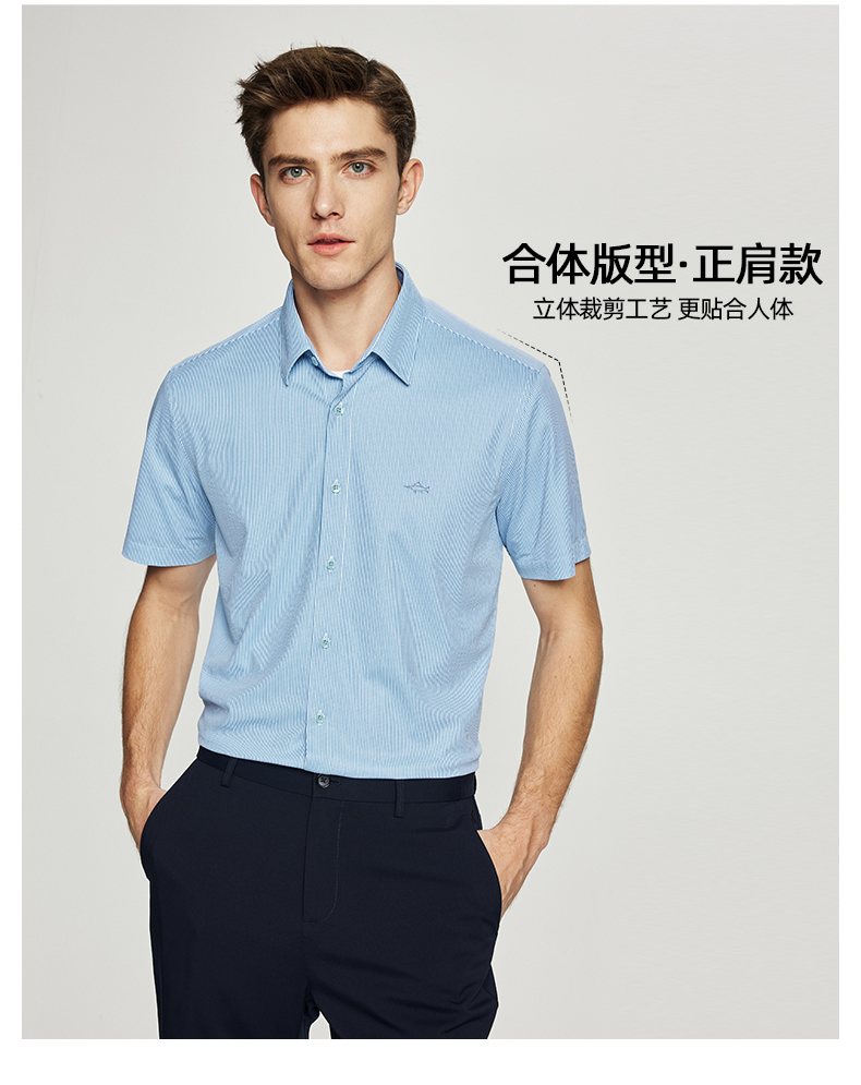 【易打理】德鲨鲨鱼短袖细条纹衬衫男2026夏新款休闲衬衣