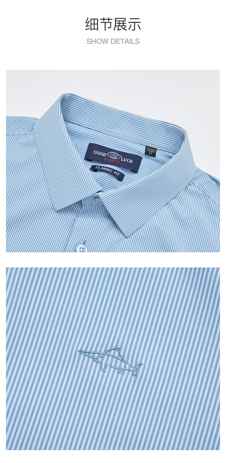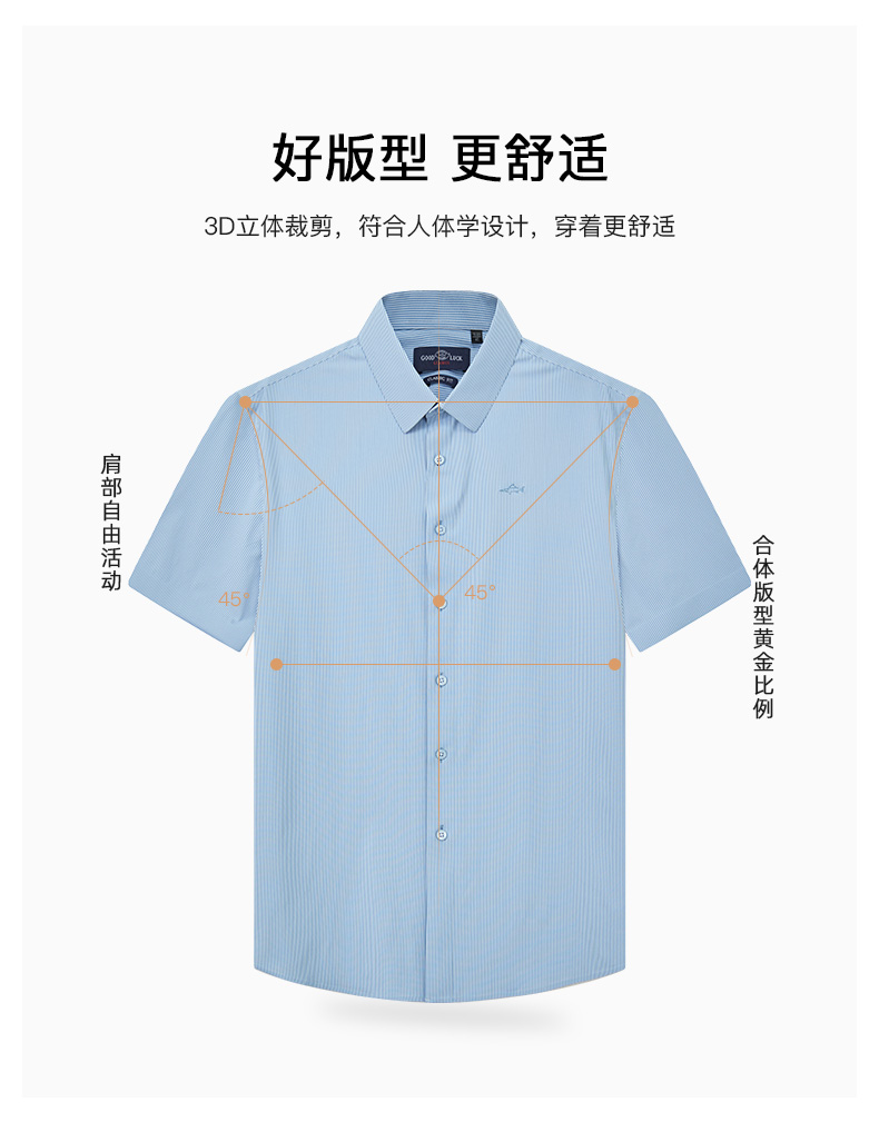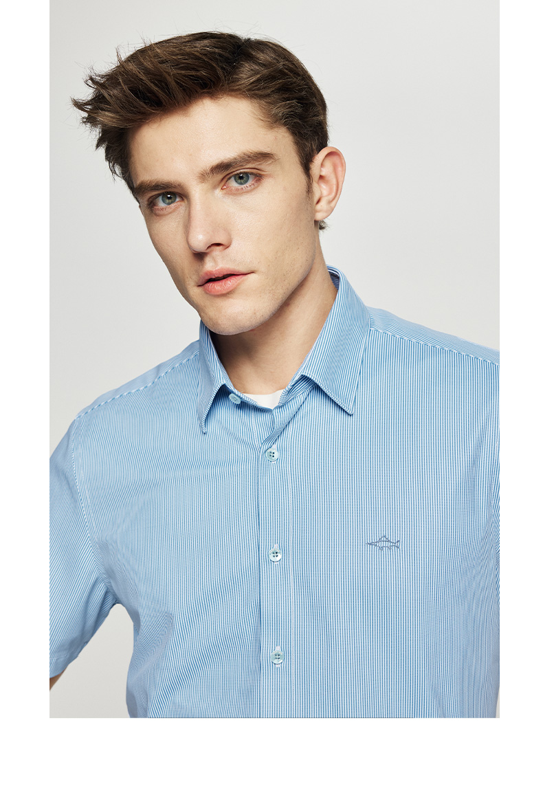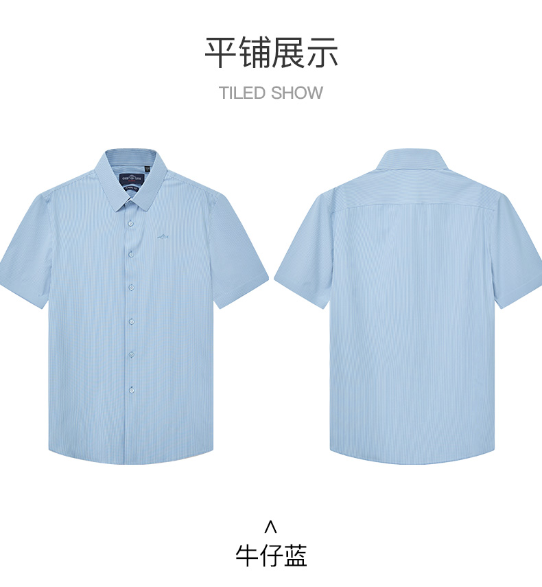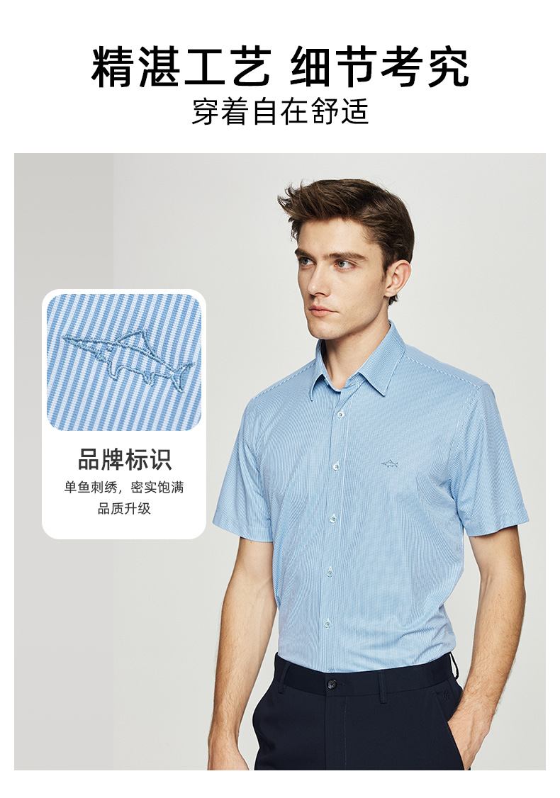 【易打理】德鲨鲨鱼短袖细条纹衬衫男2026夏新款休闲衬衣