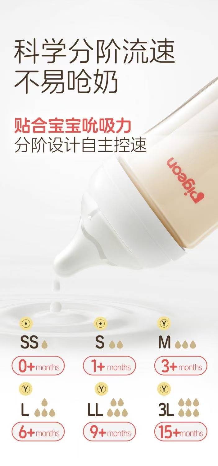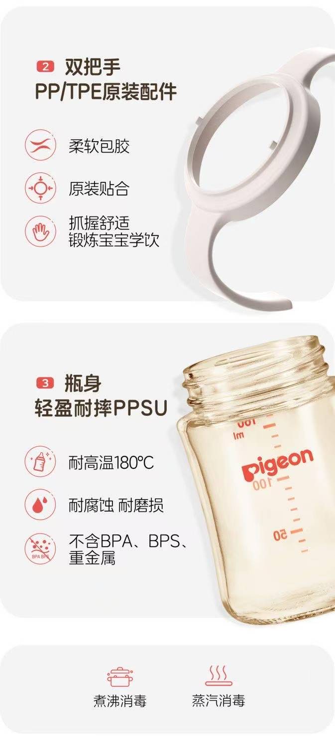 贝亲自然实感I宽口径PPSU双把手奶瓶330mL(LL号奶嘴)