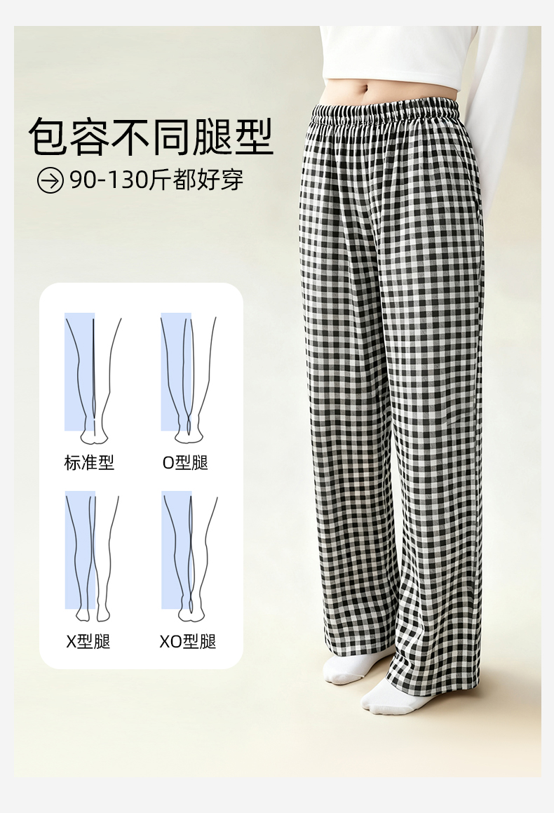 【商场同款】熳洁儿 女士秋冬休闲裤95棉经典黑白格百搭显瘦单裤25703272