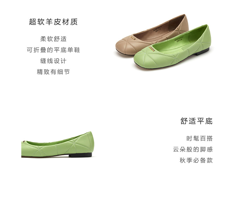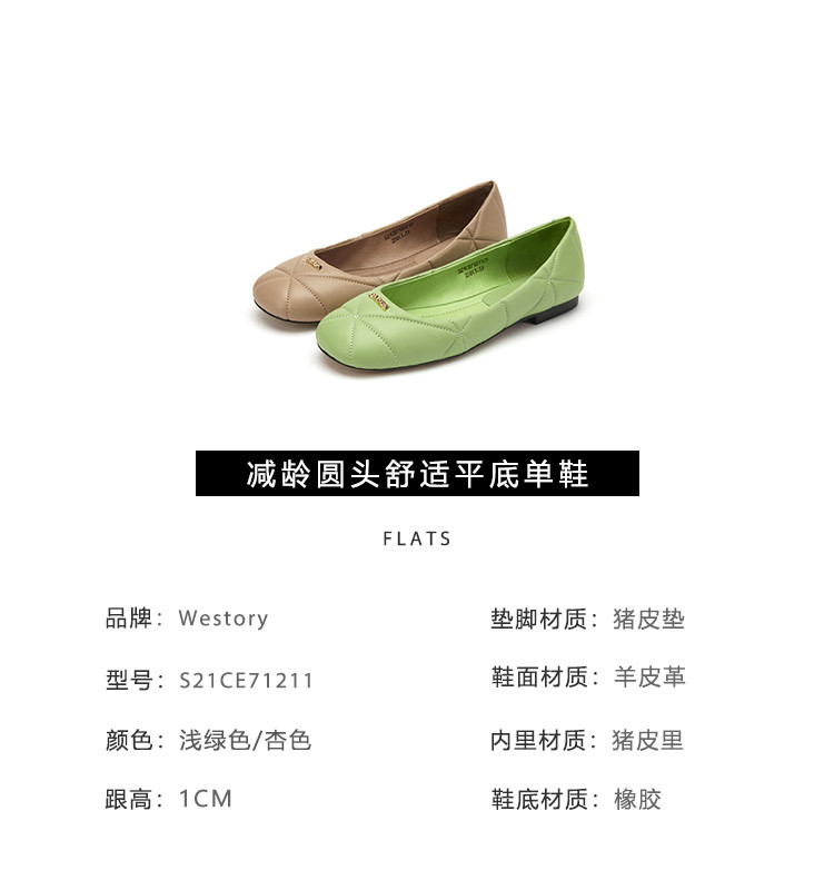 westory女鞋2021圆头简约舒适软底百搭豆豆鞋平底单鞋女S21CE71211