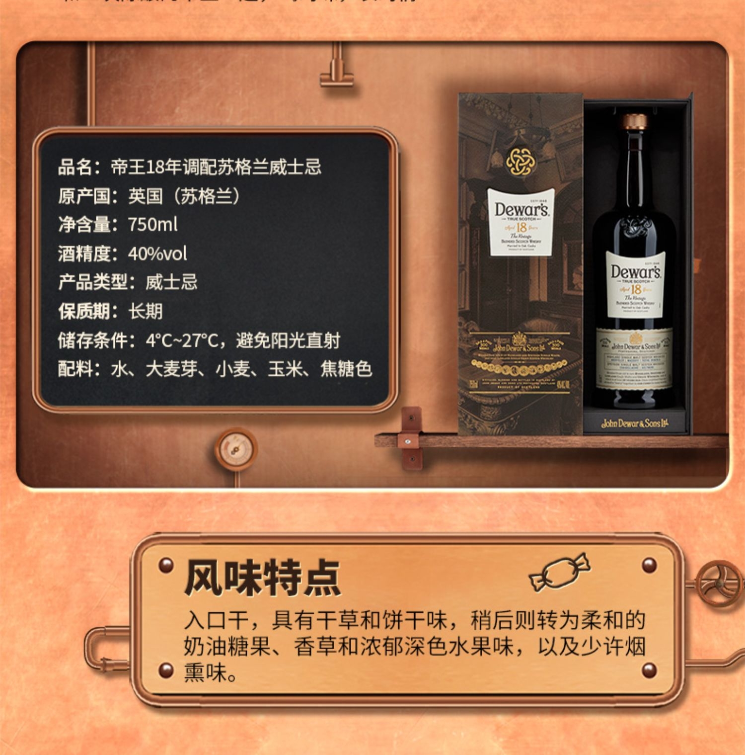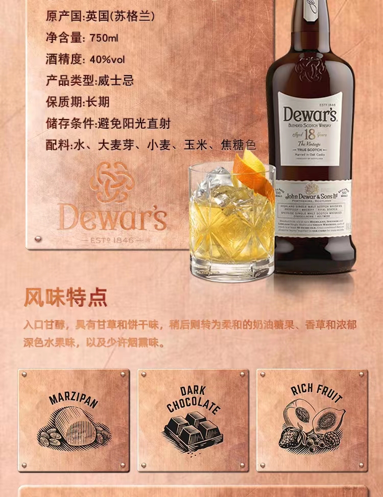 【有税版】帝王18年 Dewar's 18 YO 苏格兰 调配威士忌 750ml