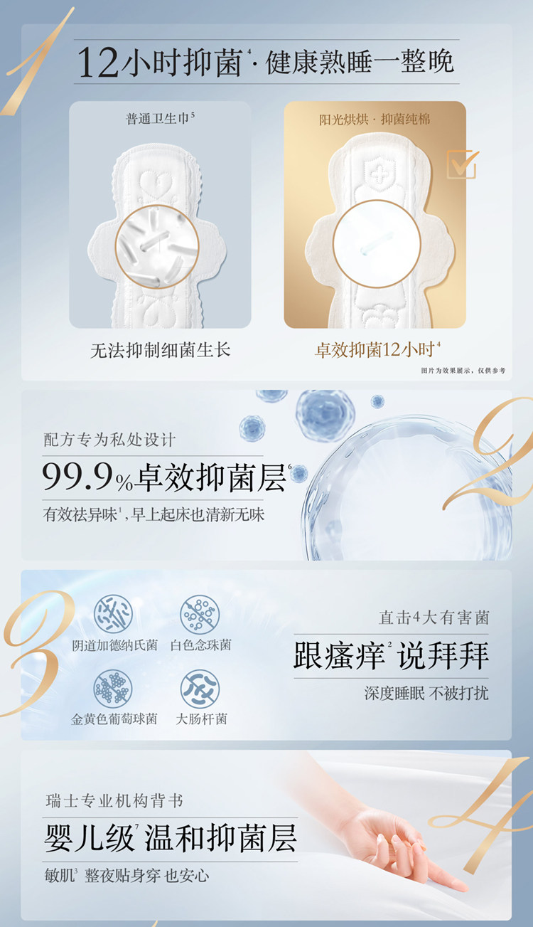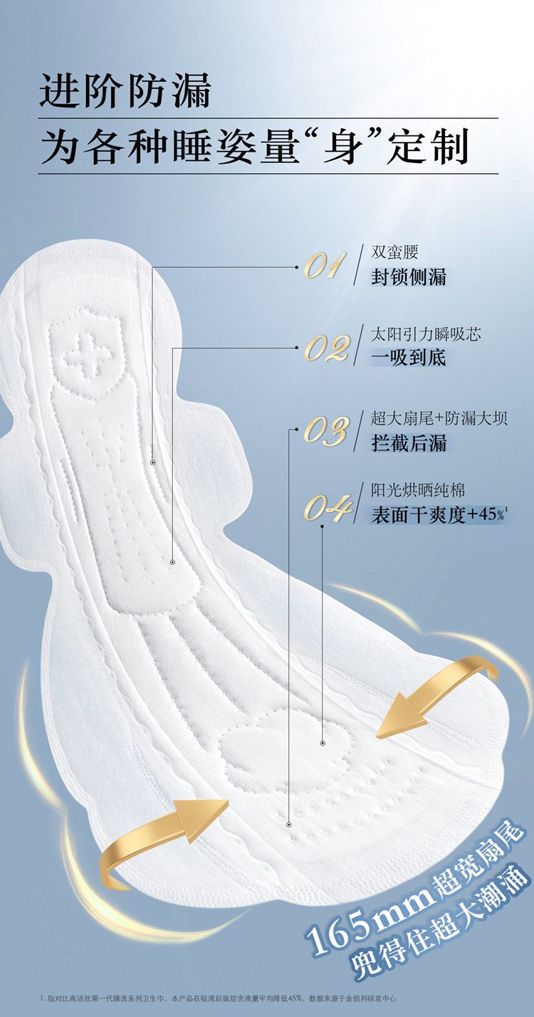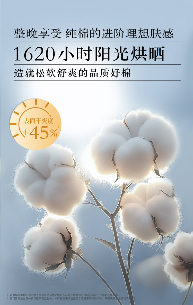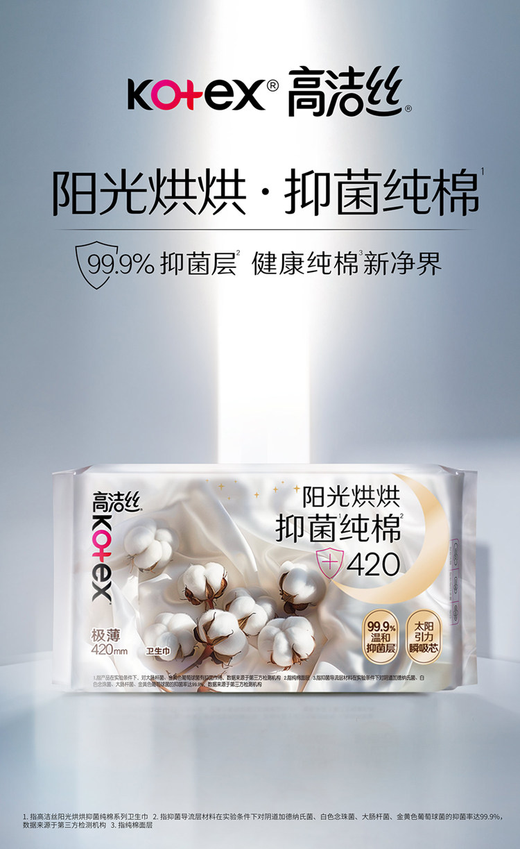 高洁丝 阳光烘烘抑菌纯棉夜用卫生巾420mm*8p