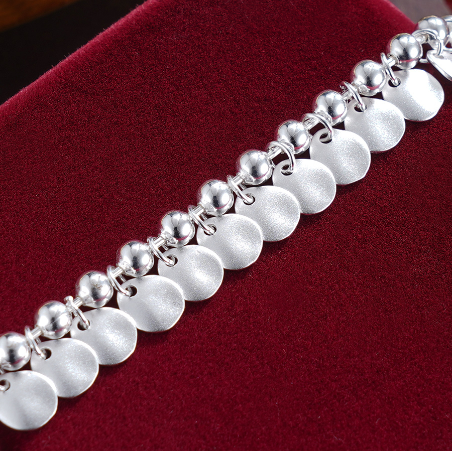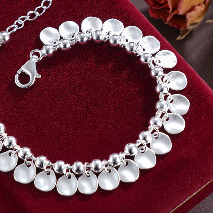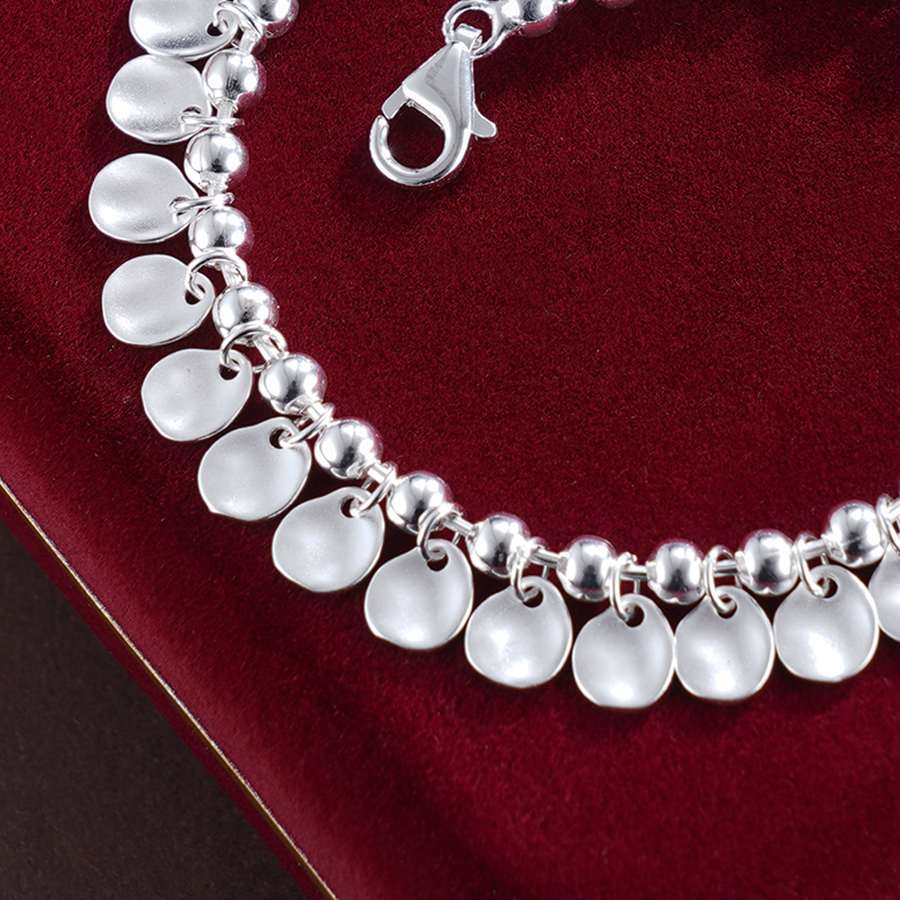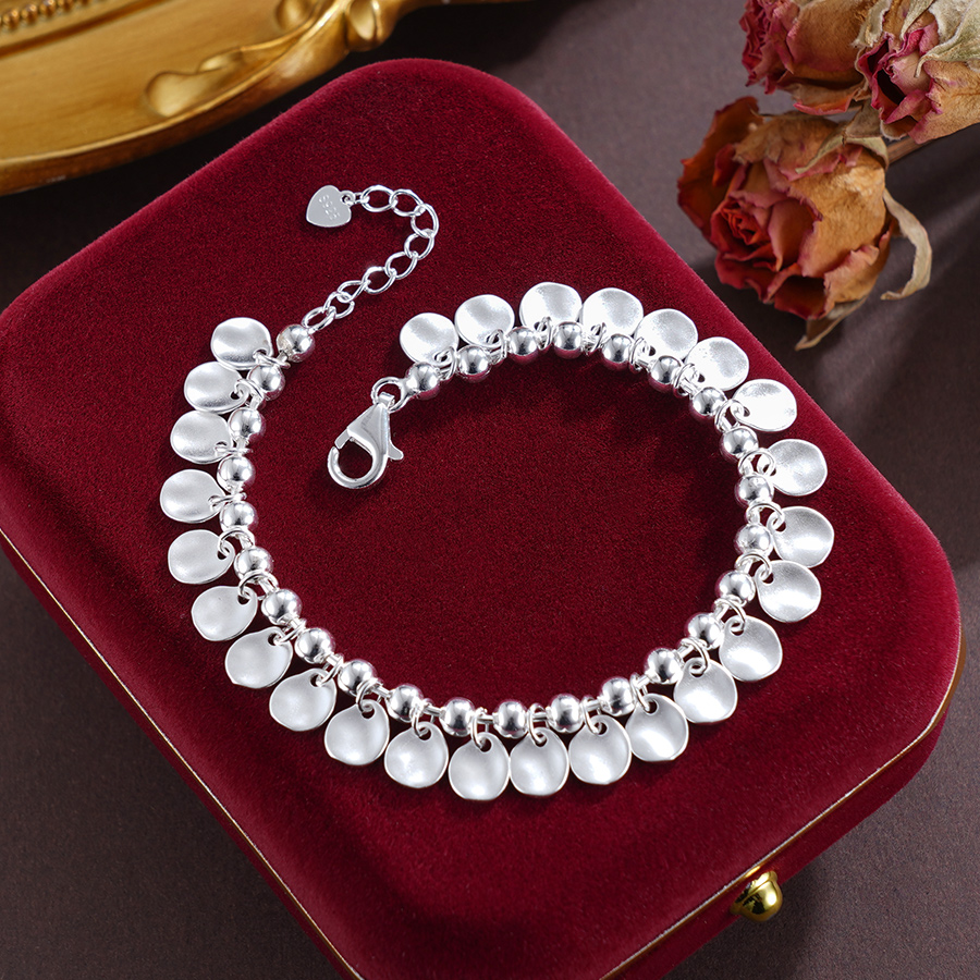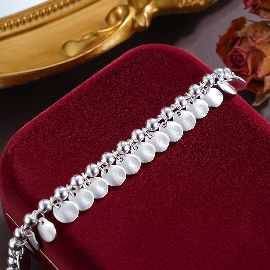 【寓意】:纯银手链之上,纤细薄圆片点缀其间,随着手腕转动,仿佛轻波荡漾,灵动而熠熠生辉。