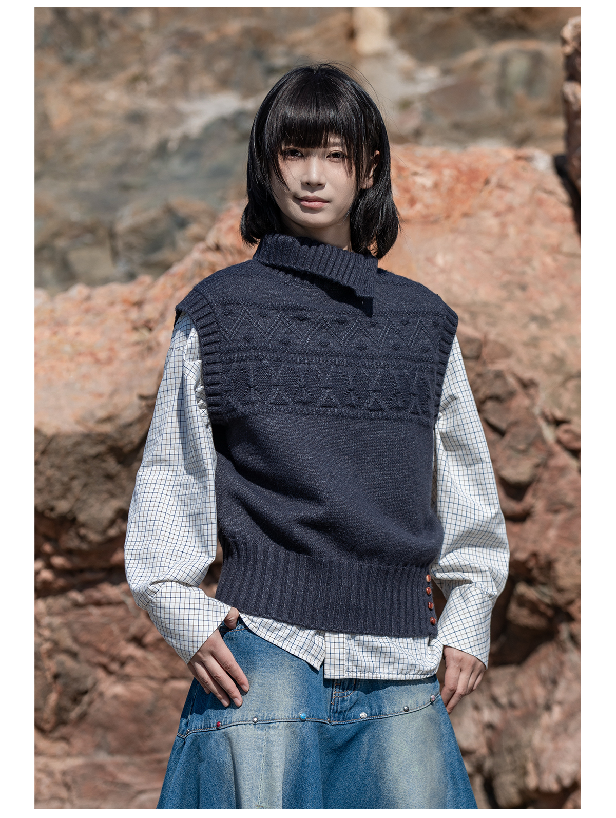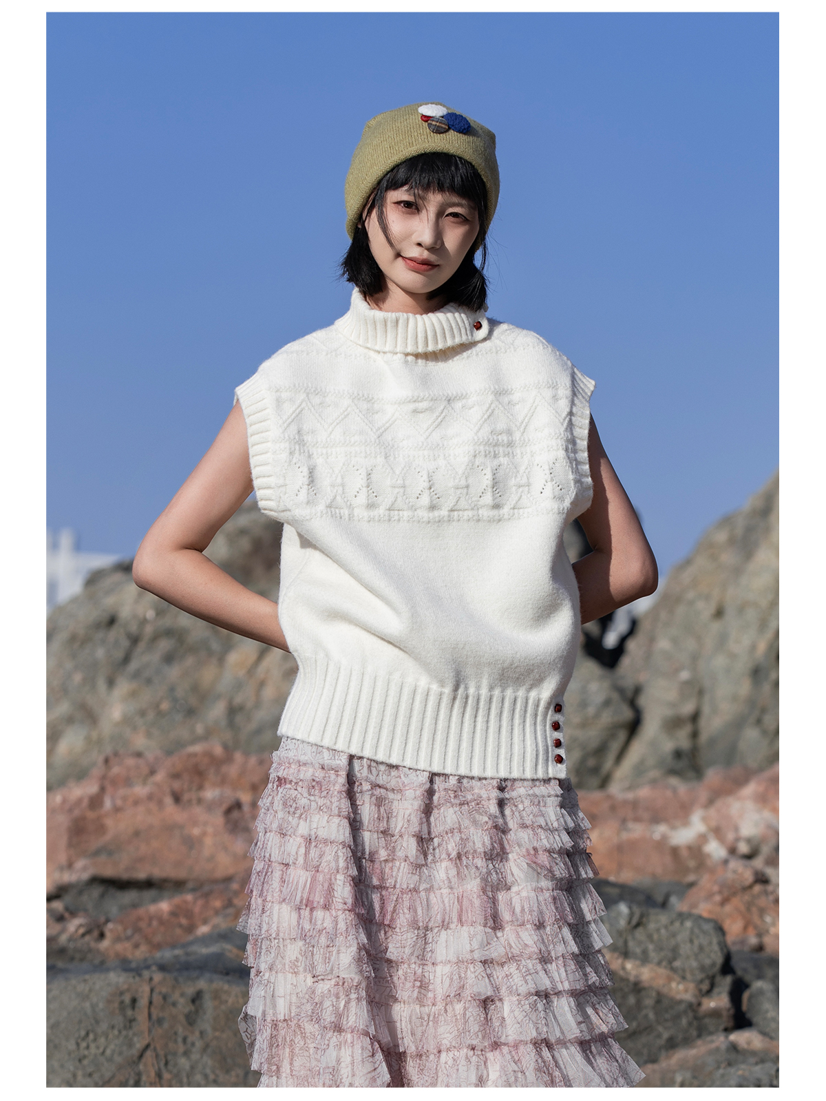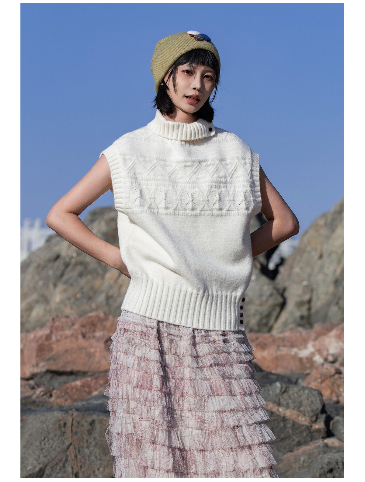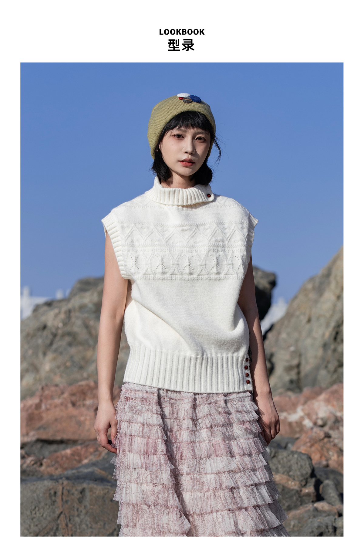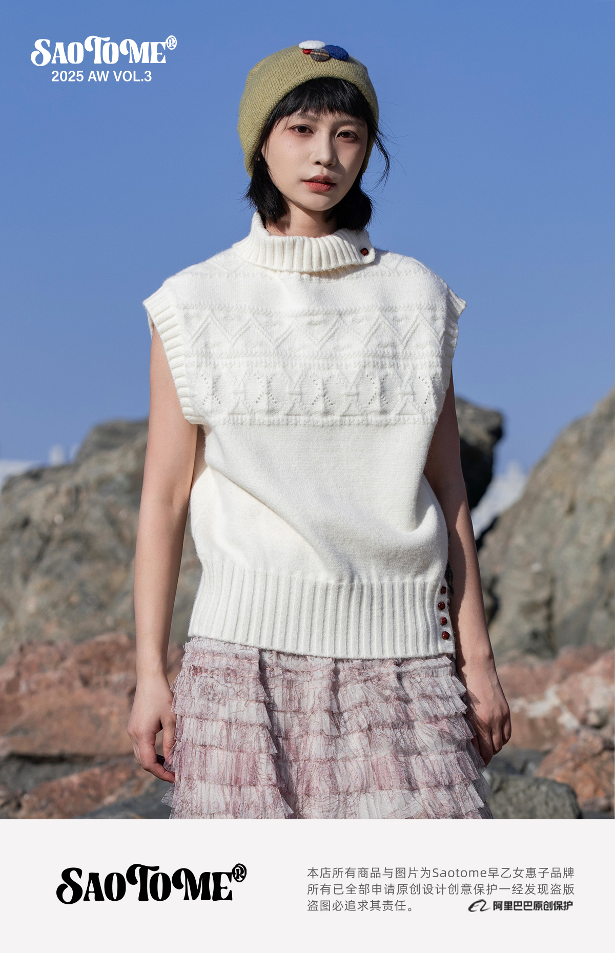 早乙女惠子saotome/STMMY13111/浮雕绞花高领坎肩毛衣