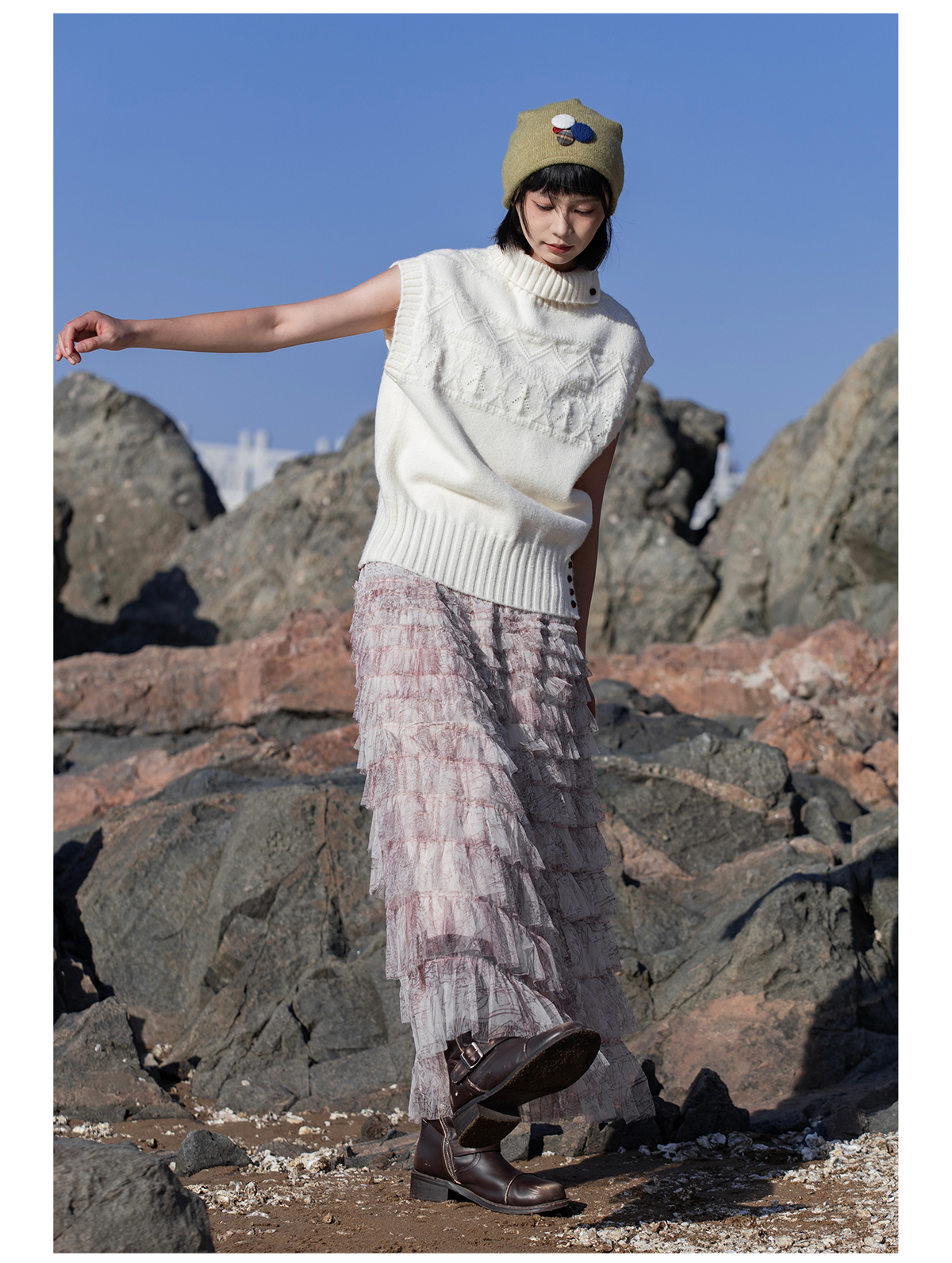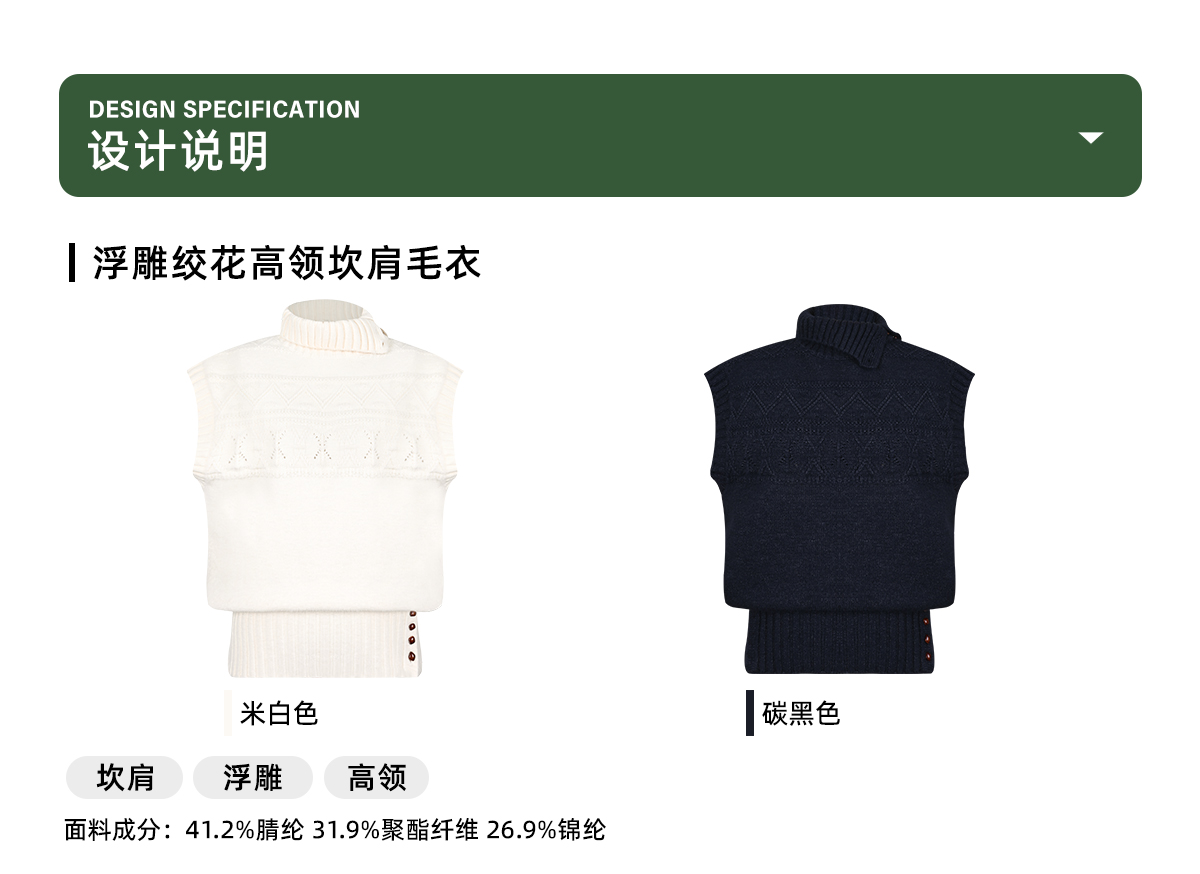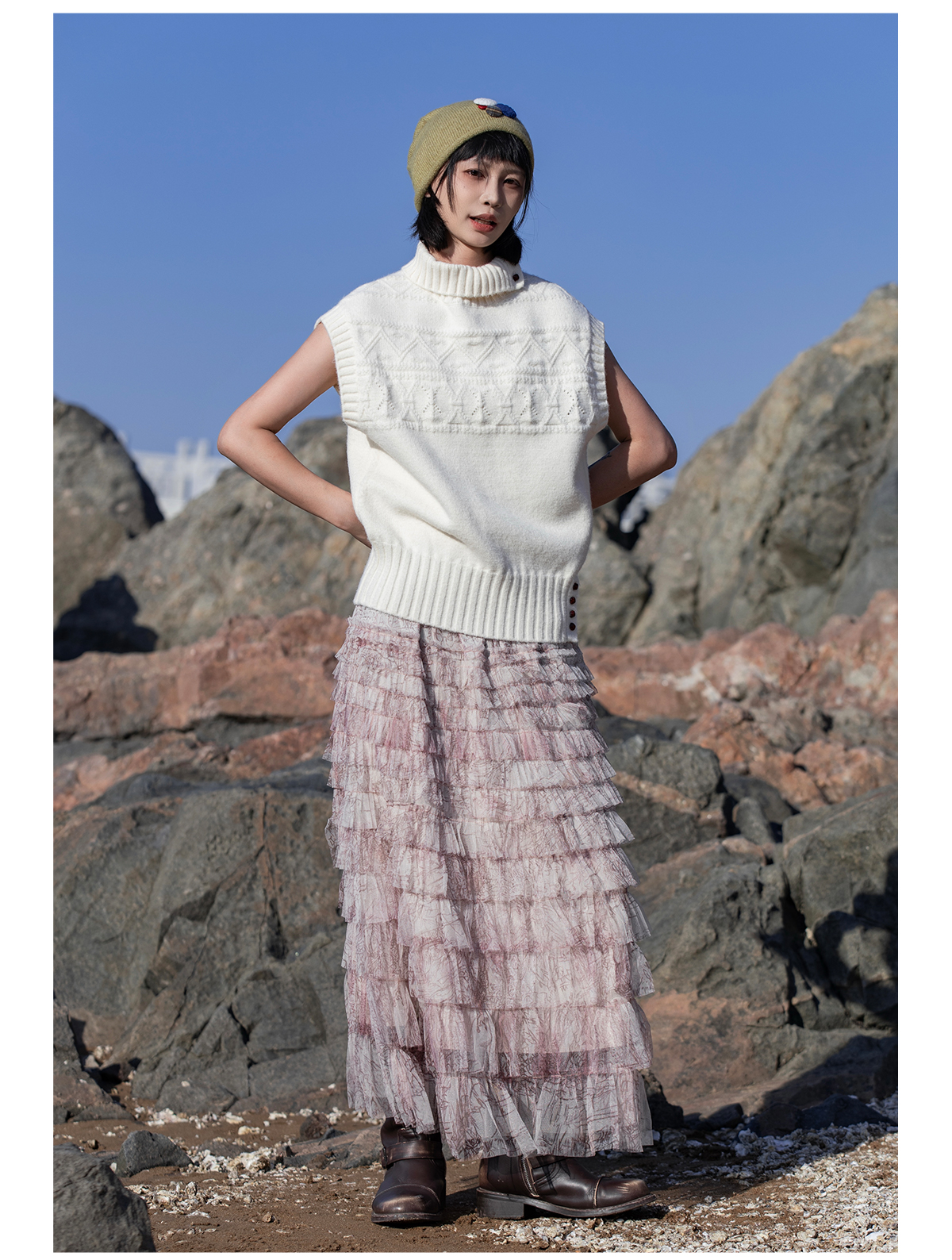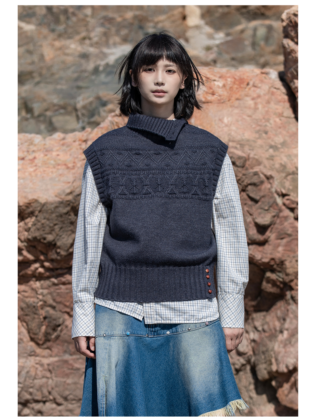 早乙女惠子saotome/STMMY13111/浮雕绞花高领坎肩毛衣