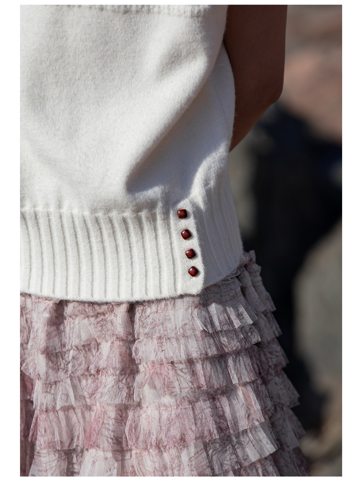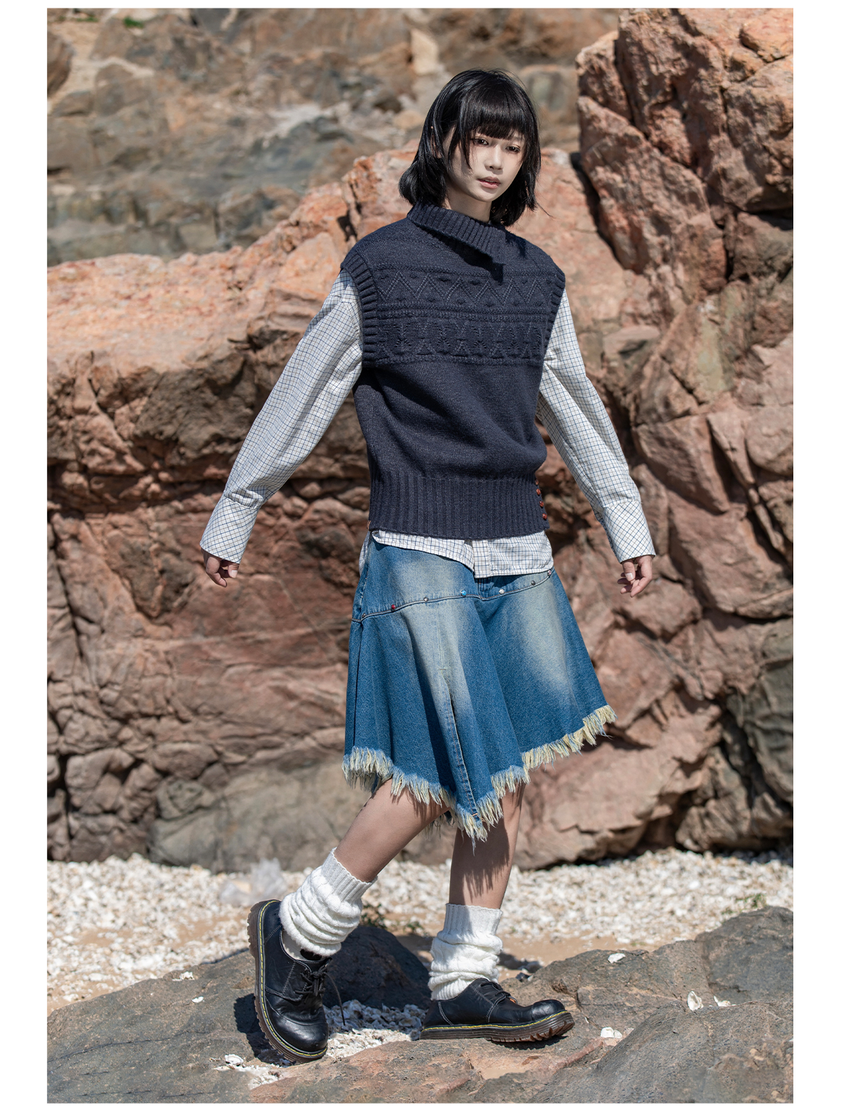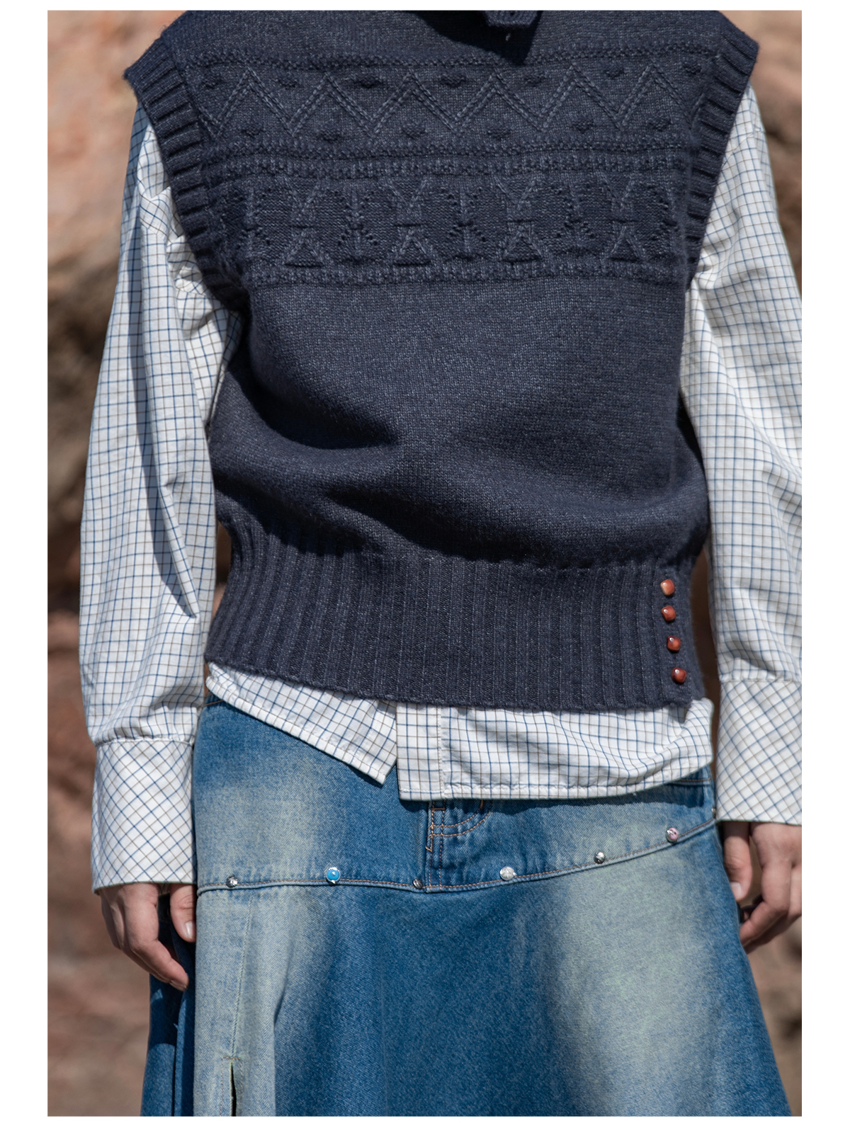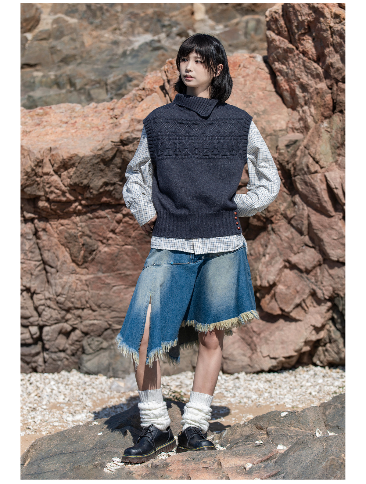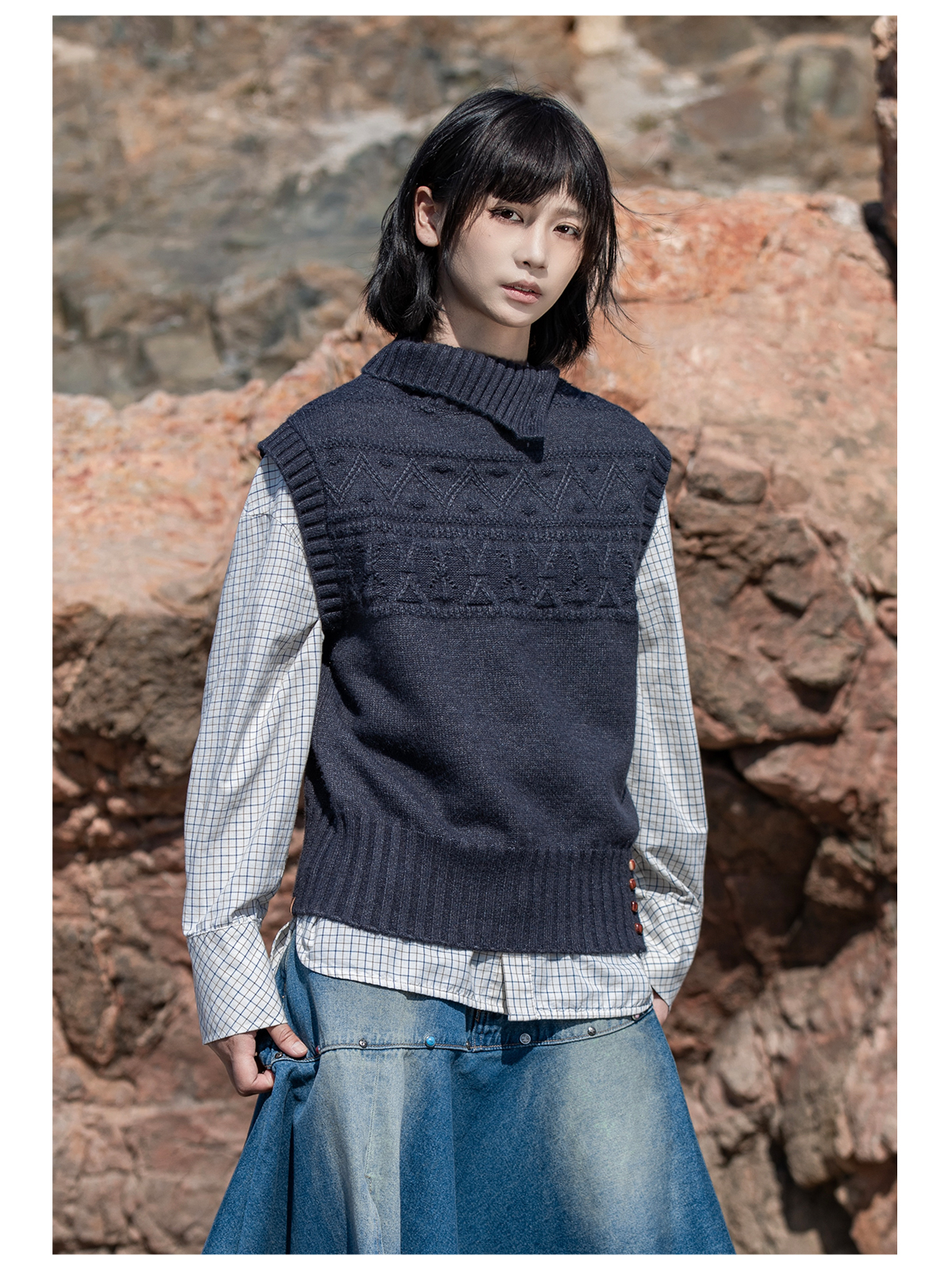 早乙女惠子saotome/STMMY13111/浮雕绞花高领坎肩毛衣