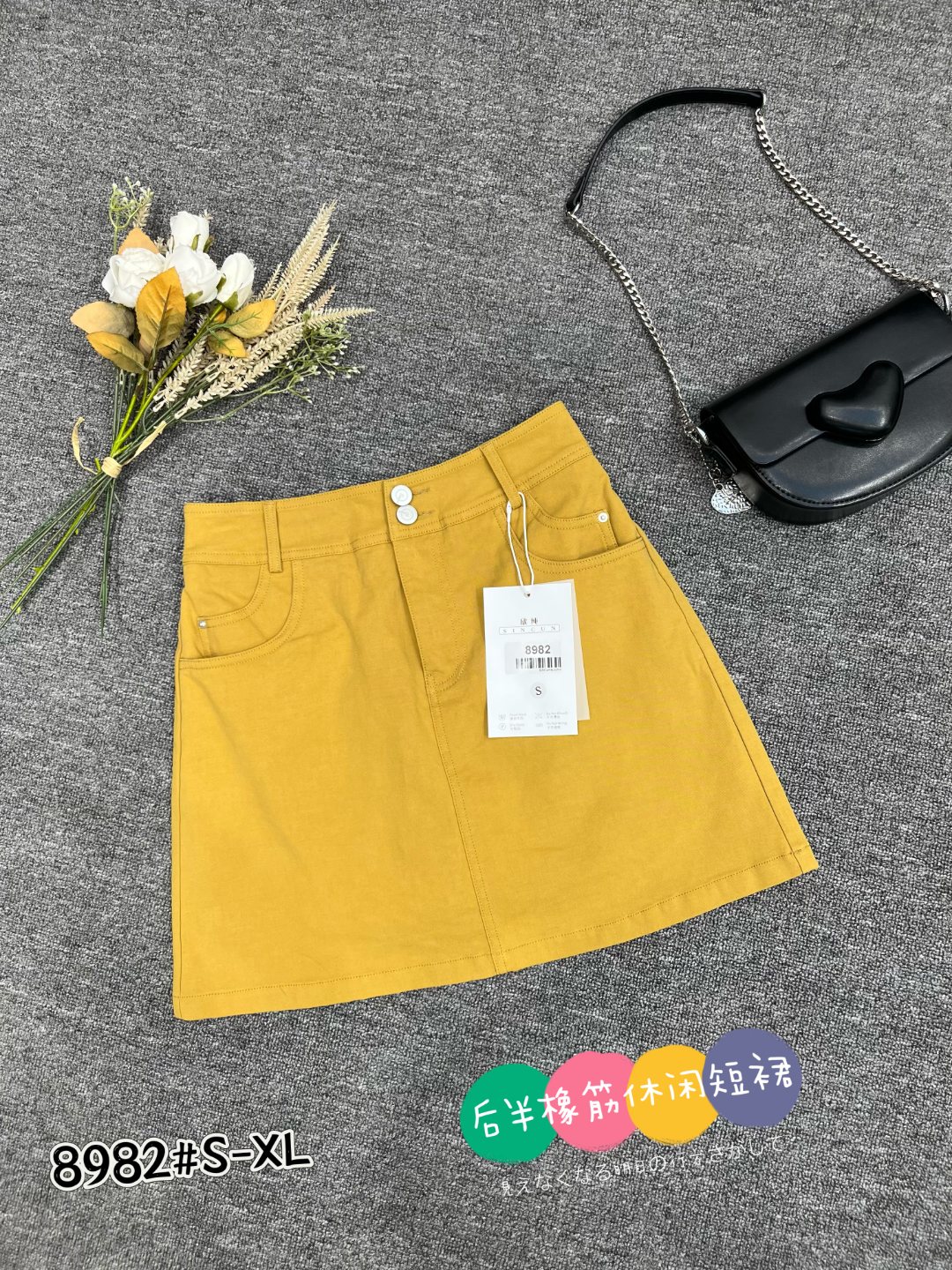 8982 # S-L 韩版夏季新款纯色A字短款 显瘦设计感简约牛仔半身裙