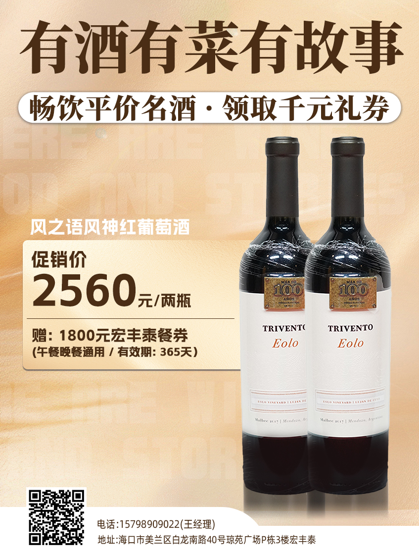 【宏丰泰酒礼】阿根廷-干露风之语风神干红葡萄酒2016(2瓶装特惠+赠宏丰泰1800元无门槛餐券)