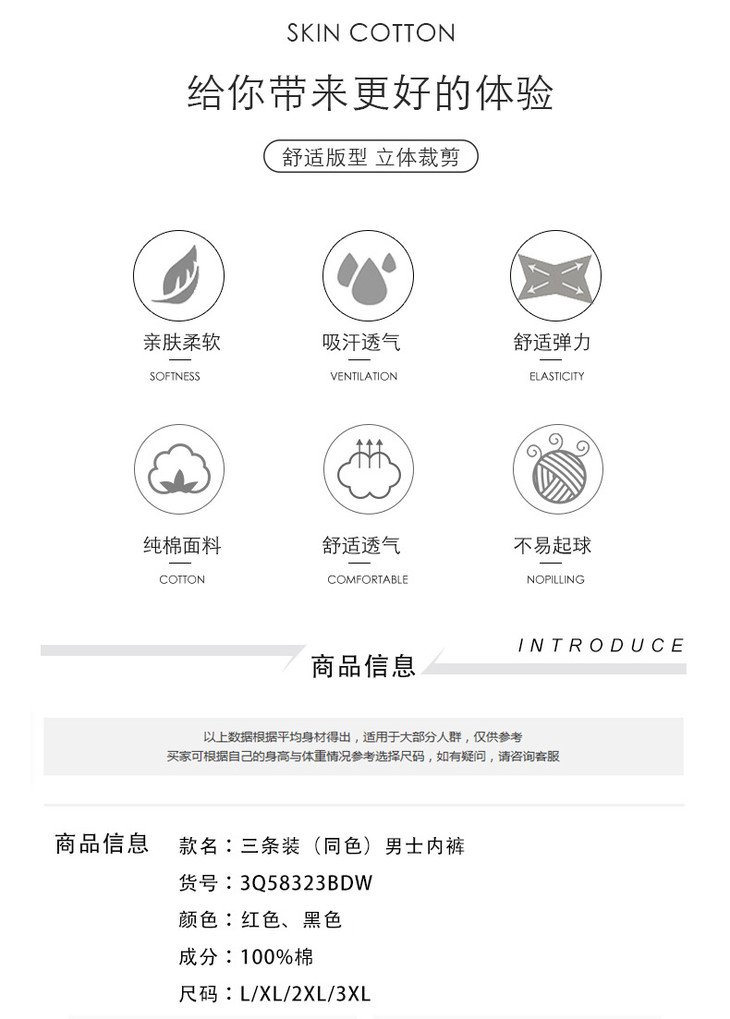 (99元/3条)全棉平角抗菌男士内裤58323