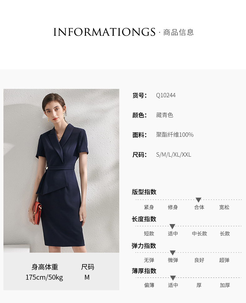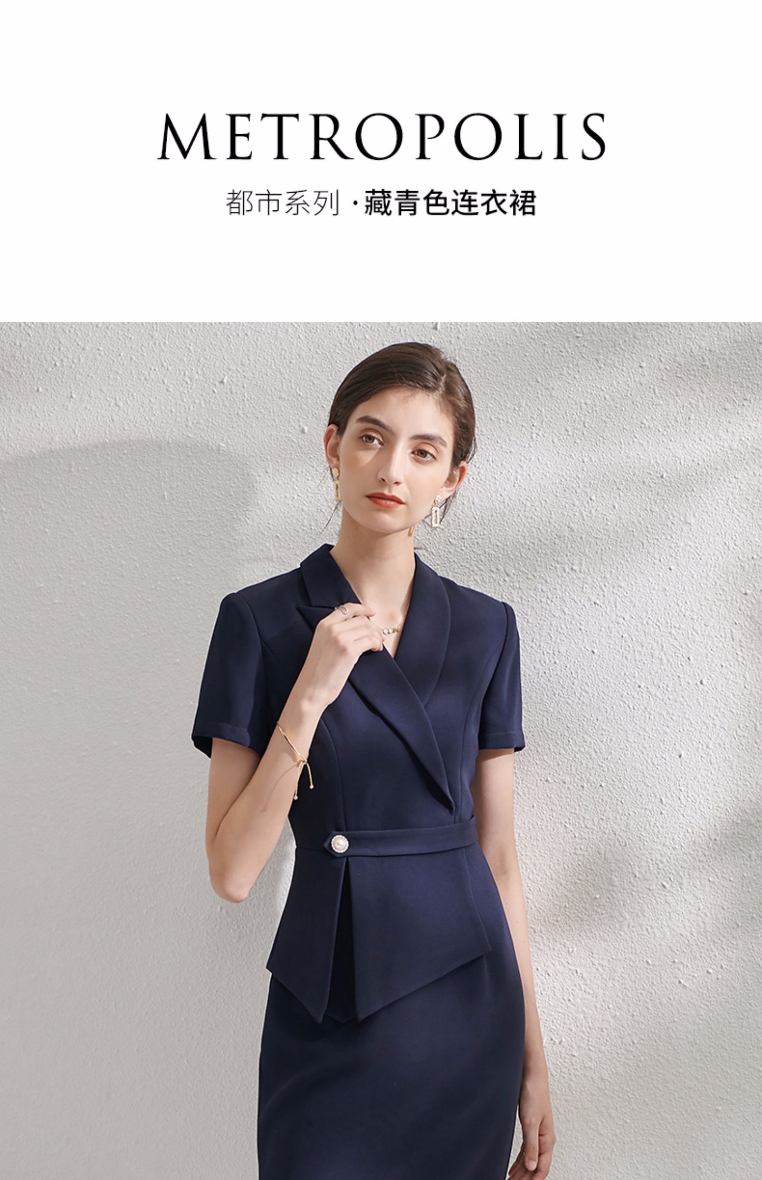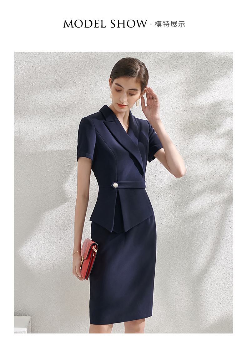 IWY/藏青色西装连衣裙经理职业装套裙气质修身通勤商务ol工作服Q11253
