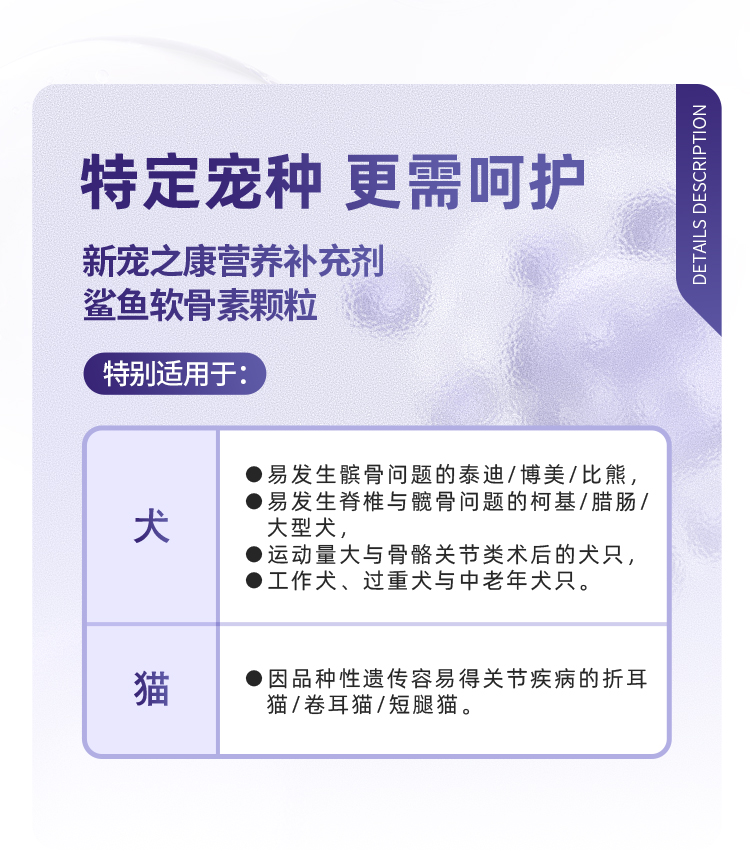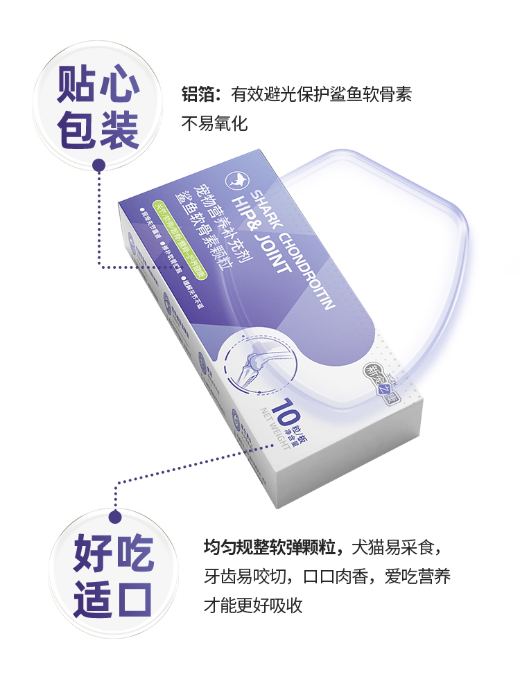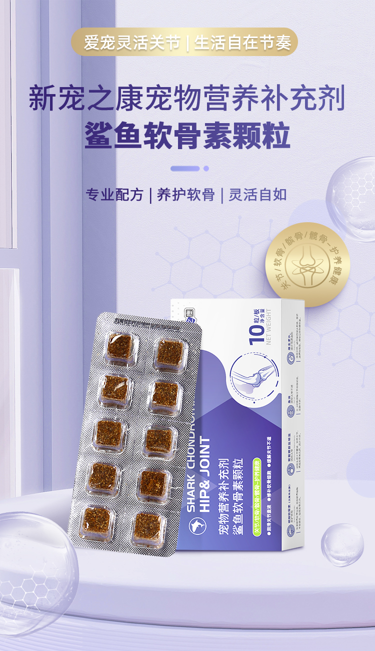 新宠之康鲨鱼软骨素颗粒10粒装 呵护关节健骨补钙 软弹颗粒 适口性好犬猫通用