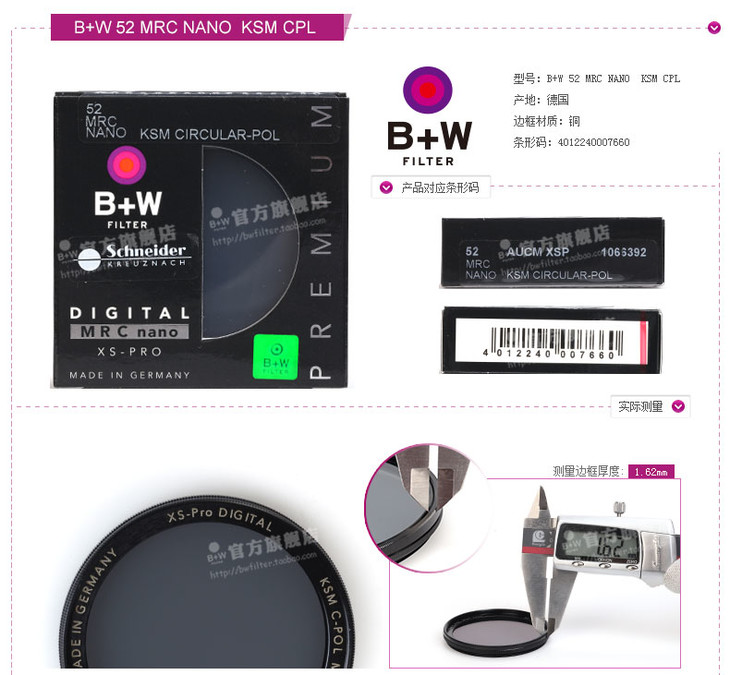 狼族优选丨狼族优选丨B+W KSM XS-PRO MRC NANO CPL偏振镜 凯氏超薄多层镀膜 滤镜