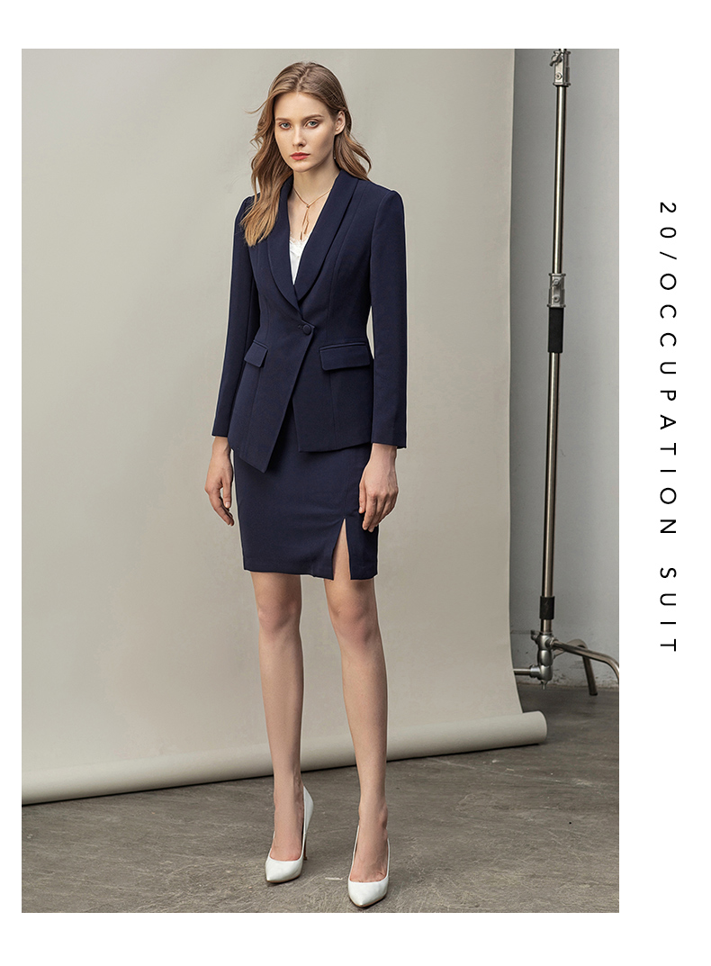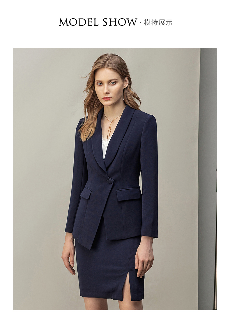 IWY/高端藏青色西装套裙OL商务正装女售楼部工作服女职业气质套装CS11356