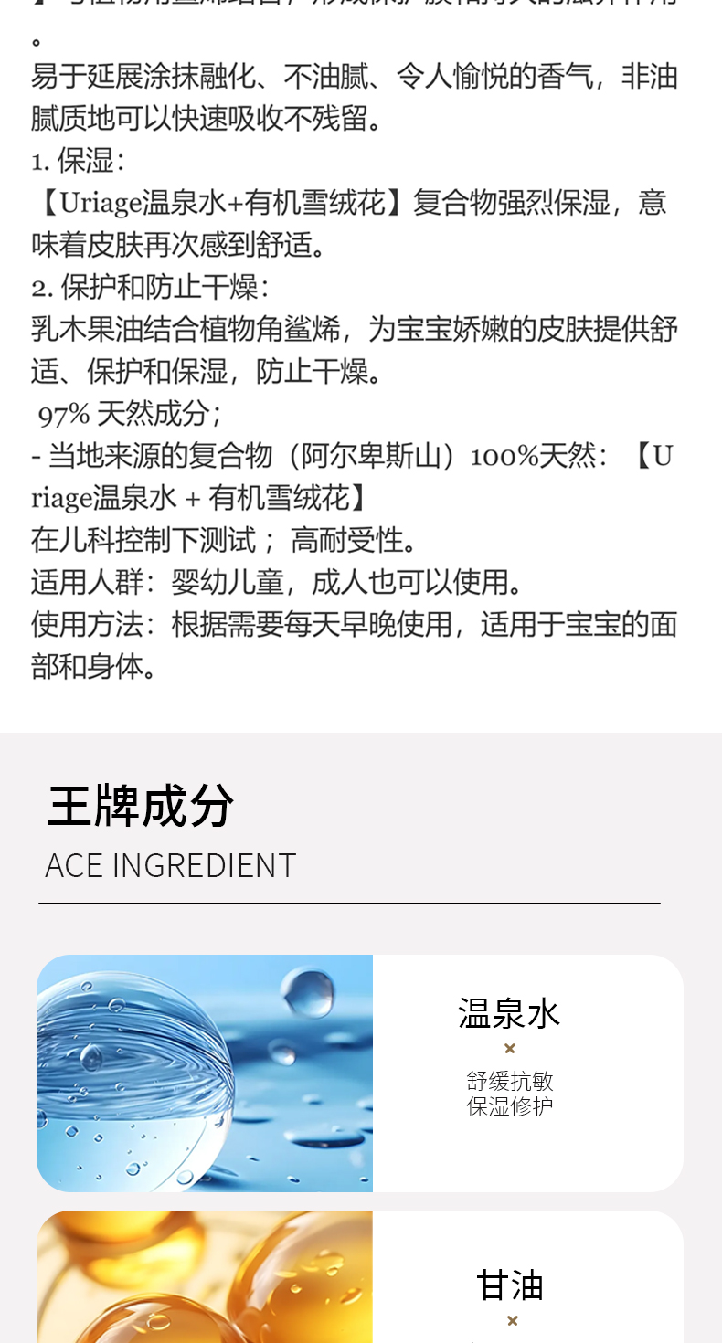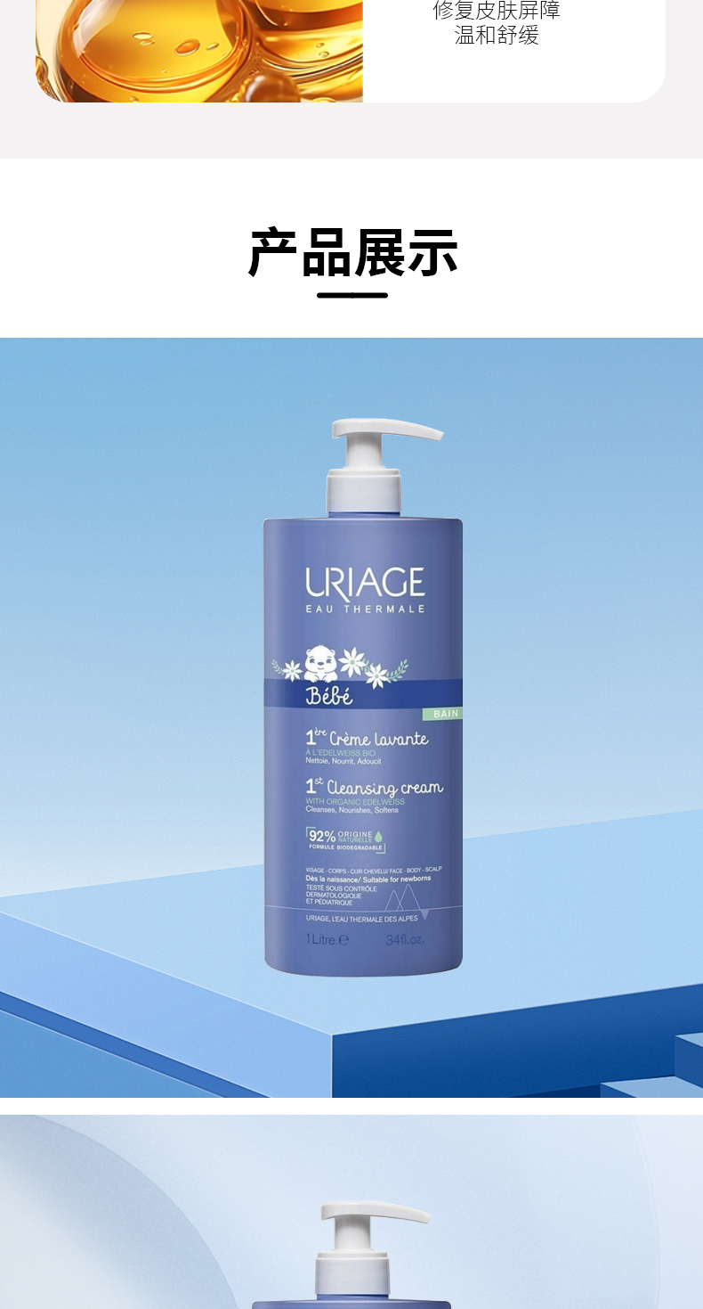 依泉Uriage婴幼儿洁肤霜1L温和清洁水润肌肤洁面霜