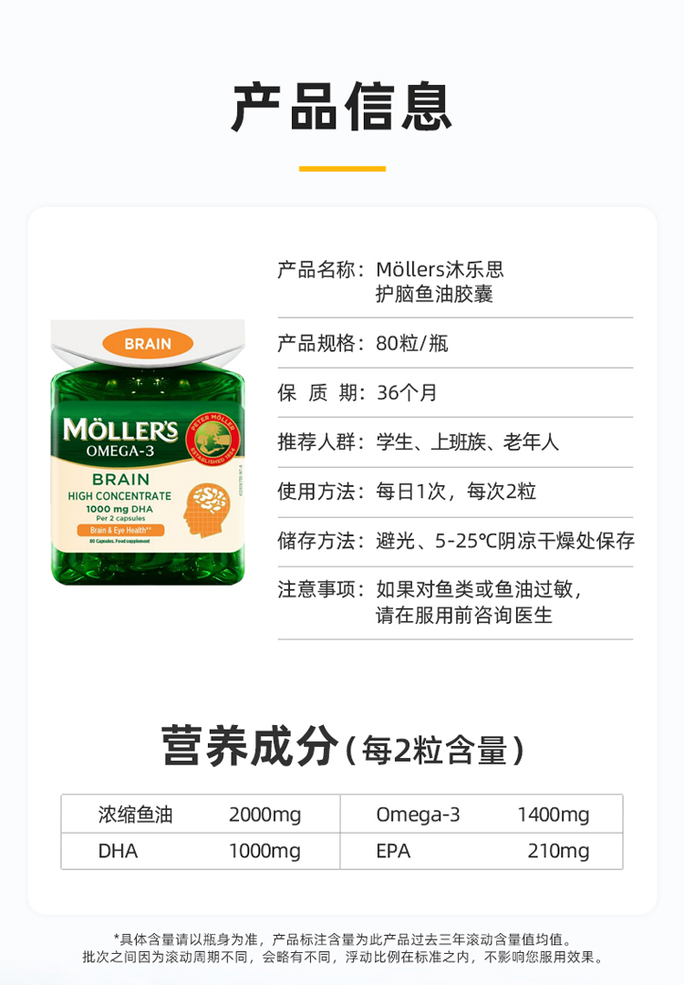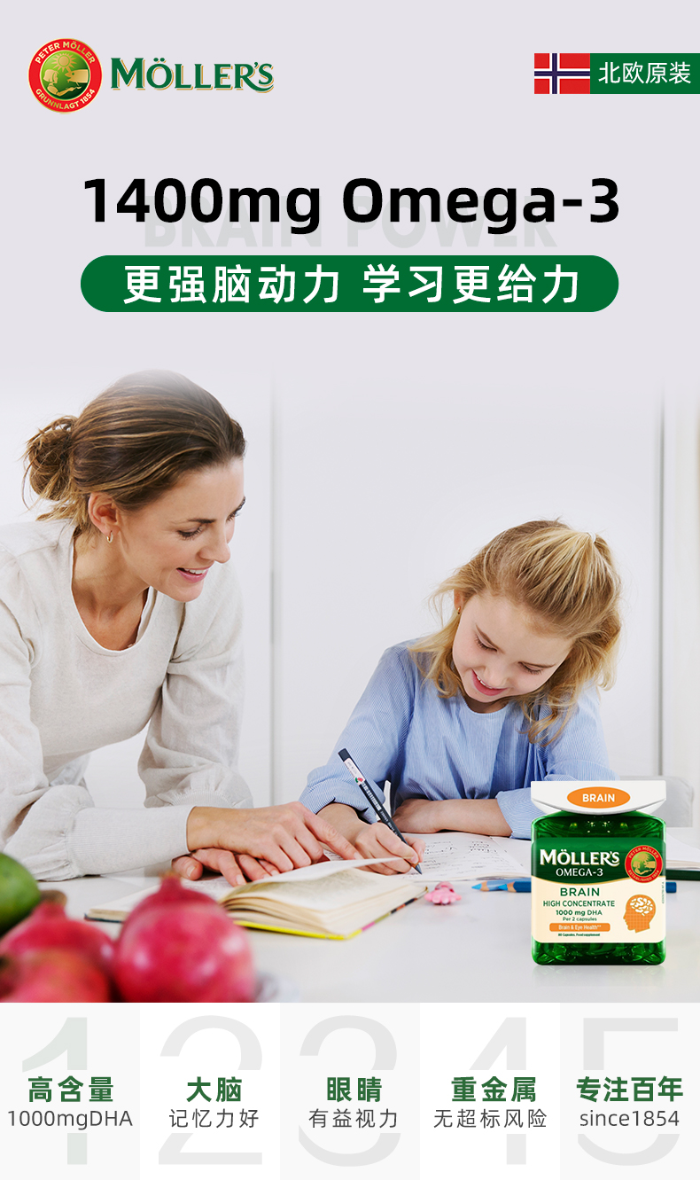 【代发】Mollers沐乐思护脑鱼油胶囊80粒/健脑增强版挪威原装进口