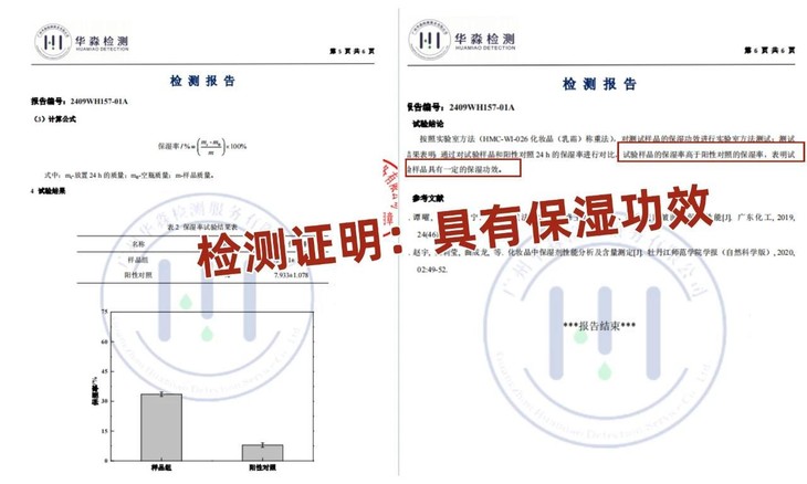保湿功效真的那么牛吗!? 口说无凭,直接甩上检测报告: