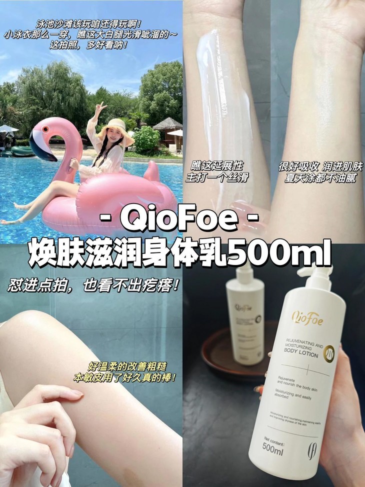 我们在网上前前后后筛选了无数款身体乳 还特意购买了30多款回来测试、测评、看效果。 发现只有这款【QioFoe焕肤滋润身体乳】 做到符合我们的需求: ✔️清爽不黏腻 ✔️补水高保湿 ✔️焕亮原肌肤 ✔️减少鸡皮
