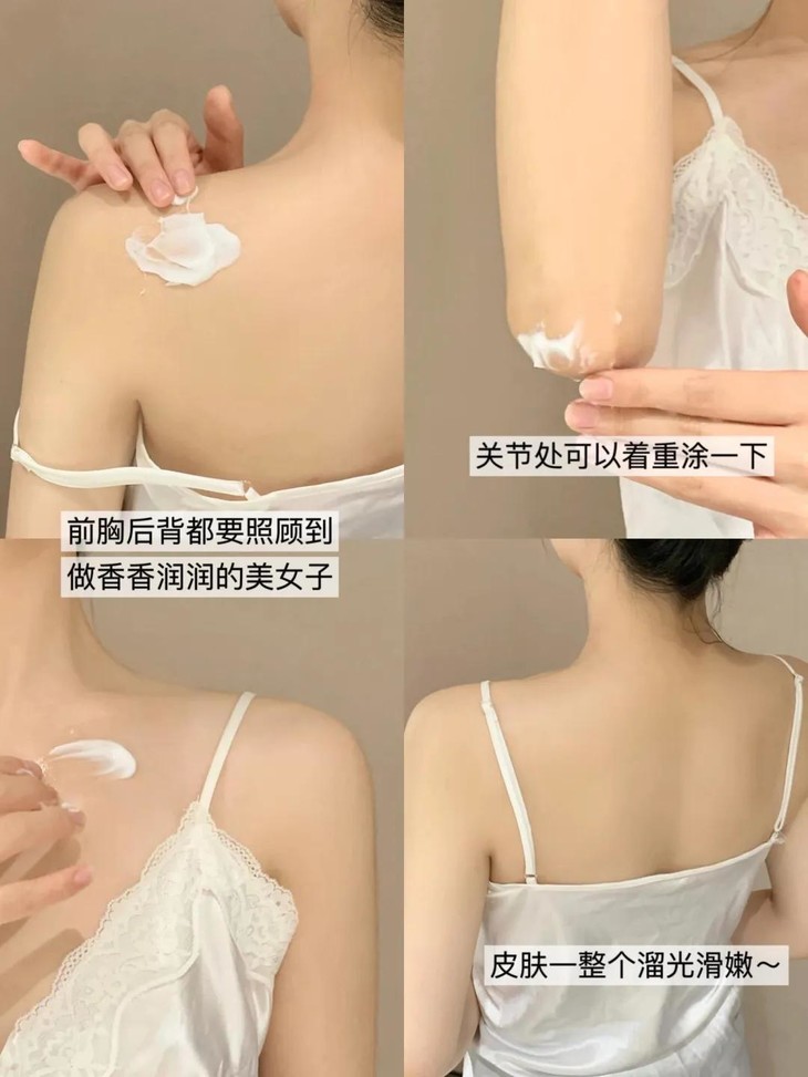 如果你和我一样 ✅皮肤干燥鸡皮 ✅手肘膝盖暗沉 ✅脸和脖子两个明显色差 这瓶身体乳真的可以闭眼入 一瓶=手霜+身体乳+颈霜!