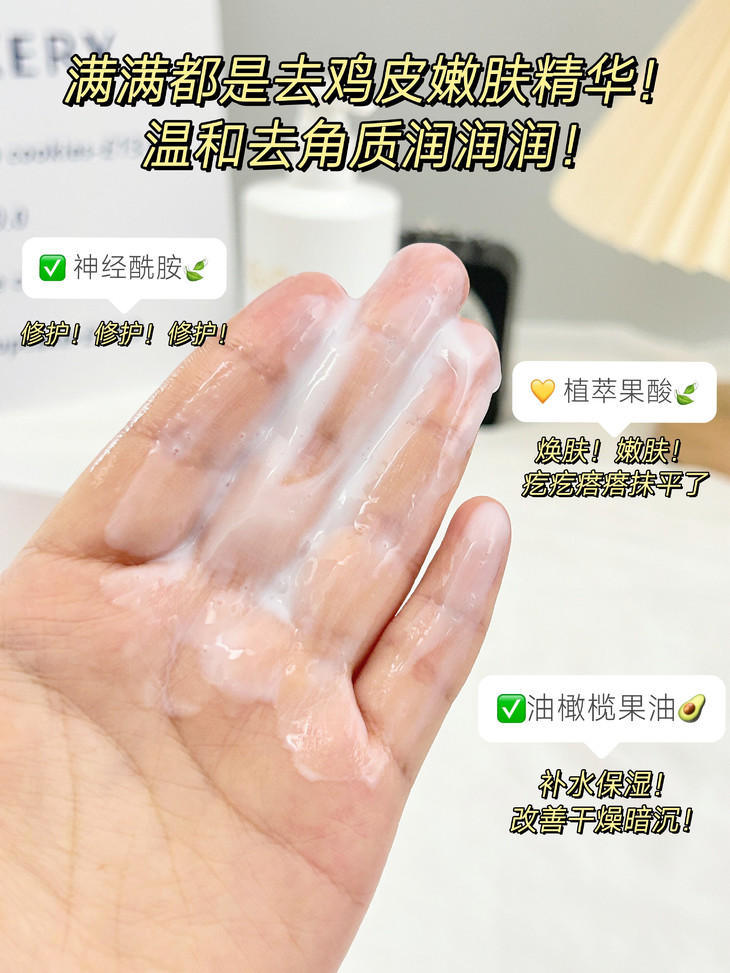 让你每个月都能看到皮肤焕新的变化 做到滋润修护疏通毛孔堵塞,还能促进细胞更新 改善粗糙鸡皮、后背痘痘印痕、手肘关节粗糙等皮肤问题。