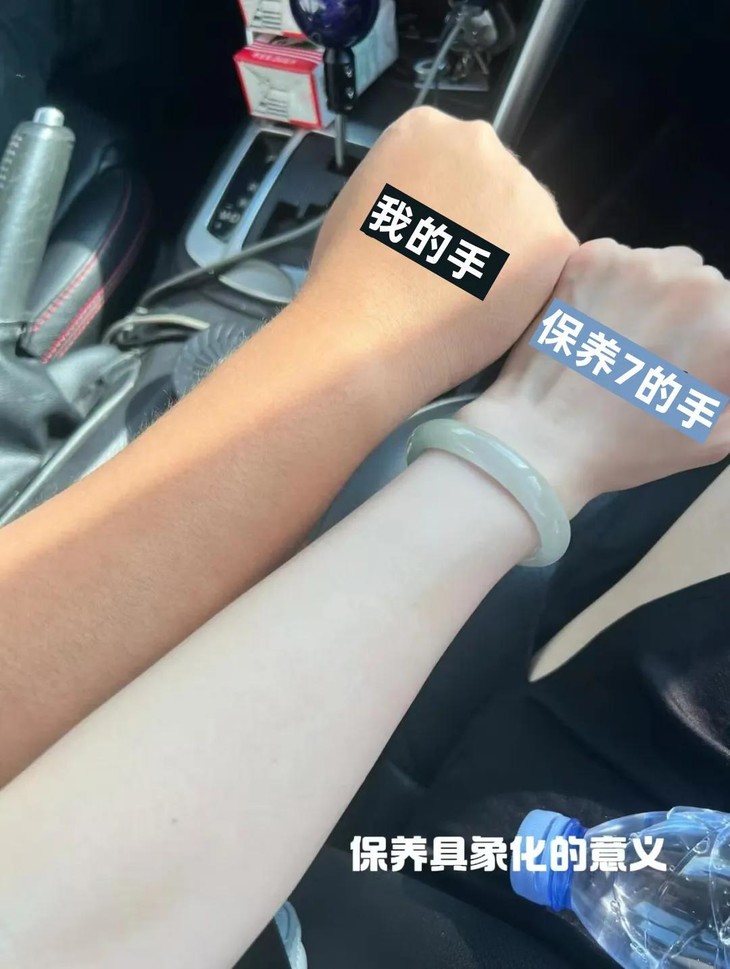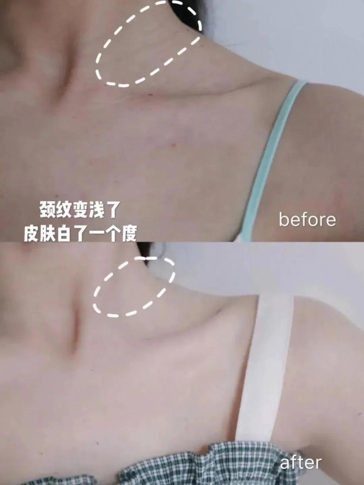 而且跟大家说,刚开始入手 我是冲着给皮肤补水去的 没想到歪打正着,还养出了一身冷白皮。 用下来,原本暗黄的肌肤匀亮了不少。