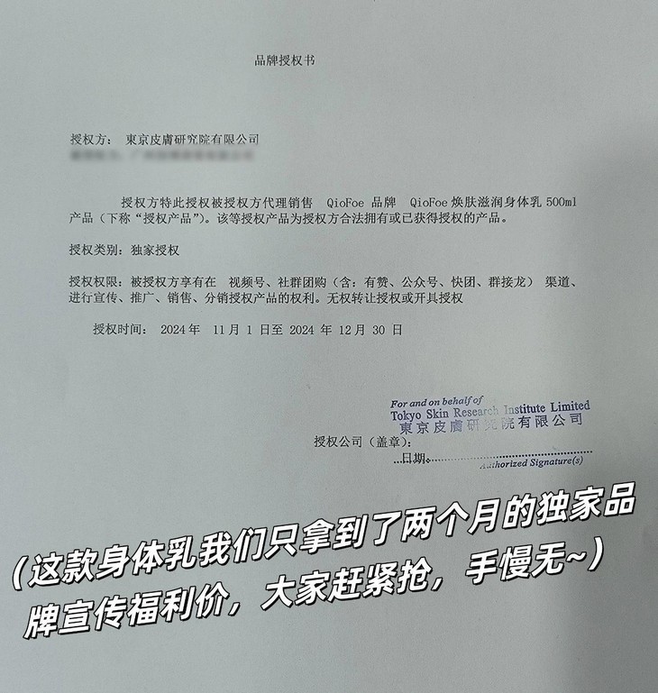 来自英国高端品牌的身体乳,国外原装进口。 可不是我们瞎编,更不是什么假牌子 QioFoe独家授权书奉上。