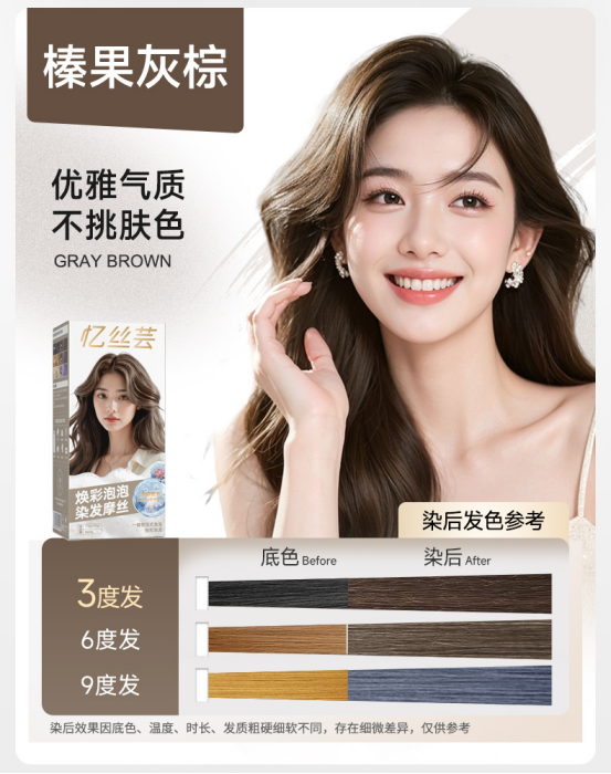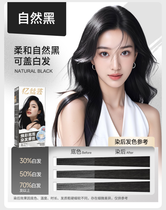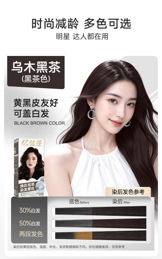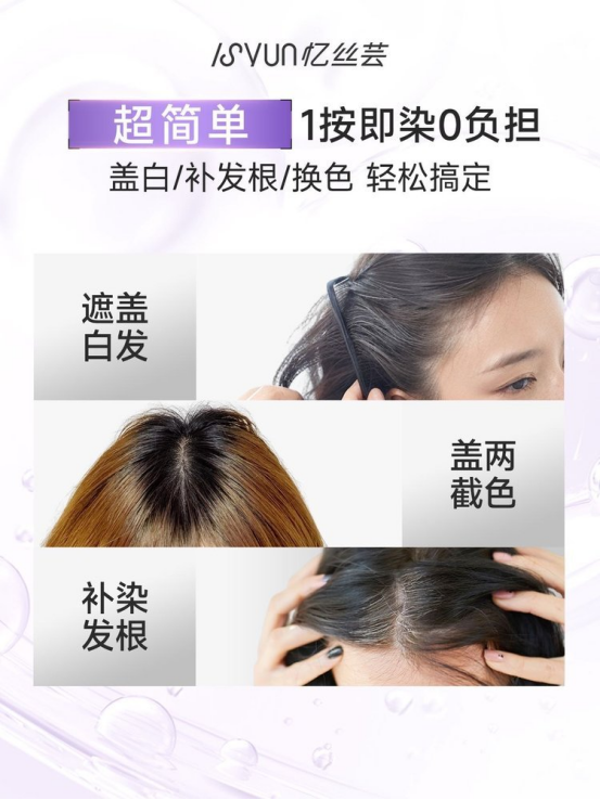 🔸一按即染!老人在家也能染、不用跑理发店,在家就能随时换发色! 白发逆袭神器❗️尤其是长辈注重养生, 去理发店药水味道刺鼻 味重➕价格贵直接劝退 普通染发膏味道也刺鼻、担心对头皮有伤害! 用了忆丝芸一按染才知道什么事妈系染发天花板
