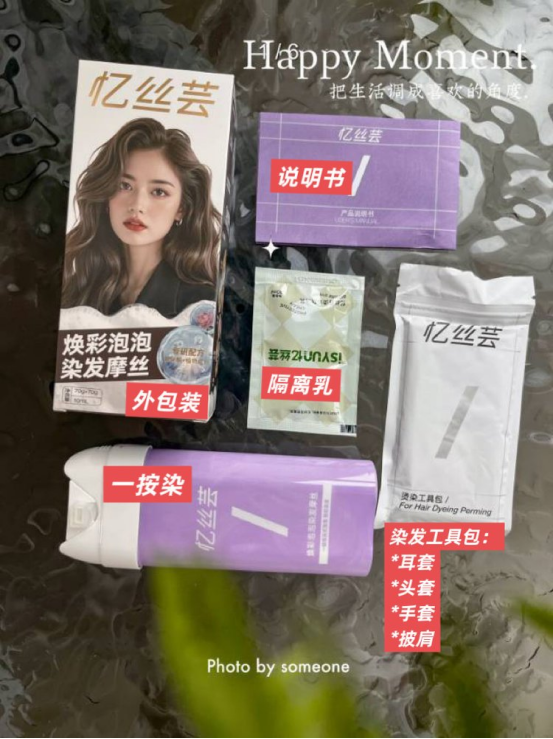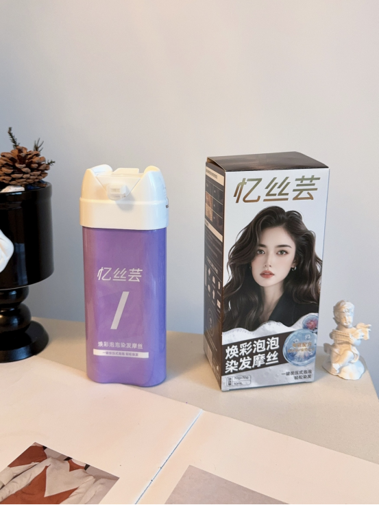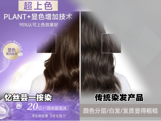 居家美发 严格品控! 一键按压式泡泡,轻松染发 顺滑不毛躁,染发像洗头一样简单 ▶️华熙生物玻尿酸➕9大植萃 ▶️专利配方,温和舒缓抗过敏 ▶️使用简单快捷、一按即染 换色、补色、盖白发一盒多用轻松搞定~