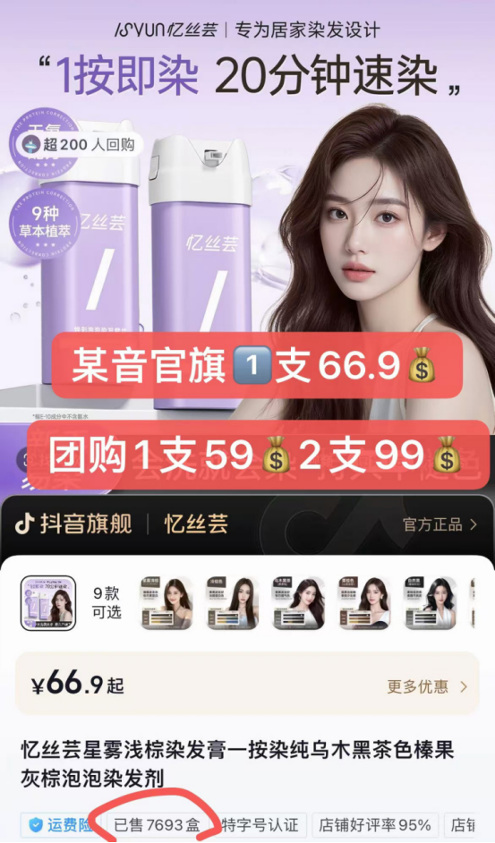 某音官旗一支66.9💰 热卖7600+ 我们开团1支59💰,两支99💰 不要太划算!!