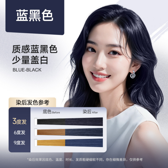 【蓝黑色】 超有心机的蓝黑色,室内看着就是普通黑发, 太阳底下突然泛出高级蓝调 就像夜空中的黑曜石,暗处低调, 光下却闪烁着神秘的星河蓝光