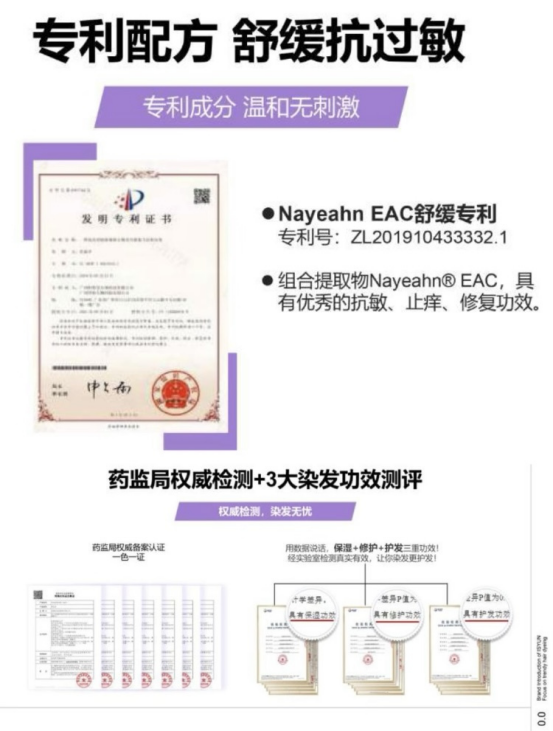 🔸2项染发专利,舒缓抗过敏 专利配方 双项权威认证|舒缓头皮它是认真的! 🔸12年的美发沉淀,只为染发更温和 不想染后头发变枯草的宝子一定要试试 它会带给你意想不到的惊喜,重新定义染发健康