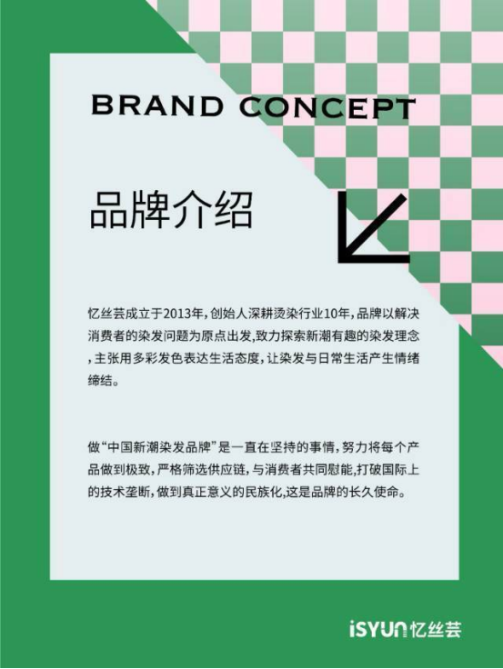 【ISYUN忆丝芸】 ●成立于2013年,创始人深耕烫染行业10年 品牌以解决消费者的染发问题为原点出发 致力探索新潮有趣的染发理念 ● 做“中国新潮染发品牌”是一直在坚持的事情 努力将每个产品做到极致,严格筛选供应链 与消费者共同慰能,打破国际上的技术垄断 做到真正意义上的民族化 这是品牌的长久使命。